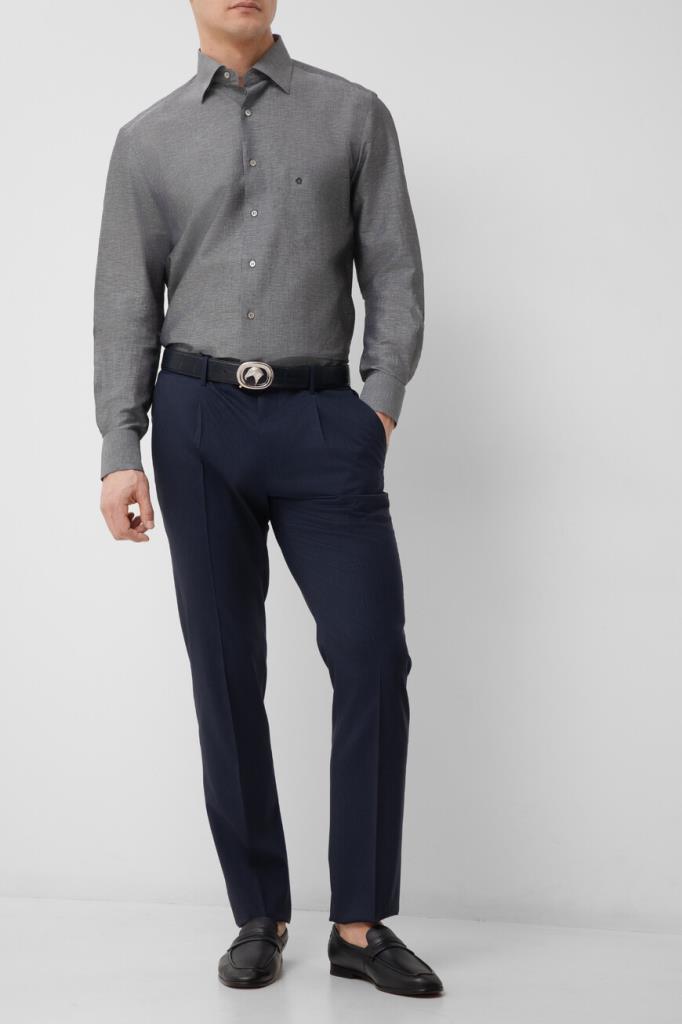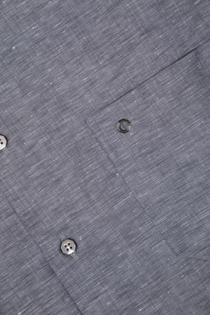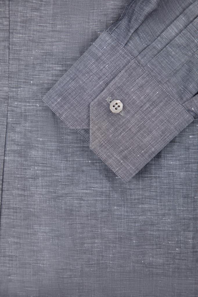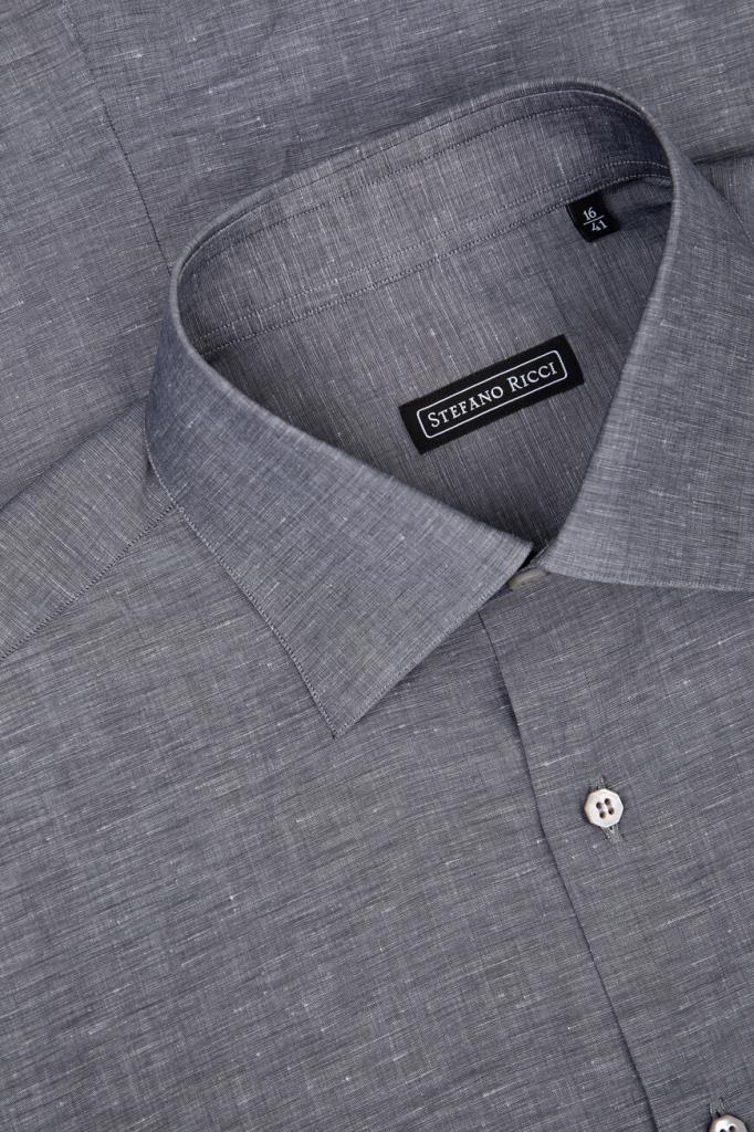 Серая рубашка Stefano Ricci на перламутровых пуговицах. Конструкция изделия прилегающего силуэта, выполненного из мягкого трикотажа на основе хлопка и льна, предполагает наличие длинных рукавов и нагрудного накладного кармана слева. Атрибутом Дома выступает минималистичная знаковая деталь - восьмигранник из металла серебристого оттенка на кармане.