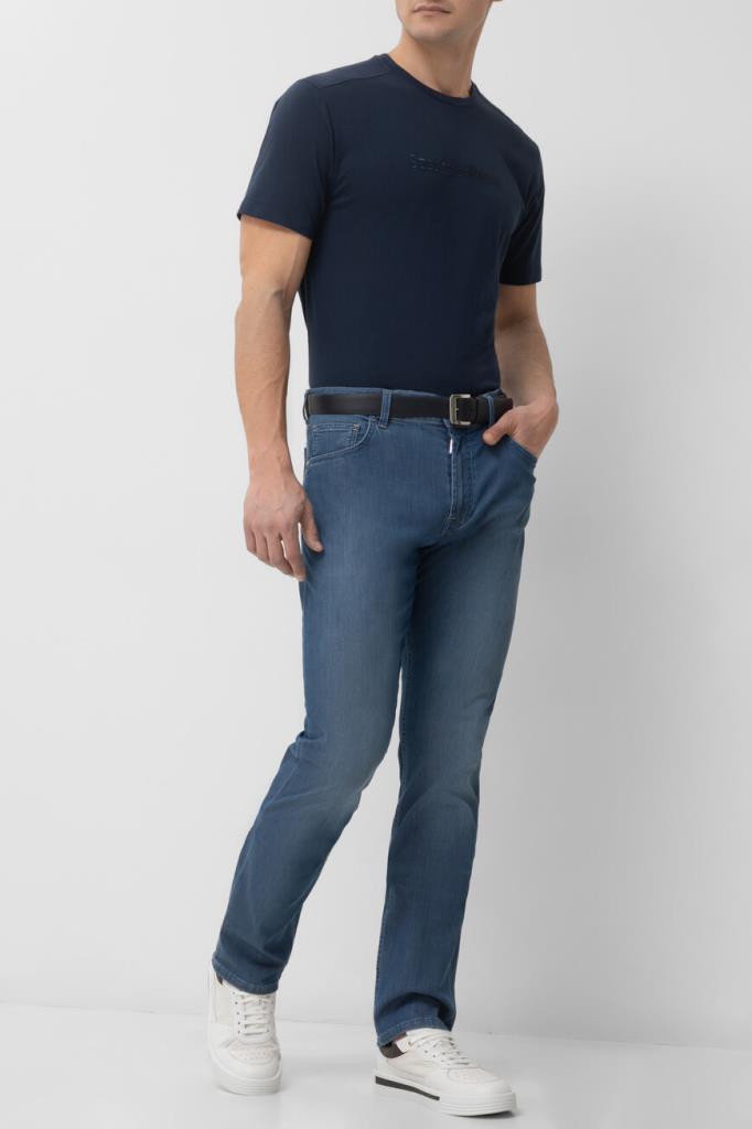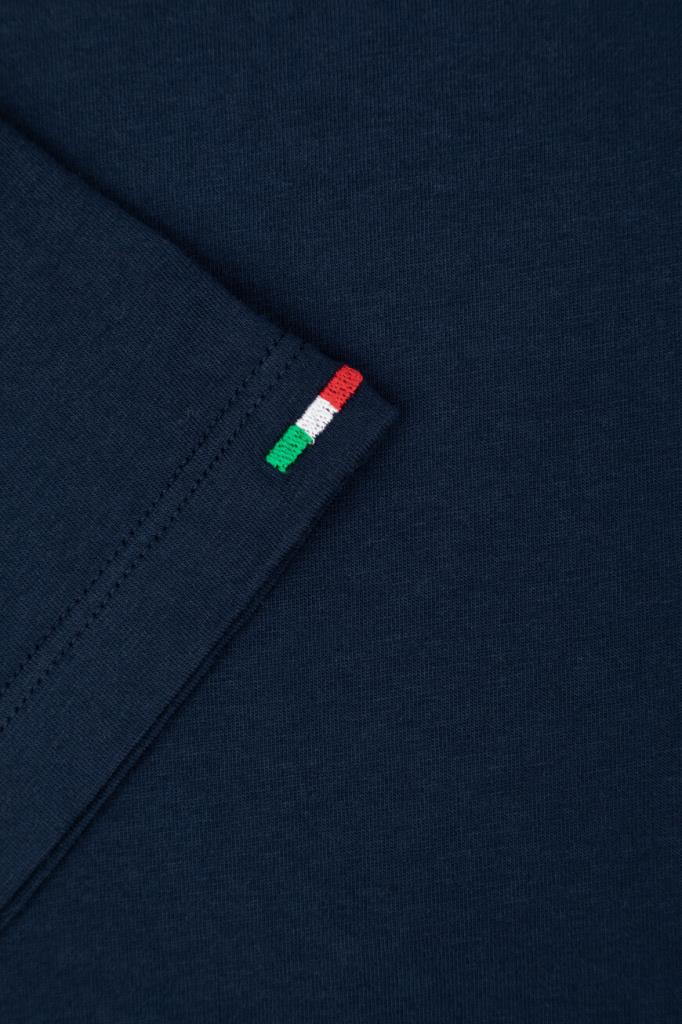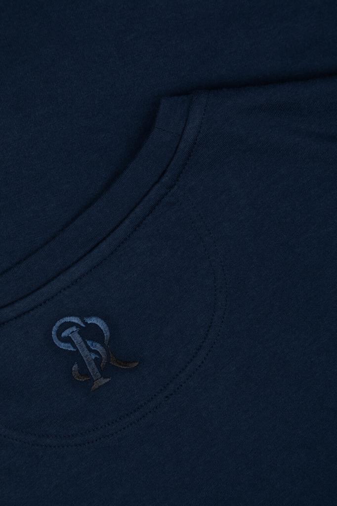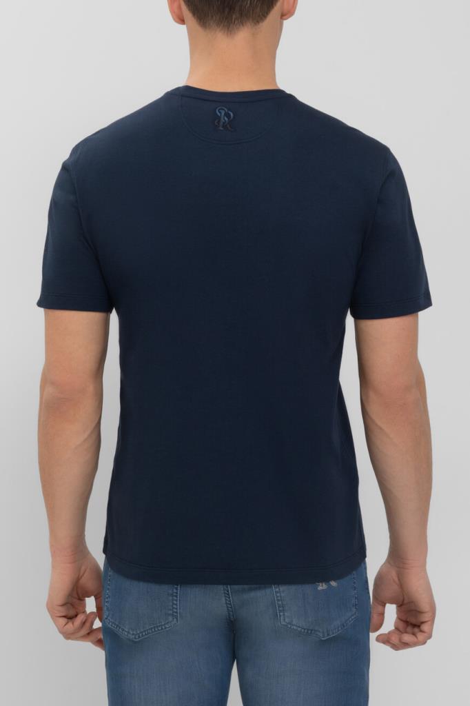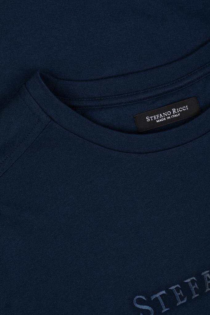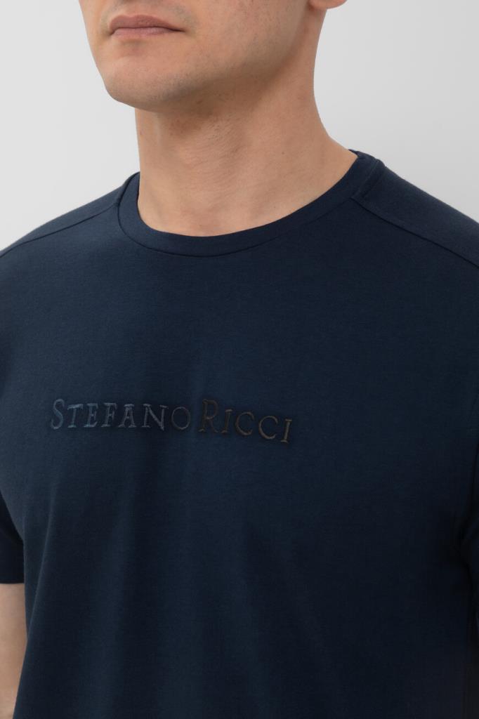 Тёмно-синяя футболка Stefano Ricci с вышитой знаковой символикой Дома. Для пошива модели прямого силуэта выбрано лёгкое хлопковое джерси с добавлением шелковистого модала. В центр внимания изделие выводит крупный градиентный логотип, размещённый спереди. Футболка с круглым вырезом горловины станет основой повседневного образа с джинсами и сникерами.