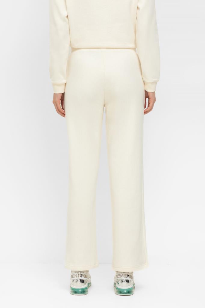 Спортивные брюки-палаццо с прорезными боковыми карманами от PLEIN Sport. Для создания модели кремового оттенка используется мягкий хлопковый флис с добавлением синтетических волокон. О принадлежности изделия Дому деликатно напоминает прорезиненная знаковая символика - повторяющийся логотип и голова тигра в круге. Образ можно завершить парным свитшотом с заниженной линией плечевого шва и рельефными полосами в проймах рукавов из той же коллекции.