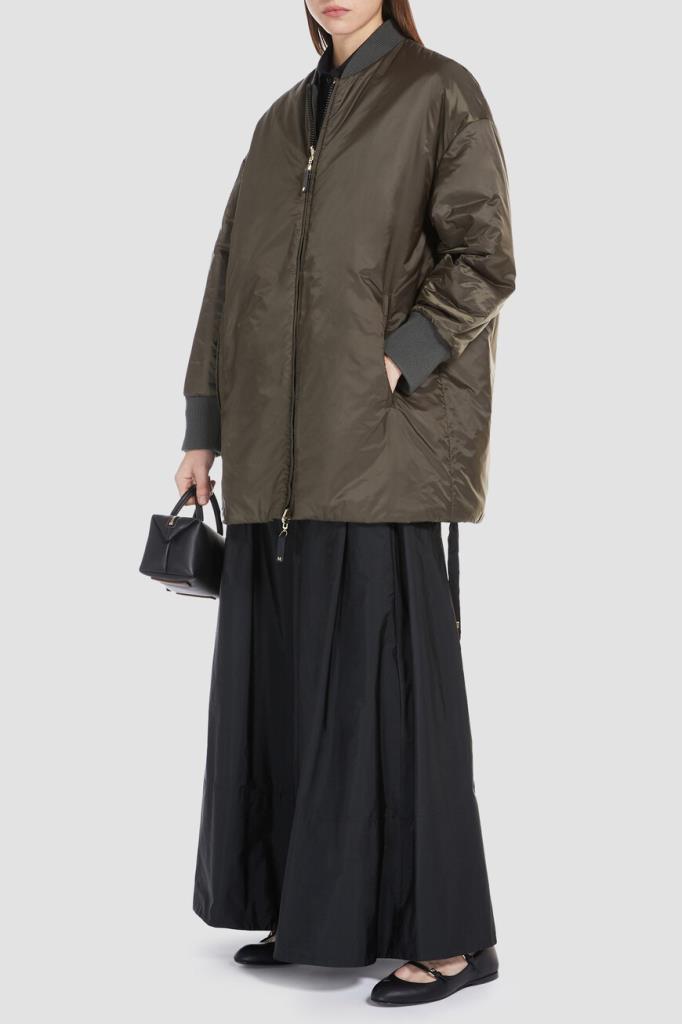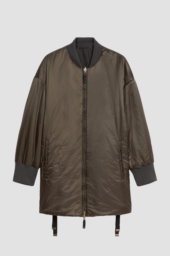 Двусторонний бомбер средней длины от Max Mara. Для изготовления повседневной модели используется прочный водоотталкивающий полиэфир в оттенке хаки. За надёжную защиту от холода и порывов ветра отвечает инновационный утеплитель CameLuxe на основе верблюжьей шерсти, гладкого шёлка и полиэстера. Это новый рубеж для процессов переработки, который включает в себя восстановление остатков чистой верблюжьей шерсти от производства легендарных пальто. Волокна повторно используются для создания специального наполнителя, способного сохранять те же теплоизоляционные свойства, что и первичные материалы.