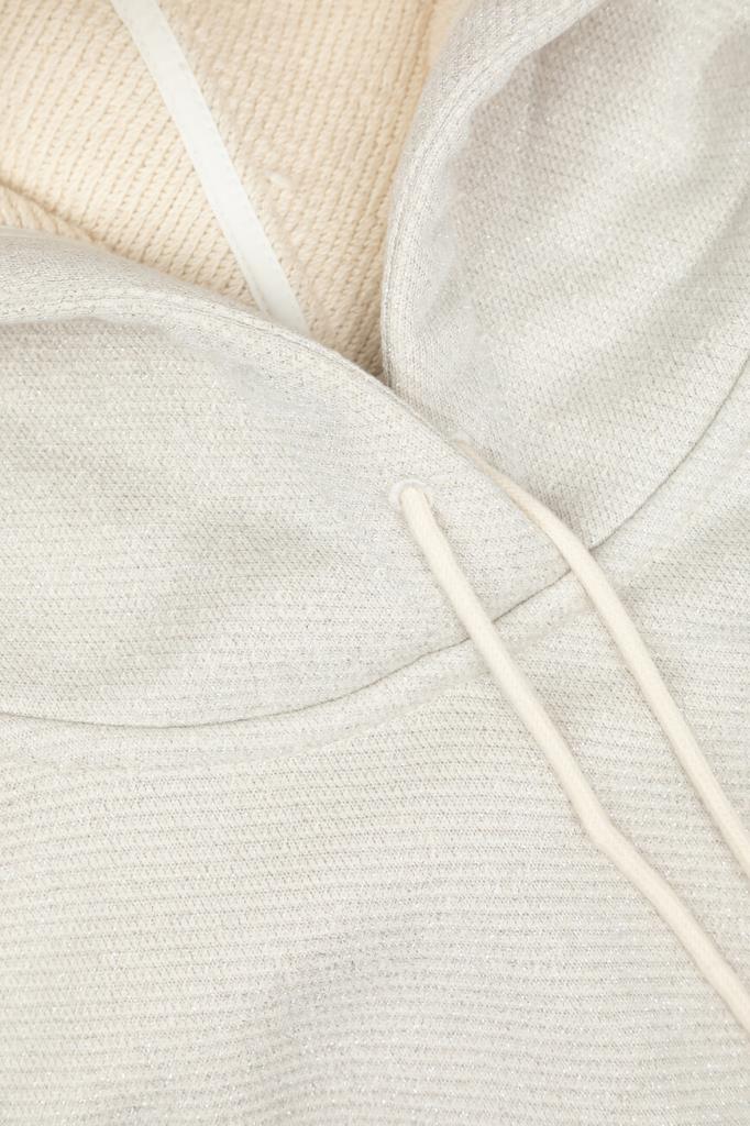 Женское худи Max Mara из смесового хлопка в нежном кремово-бежевом оттенке. Дизайнеры бренда выполнили модель в духе минимализма, чтобы ее можно было легко вписать в базовый гардероб. Изделие имеет капюшон с кулиской и украшено деталями из люрекса. Идеально смотрится в сочетании с брюками из той же коллекции.