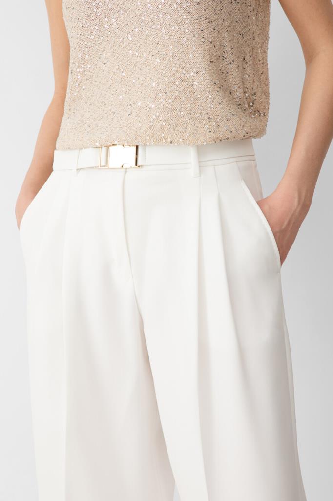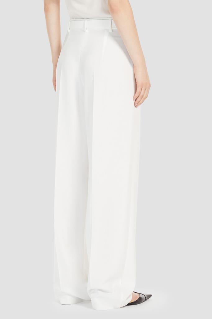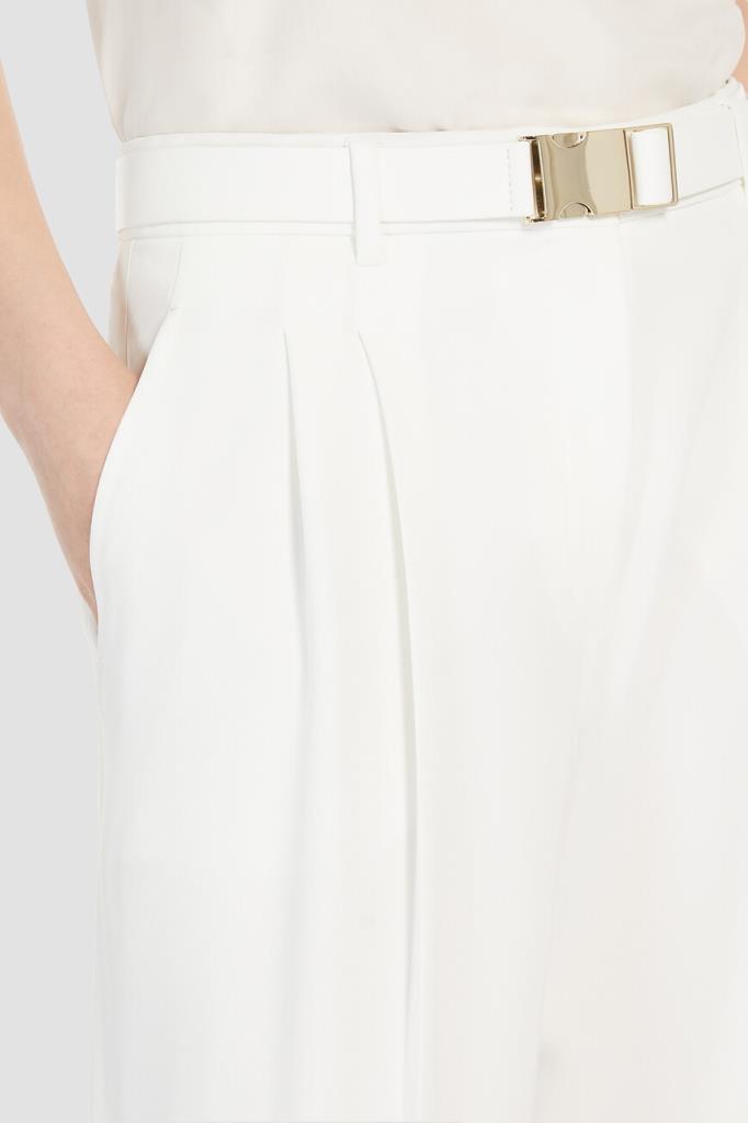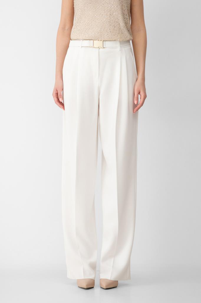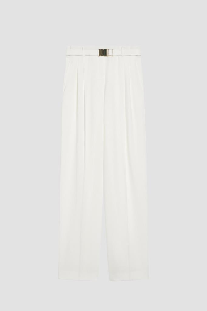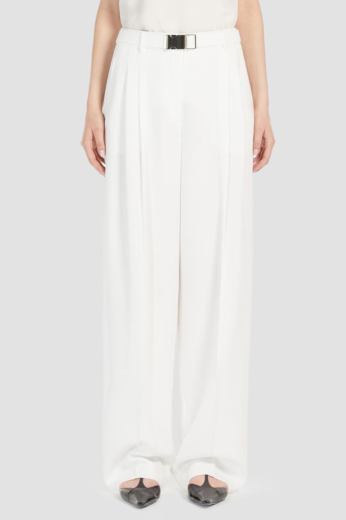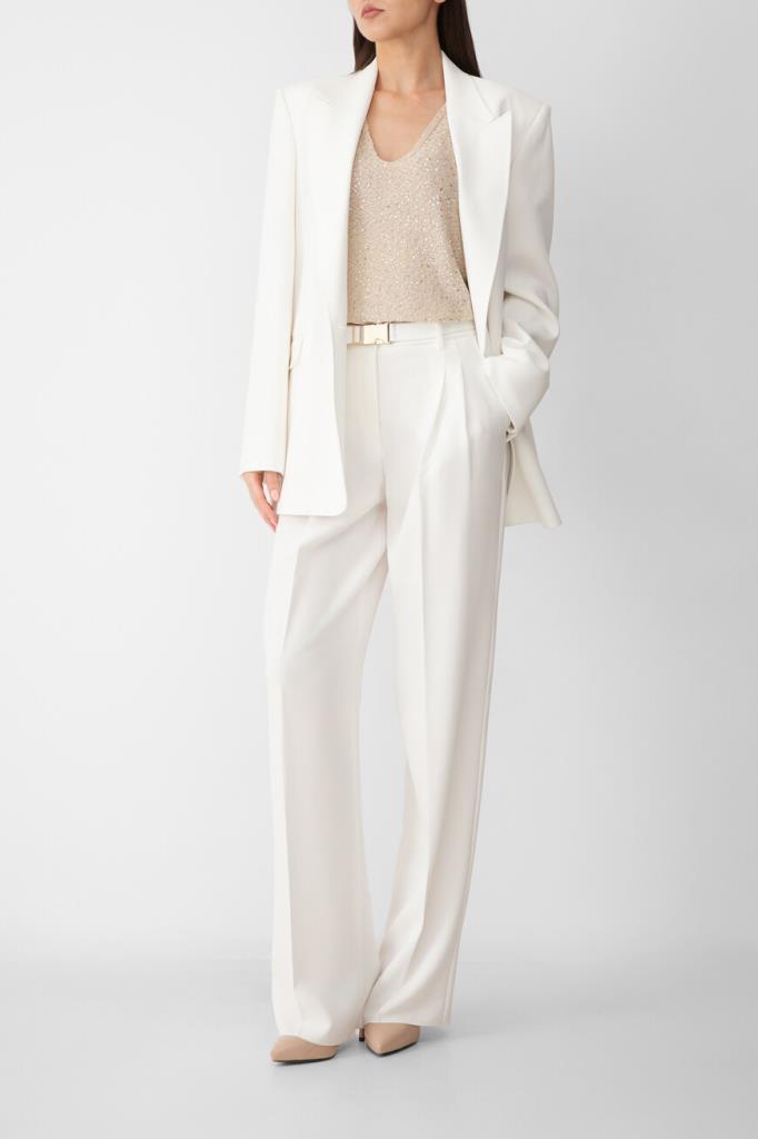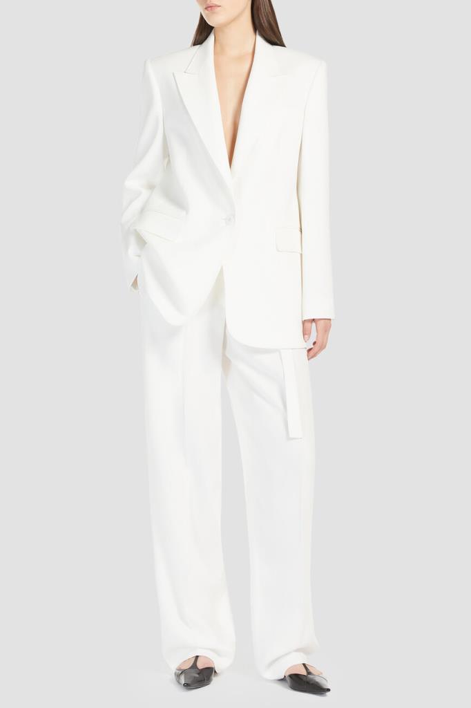 Белоснежные длинные брюки из коллекции Max Mara Studio. Дизайнеры бренда выполнили модель из кади премиум-класса. Ремень в тон с пряжкой-фастексом подчеркивает талию, а высокий пояс обеспечивает комфортную посадку. В качестве идеального дополнения можно обратить внимание на пиджак из той же коллекции Дома.