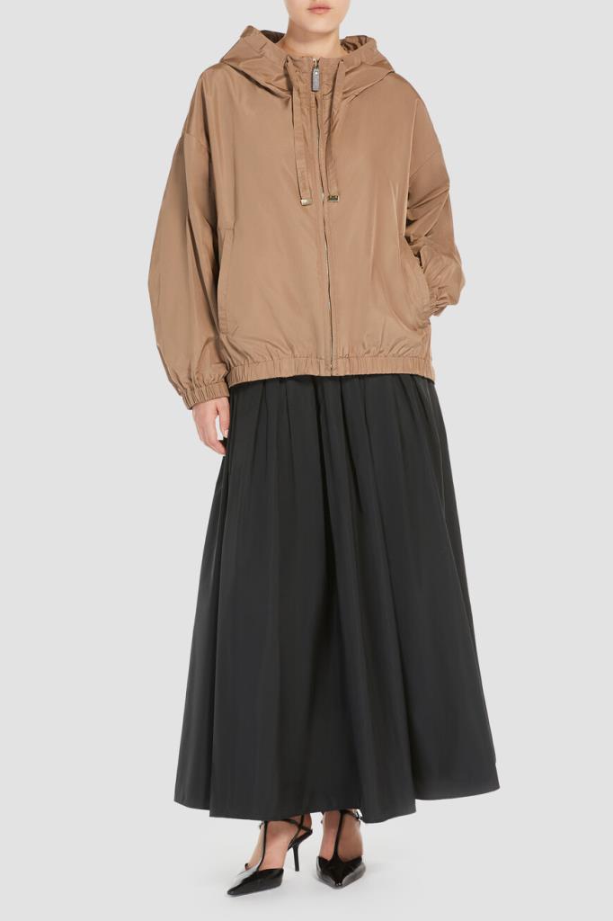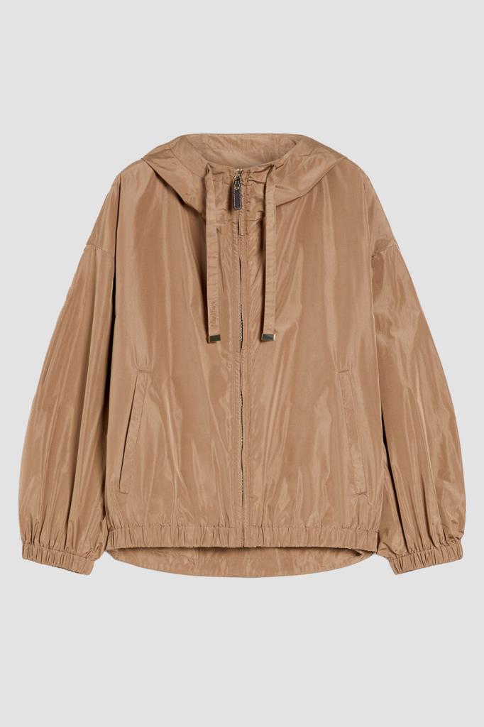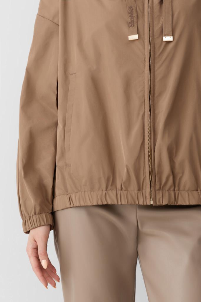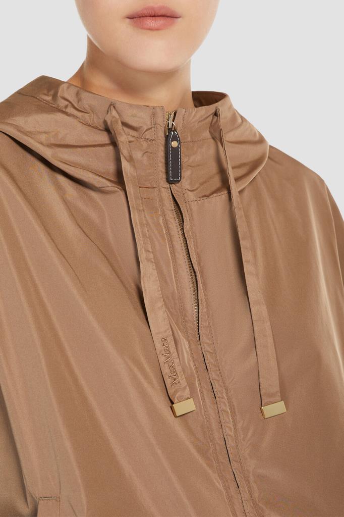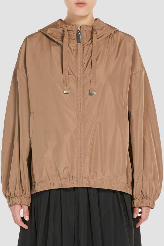 Короткая парка Max Mara в фирменном оттенке кэмел. Водоотталкивающая тафта защитит вас от непогоды, а капюшон на кулиске и ленты с фирменной вышивкой добавят изысканности. Дополнительную защиту от ветра обеспечивают эластичный низ и штормовая планка.