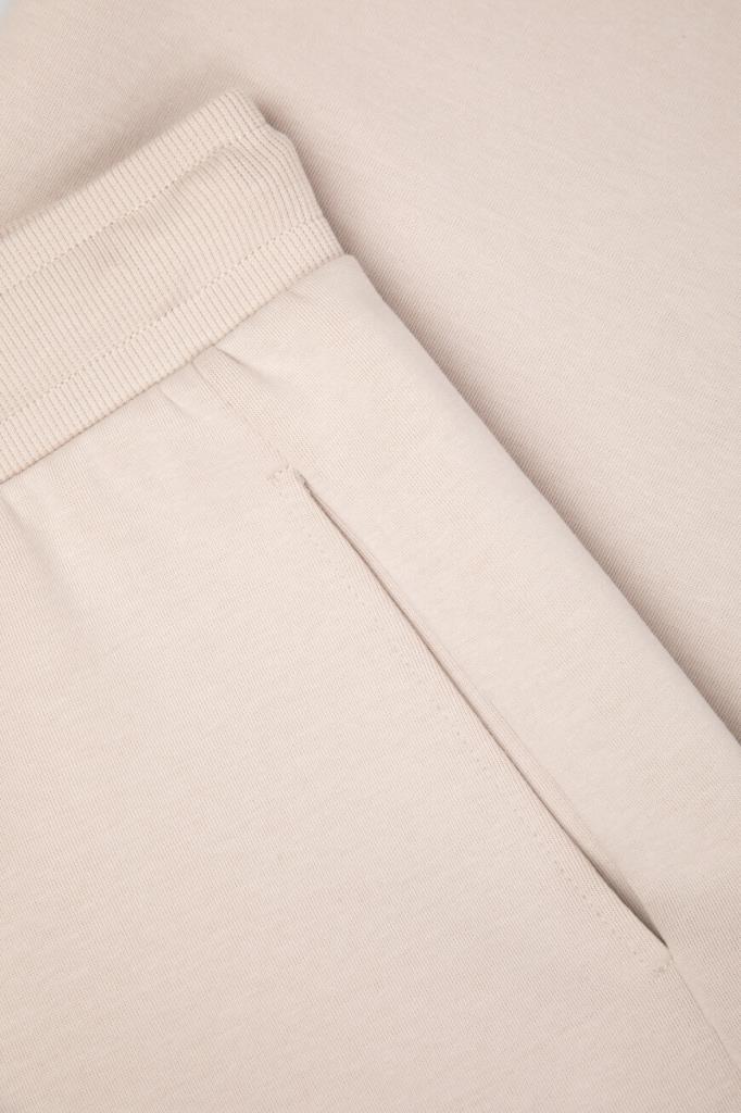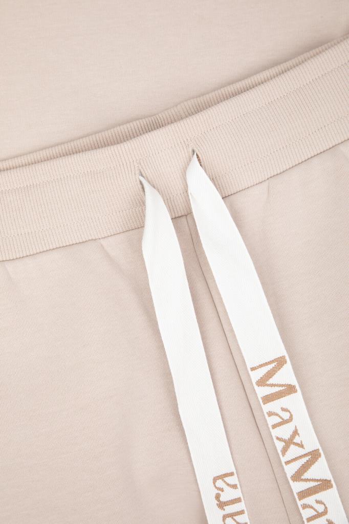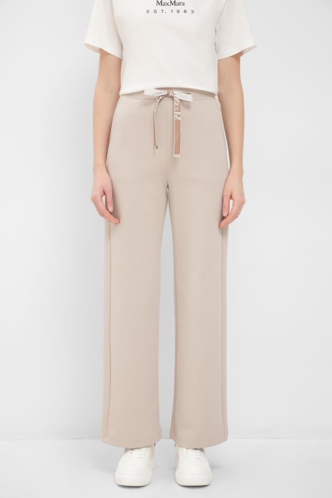 Брюки Max Mara из мягкого и приятного на ощупь трикотажа выполнены в бежевом оттенке. Свободный крой и широкие штанины не сковывают движения, а эластичный пояс с фирменной жаккардовой лентой обеспечивает комфортную посадку. Практичные детали: удобные боковые карманы по швам и задний прорезной карман. Эти брюки станут незаменимой вещью в вашем гардеробе; особенно хорошо они смотрятся с толстовкой из той же коллекции бренда.
