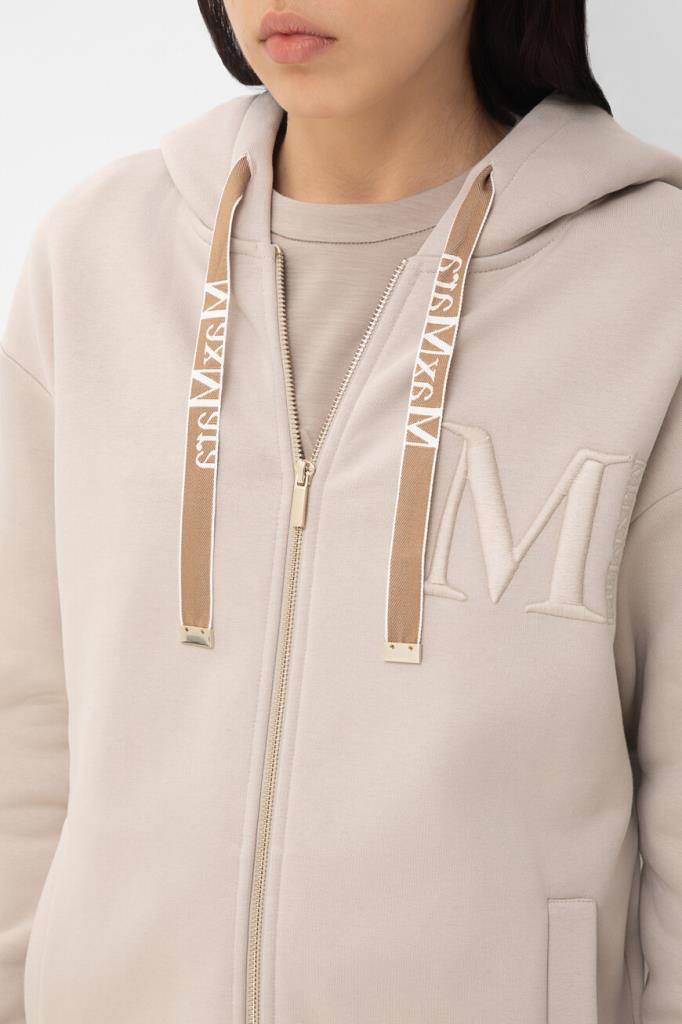 Толстовка Max Mara из мягкого трикотажа выполнена в приятном бежевом оттенке. Капюшон дополнен брендированной лентой, которая придает образу стильный акцент и напоминает о принадлежности к Дому. В роли декора также – вышитая литера “M” слева на груди. Для создания гармоничного образа дополните толстовку брюками из той же коллекции Max Mara.