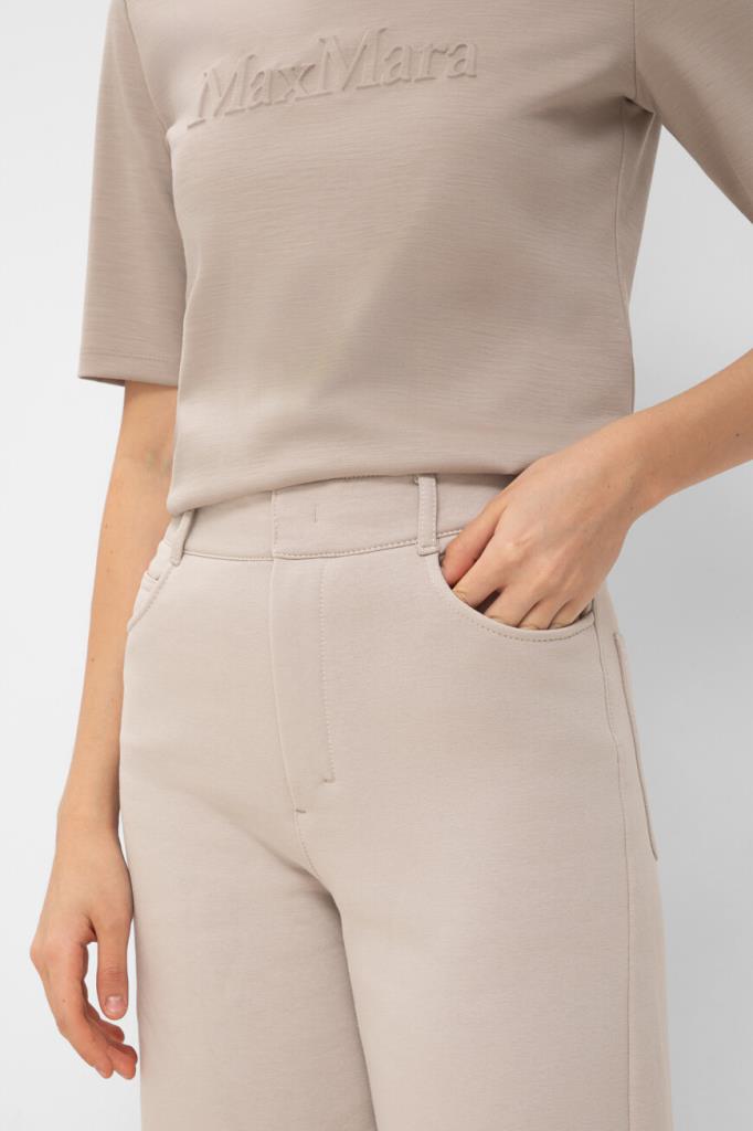 Брюки Max Mara с пятью карманами выполнены из мягкого флиса с начесом, что гарантирует в любой ситуации комфорт и тепло. Объемный крой и накладные карманы сзади придают модели современный вид, а широкая планка на поясе обеспечивает идеальную посадку. Для создания полного образа рекомендуем сочетать брюки с худи из той же коллекции бренда.