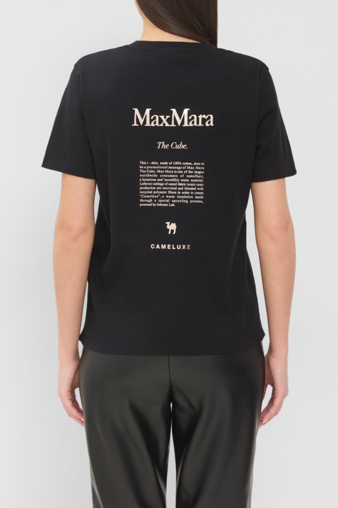 Пополните свой гардероб черной футболкой Max Mara, которая сочетает в себе комфорт и стиль. Мягкий хлопковый трикотаж делает ее идеальным выбором для повседневных выходов, а фирменные принты коллекции добавляют «изюминку» базовому силуэту.