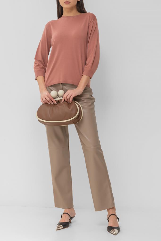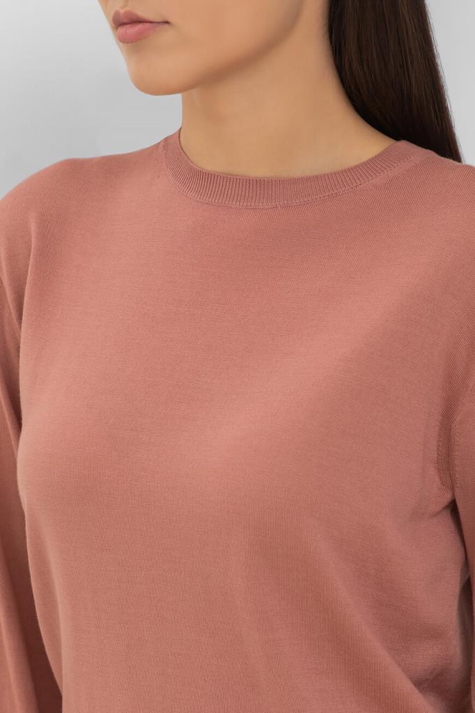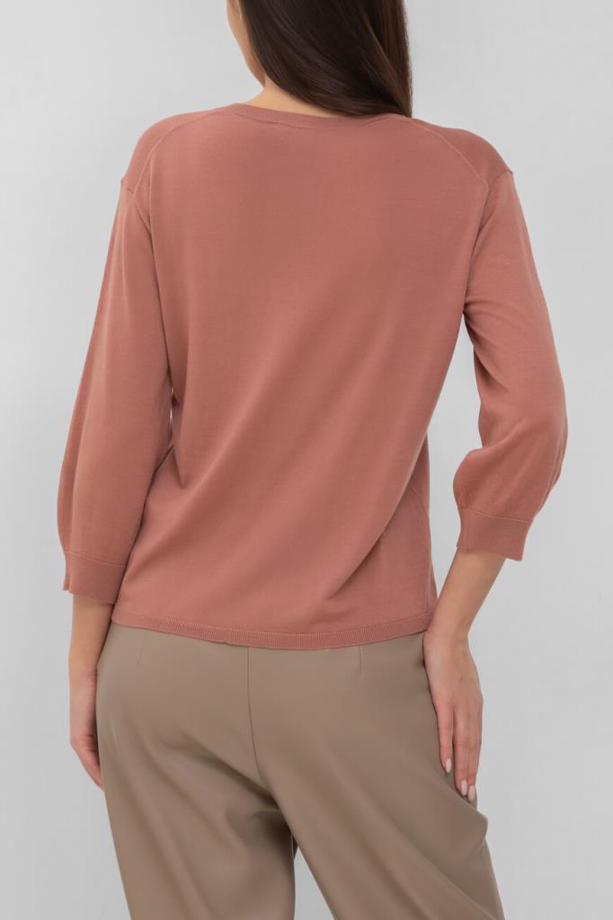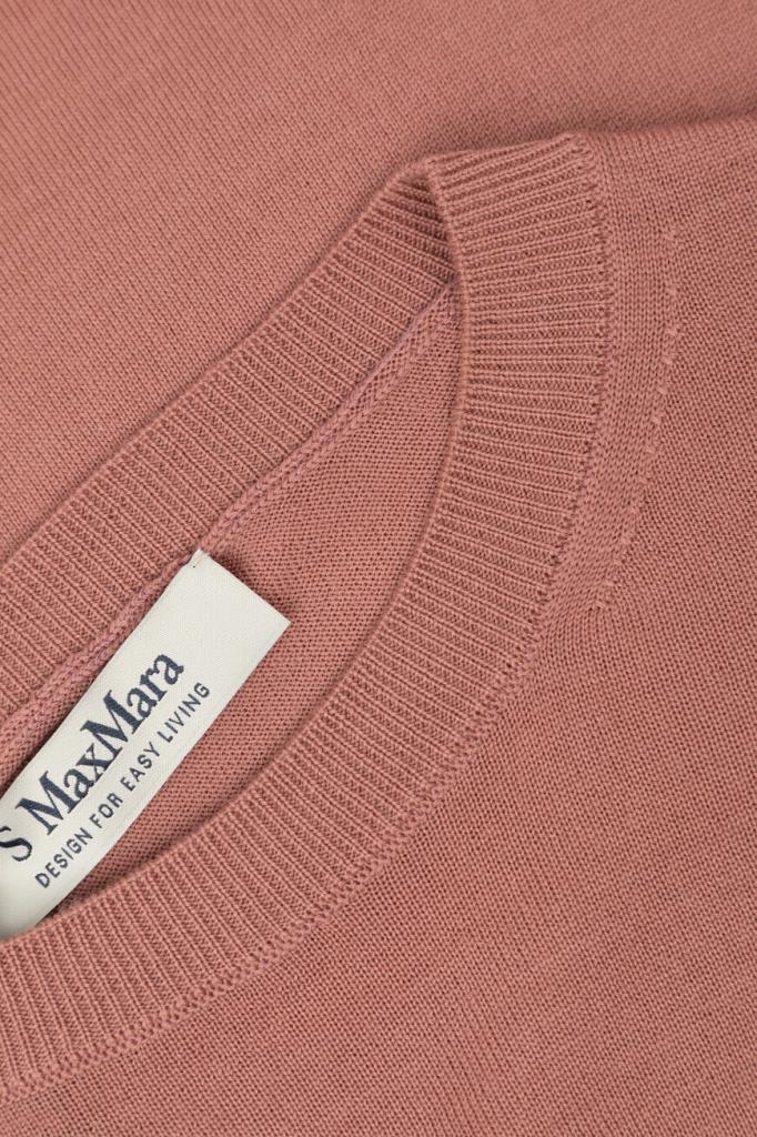 Нежный розовый джемпер Max Mara – воплощение утонченности и женственности. Изготовленный из тончайшей шерстяной пряжи, он дарит ощущение легкости и комфорта. Свободный силуэт с рукавами три четверти подчеркивает изящество, а отделка в рубчик добавляет нотку классической элегантности.