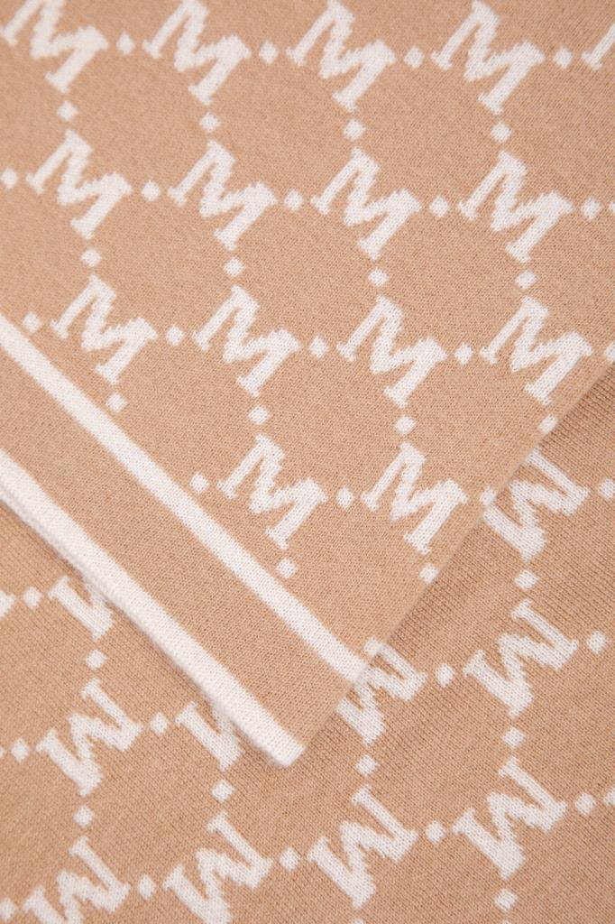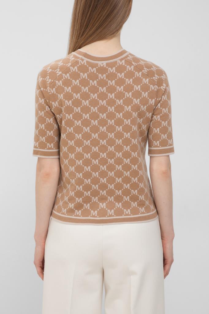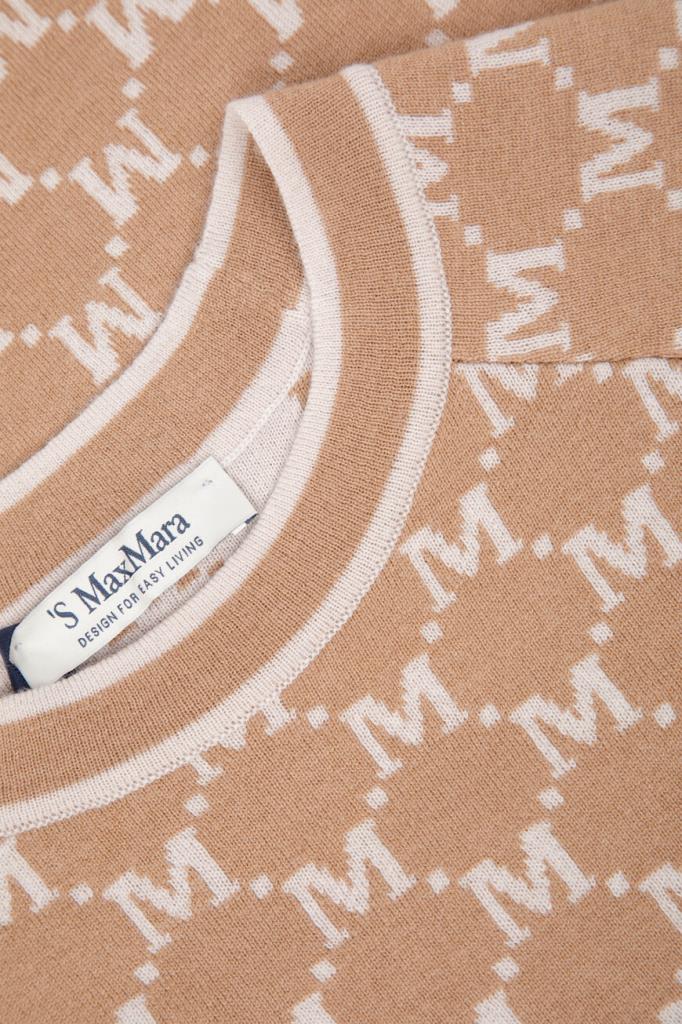 Джемпер Max Mara с круглым вырезом горловины в светло-коричневом цвете. Дизайнеры бренда выполнили модель из тонкой пряжи из шерсти и кашемира, которая обеспечивает непревзойденный комфорт и мягкость. Жаккардовый узор с фирменной литерой "M" по всей поверхности делает этот джемпер особенным, а прямой крой и короткие рукава реглан создают современный силуэт.