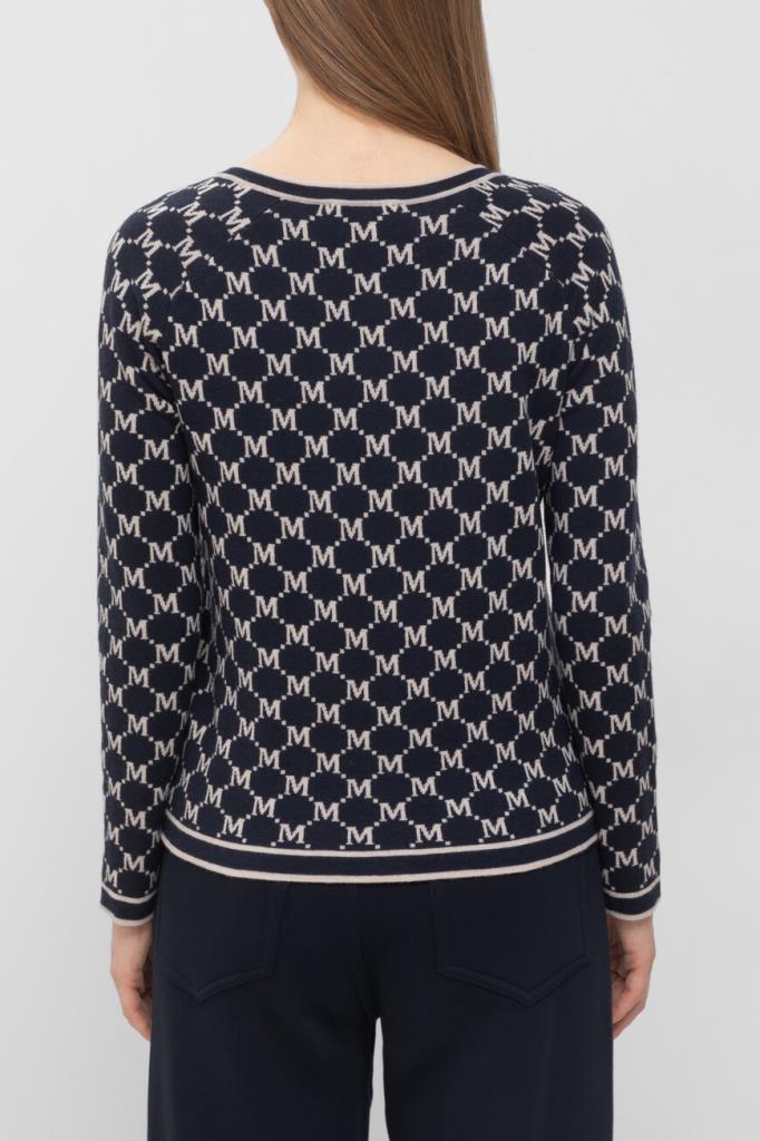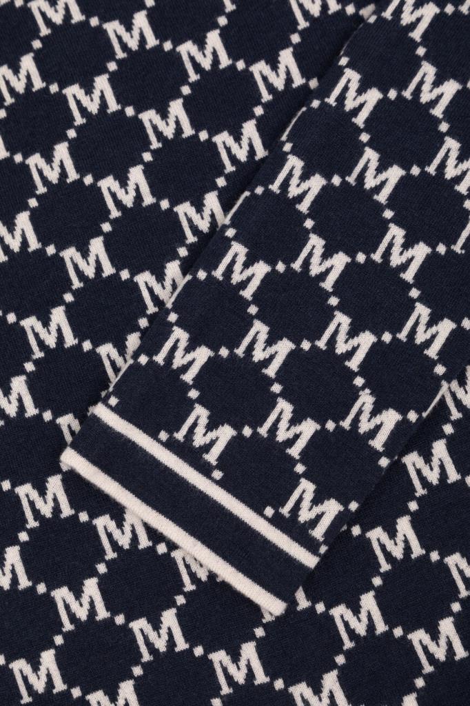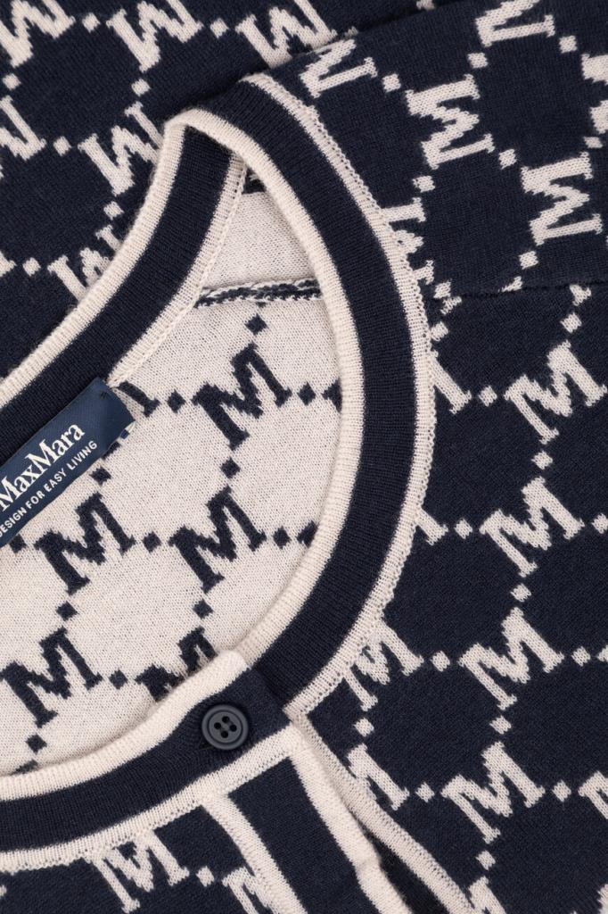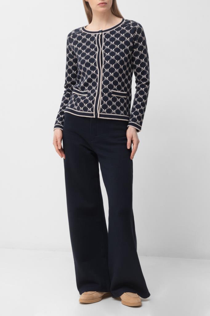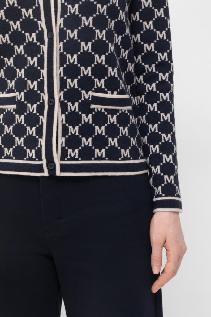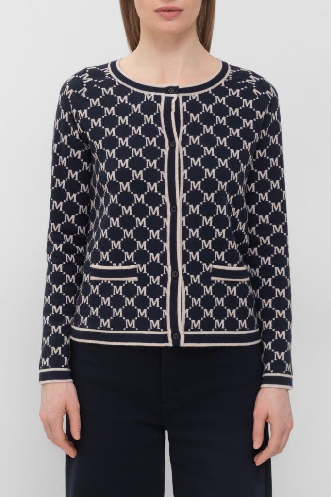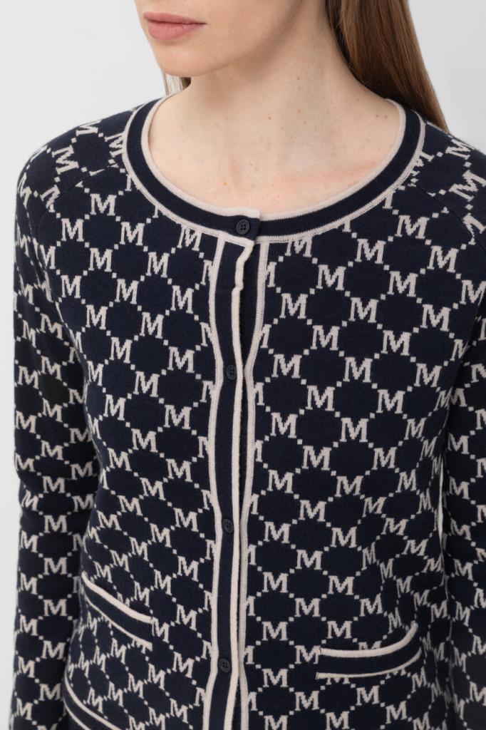 Кардиган Max Mara в темно-синем оттенке – воплощение роскоши и элегантности. Он сшит из мягкой и теплой смеси шерсти и кашемира, имеет жаккардовый узор с фирменной литерой "M" по всей поверхности, который подчеркивает безупречный вкус владельца. Круглый вырез горловины, длинные рукава и застежка на пуговицы спереди делают эту модель универсальной и практичной.
