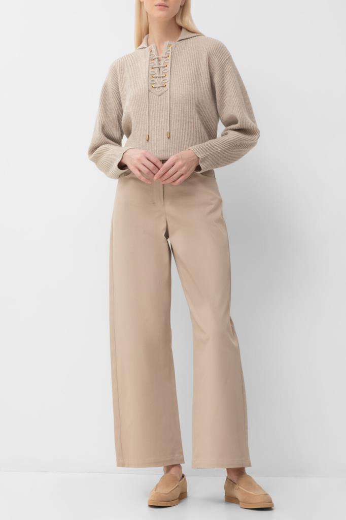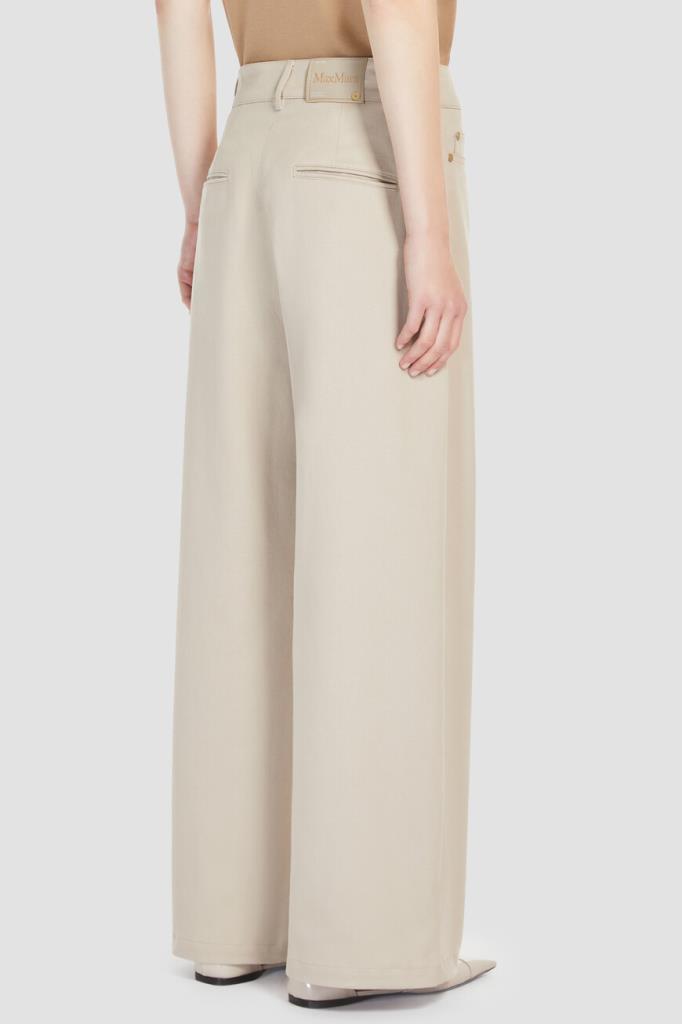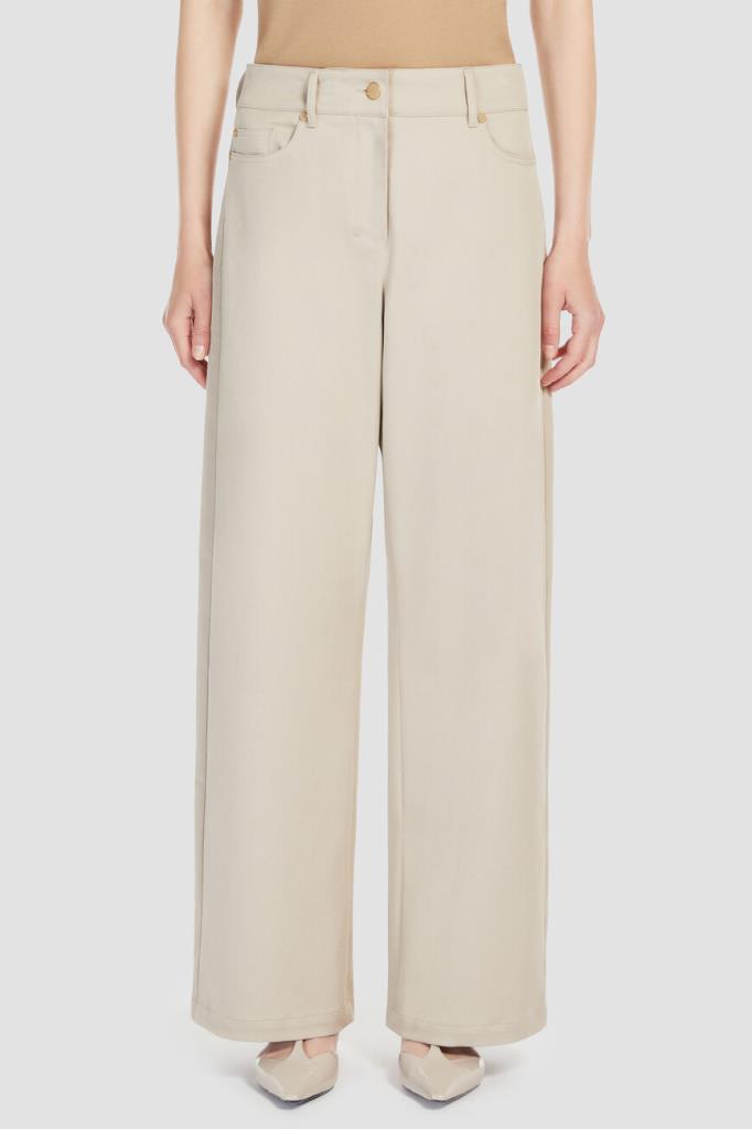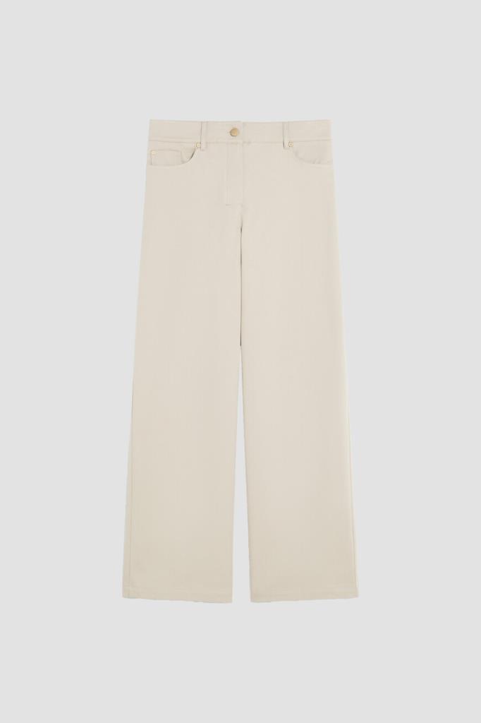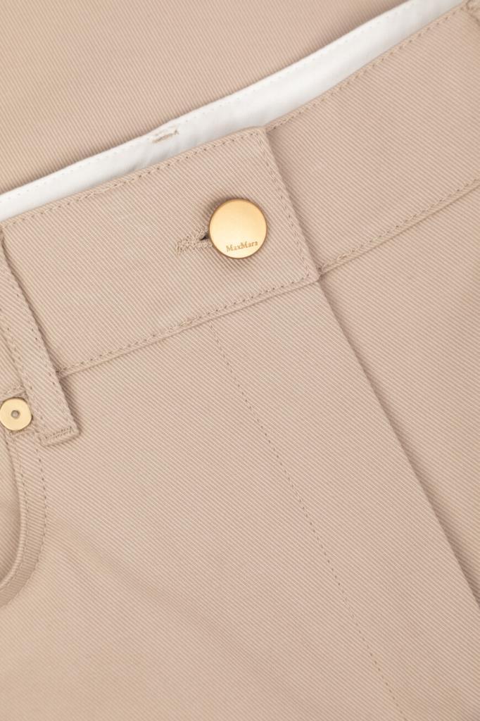 Бежевые брюки Max Mara с пятью карманами из эластичного хлопкового денима. Широкие штанины изделия обеспечивают свободу движений, а эластичный материал гарантирует идеальную посадку. Прорезные задние карманы и металлические заклепки добавляют практичности и стиля, а потайная застежка на молнию и пуговицу – удобства. Брюки станут идеальным выбором для вашего повседневного гардероба.