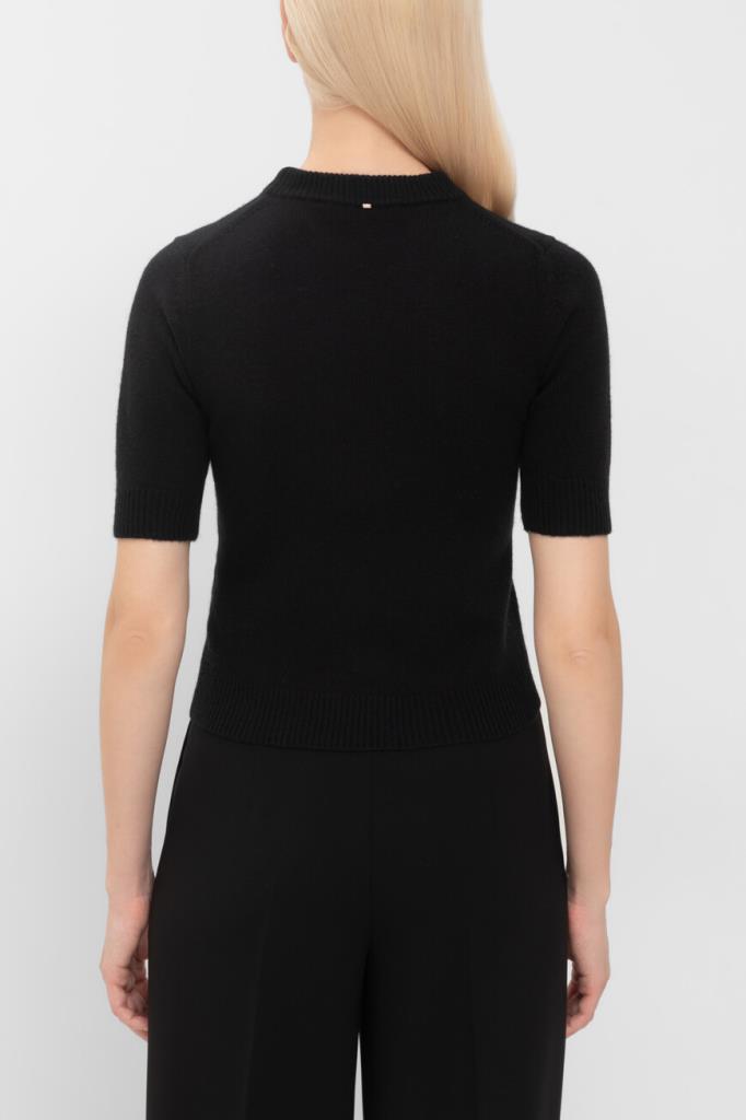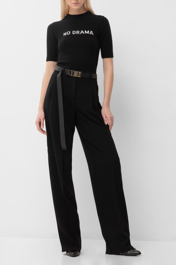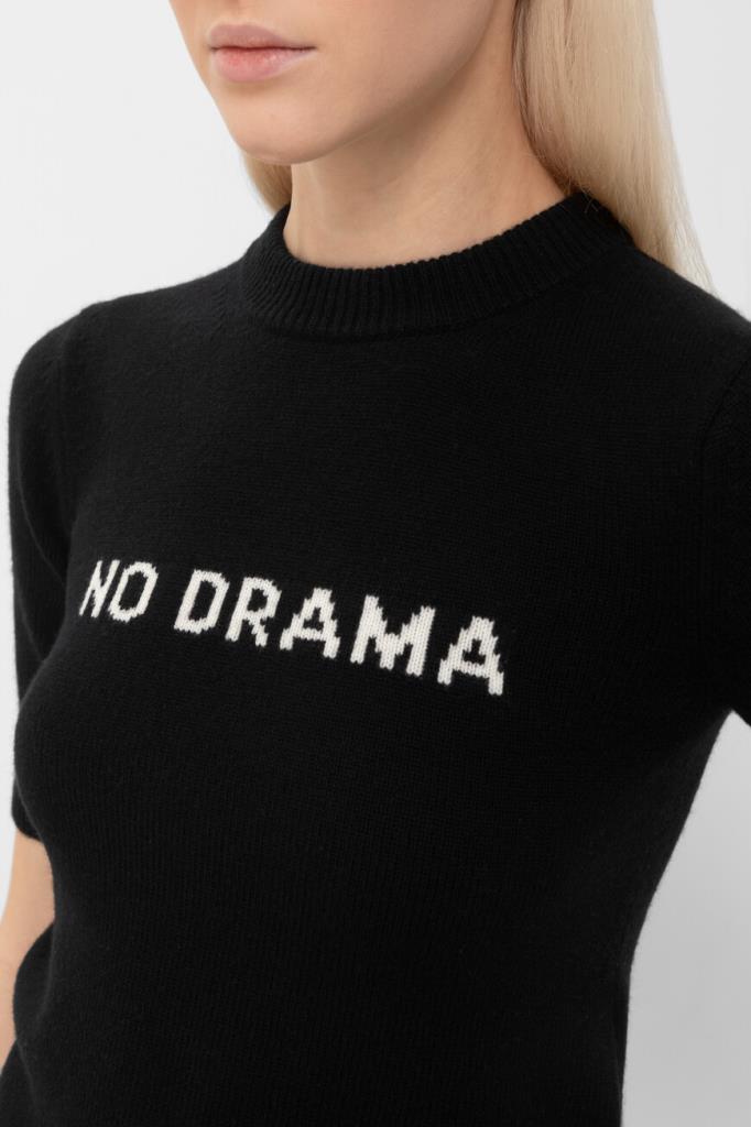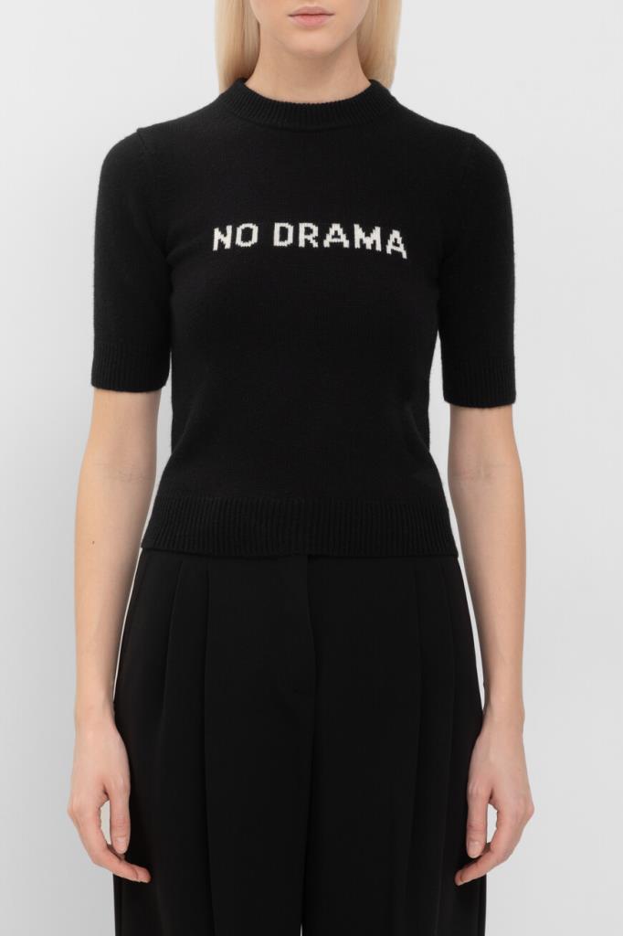 Джемпер Max Mara с короткими рукавами выполнен из смеси кашемира и шерсти. Приталенный и женственный силуэт подчеркивает фигуру, а ребристые края и контрастная цветная вставка “NO DRAMA” на груди добавляют стильных акцентов. Пройма рукава украшена спущенными петлями, что придает модели особую изысканность. Этот джемпер станет идеальным дополнением к вашему гардеробу и подойдет для создания элегантных образов.