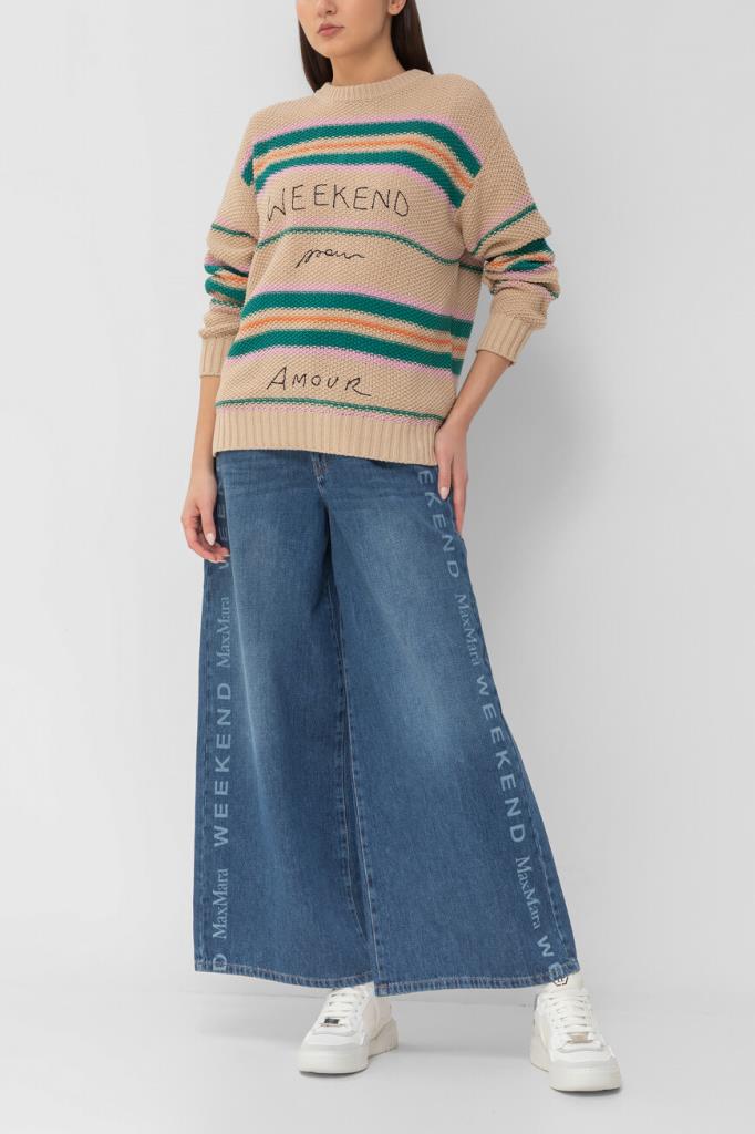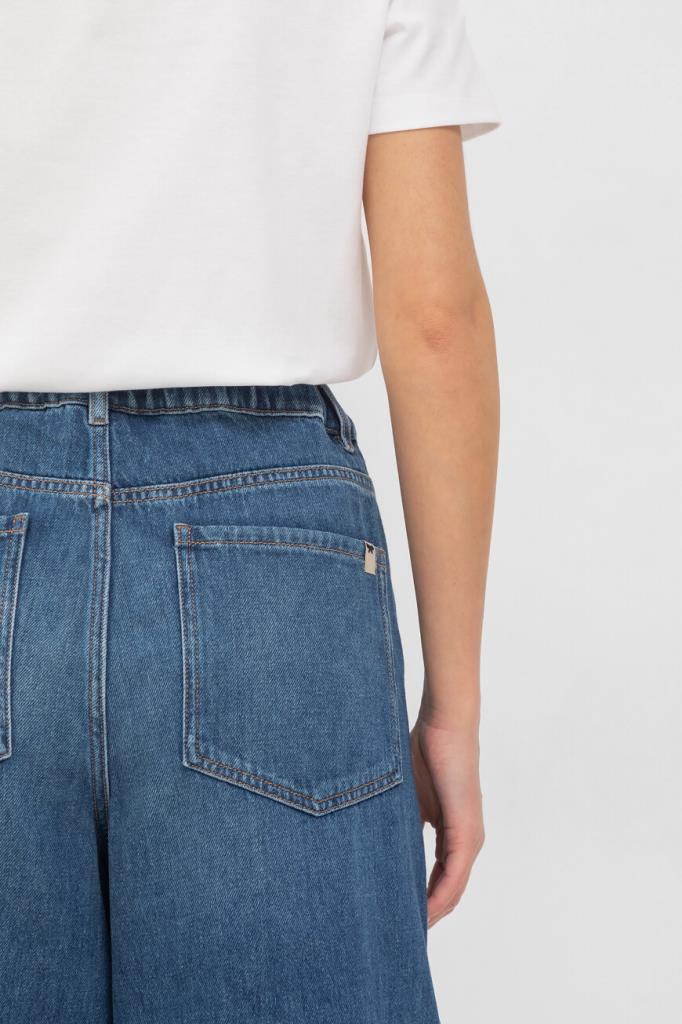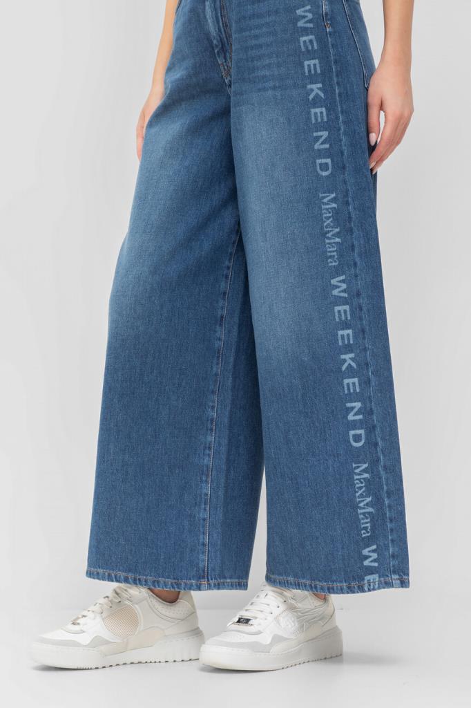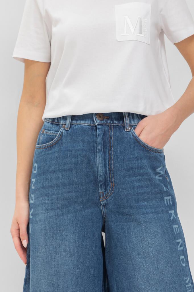 Брюки Max Mara из аутентичного хлопкового денима. Это идеальное сочетание комфорта и уникального стиля. Широкие штанины обеспечивают свободу движений, а эластичный пояс гарантирует удобную посадку. Контрастная лазерная надпись Weekend Max Mara по бокам добавляет смелый и современный акцент. В роли декора также – фирменная нашивка с логотипом бабочки из репсовой ленты. Брюки отлично впишутся в повседневный гардероб, добавляя в образы расслабленности и стильных акцентов.