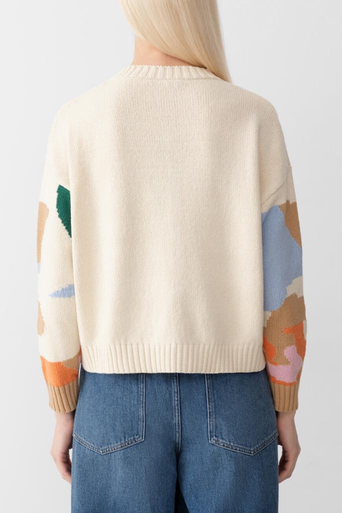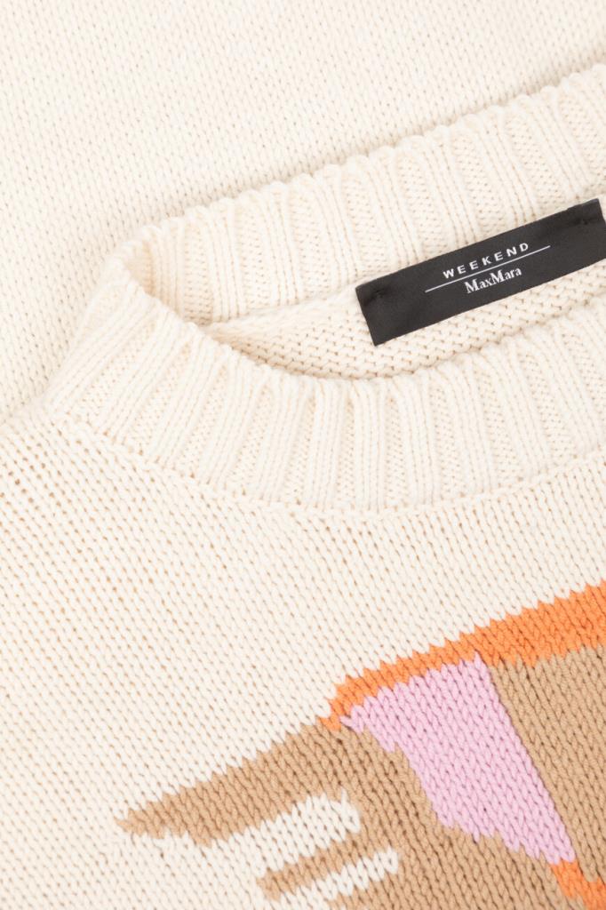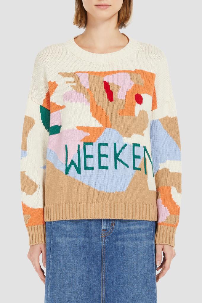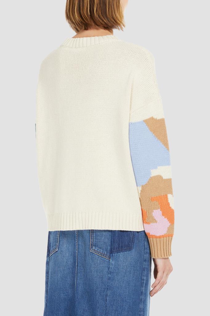 ​​Джемпер из хлопковой пряжи Max Mara – вариант для тех, кто ценит непринужденную элегантность и комфорт. Искусно выполненная узорная вставка с названием линейки бренда придает модели изысканный вид. Силуэт оверсайз, круглый вырез и спущенная линия плеча создают расслабленный, но в то же время стильный образ. Благодаря средней длине, свитер одинаково хорошо смотрится и с брюками, и с юбкой.