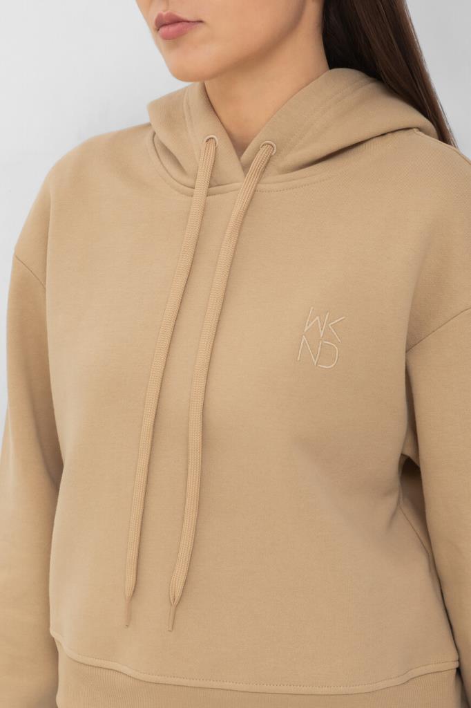 Худи Max Mara выполнено из мягкого хлопкового флиса бежевого оттенка. Широкий крой и укороченная длина создают расслабленный и современный образ. Капюшон со шнурком добавляет спортивного акцента, а длинные рукава обеспечивают тепло и комфорт.