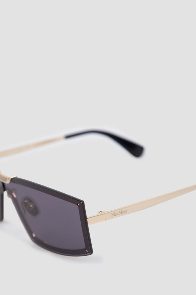 Трендовые очки Max Mara с прямоугольной передней частью в форме маски. Металлическая оправа, фирменная деталь Maxim на переносице и логотип на дужках – каждая деталь продумана до мелочей. Создайте стильный и запоминающийся образ вместе с этим аксессуаром.