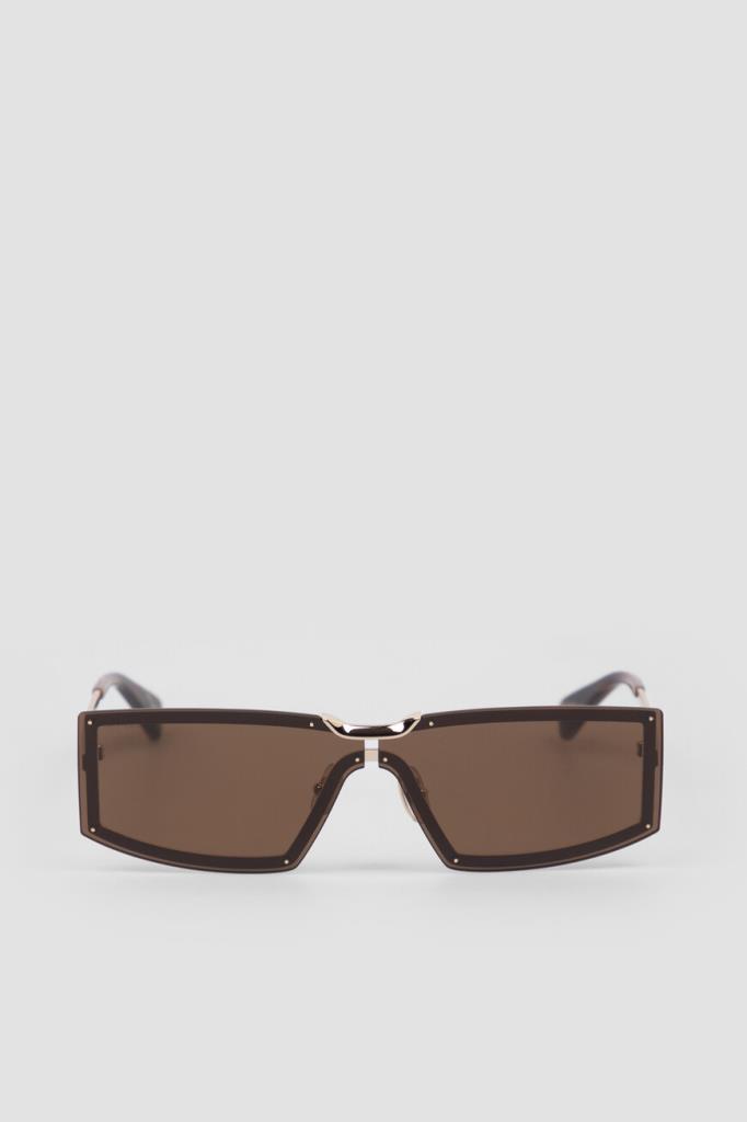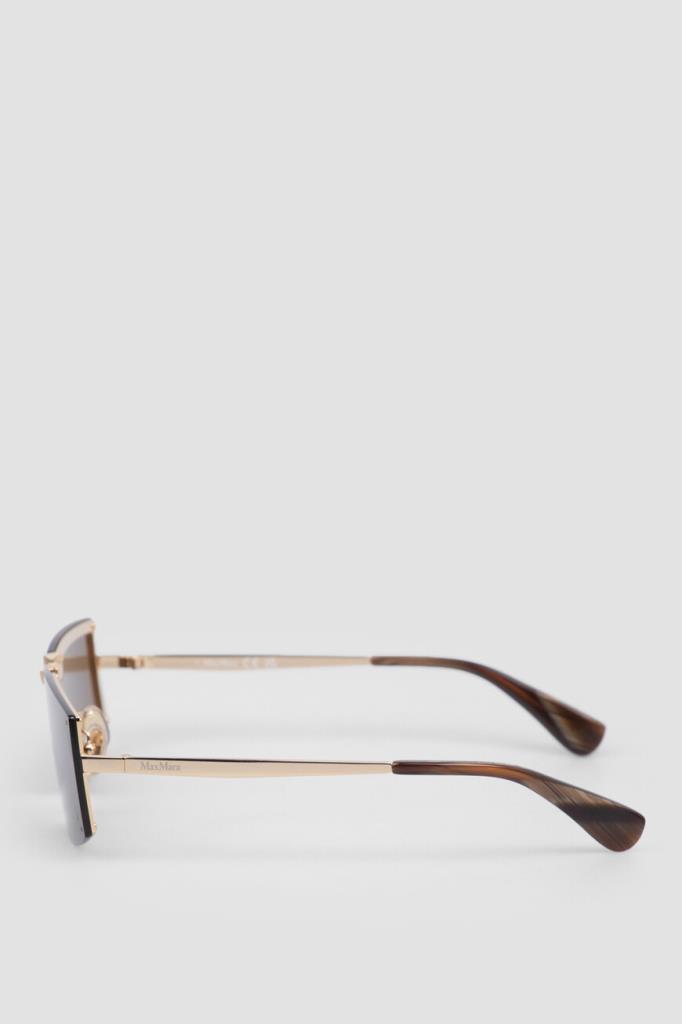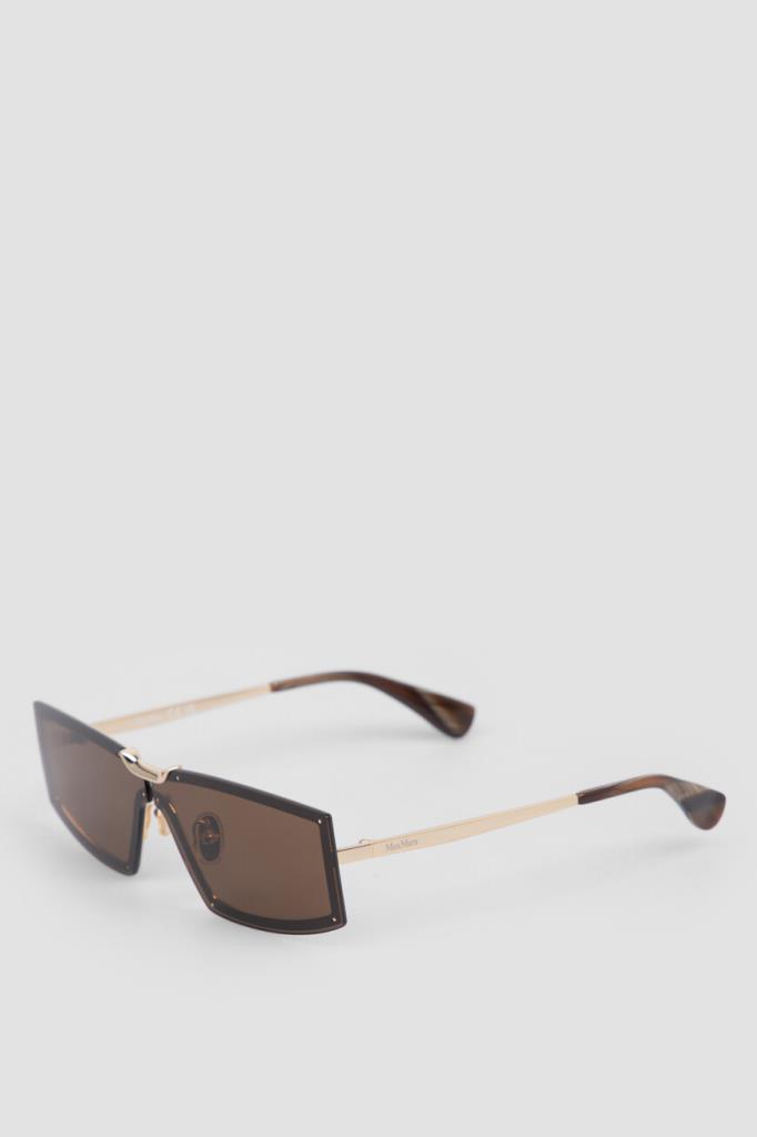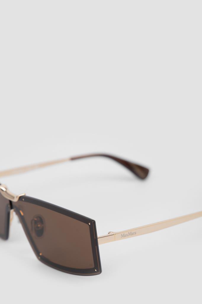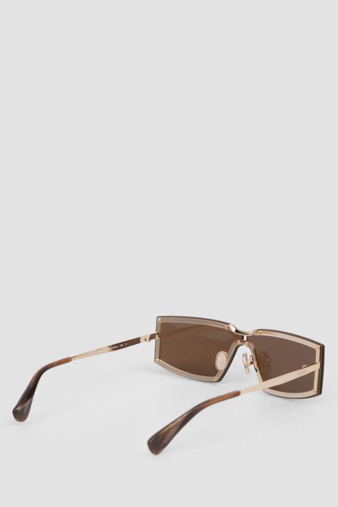 Коричневые трендовые очки Max Mara с прямоугольной передней частью в форме маски. Металлическая оправа, фирменная деталь Maxim на переносице и логотип на дужках – каждая деталь продумана до мелочей. Создайте стильный и запоминающийся образ вместе с этим аксессуаром.