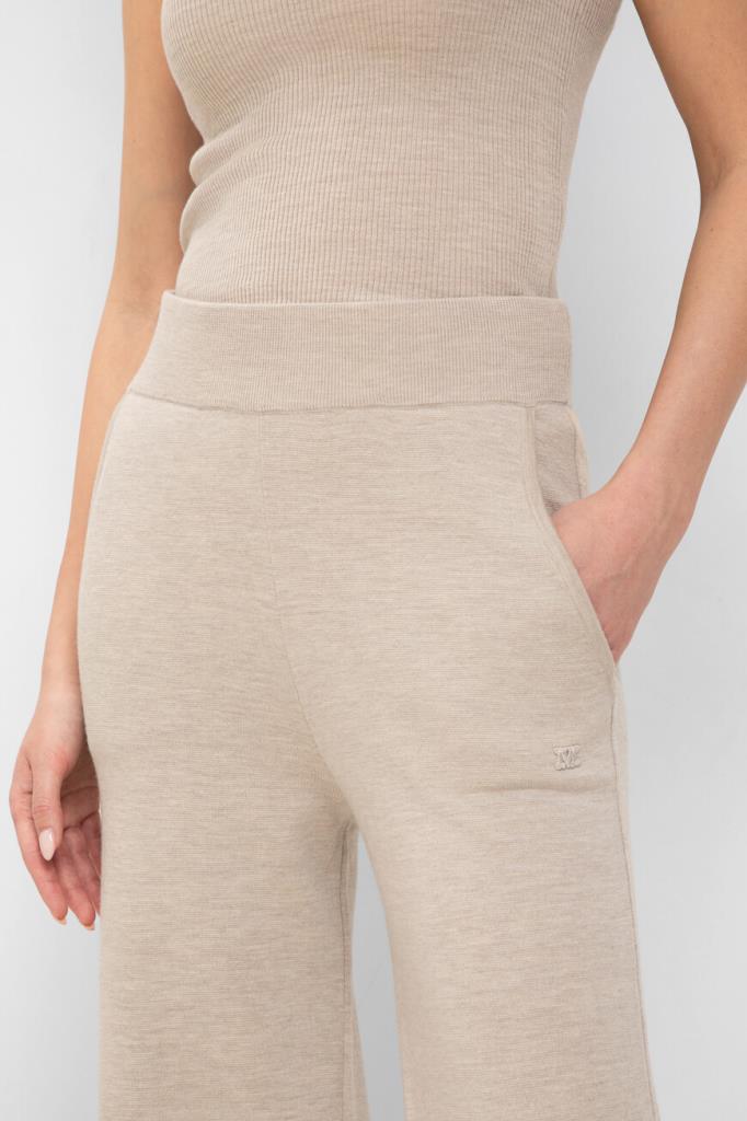 Длинные брюки Max Mara из мягкой вирджинской шерсти. Изделие интересно завышенной талией и широкими расклешенными штанинами. Для удобства посадки модель дополнена эластичным поясом. В роли декора – миниатюрная литера M, указывающая на принадлежность к бренду.