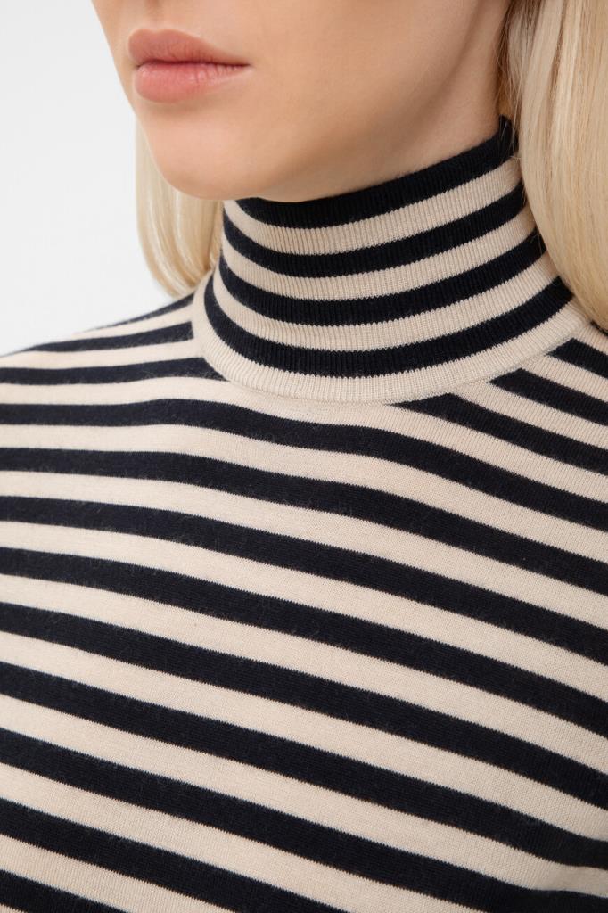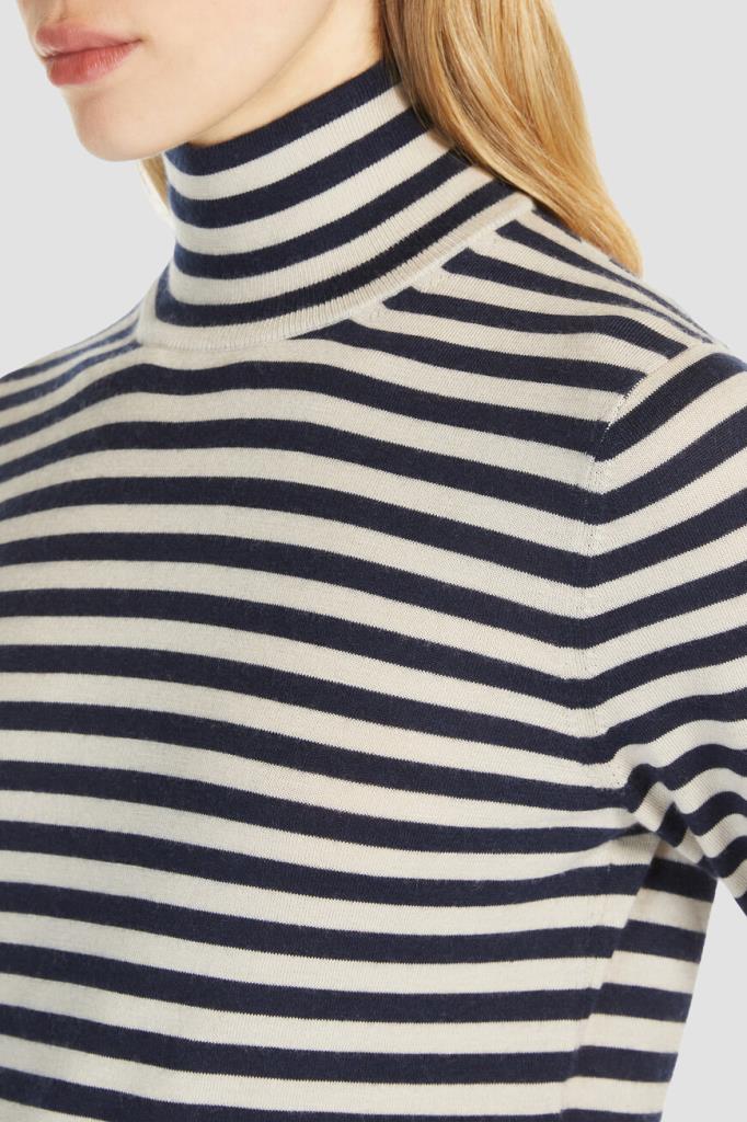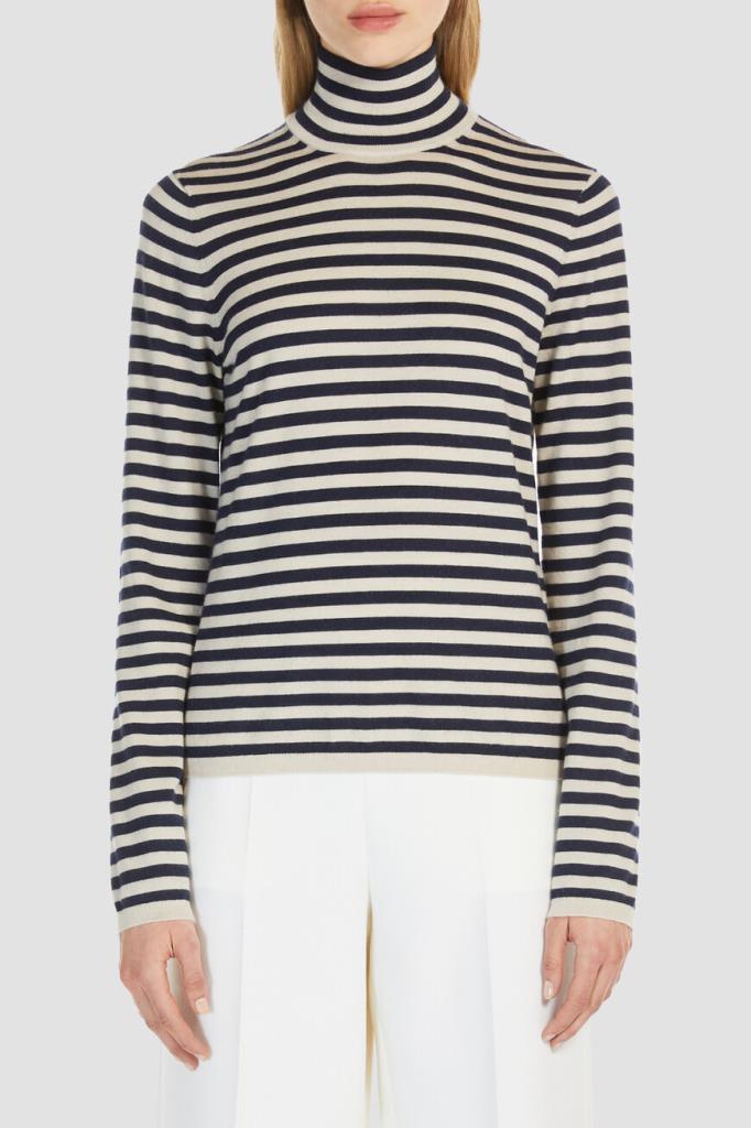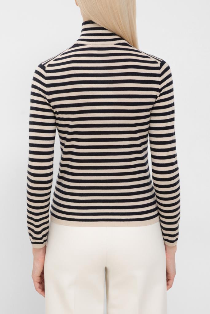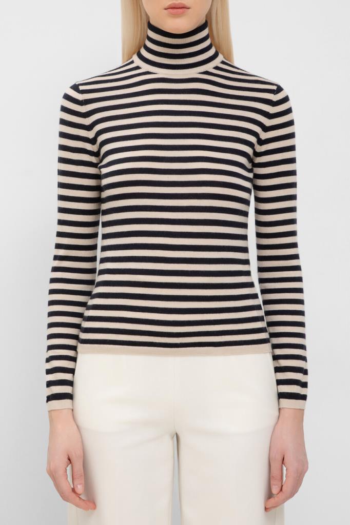 Джемпер Max Mara с воротником-гольф – это воплощение роскоши и комфорта. Изготовленный из легкой и нежной пряжи на основе кашемира с полосатым геометрическим мотивом, он обеспечивает непревзойденную мягкость и тепло. Стандартная посадка гарантирует идеальный силуэт.