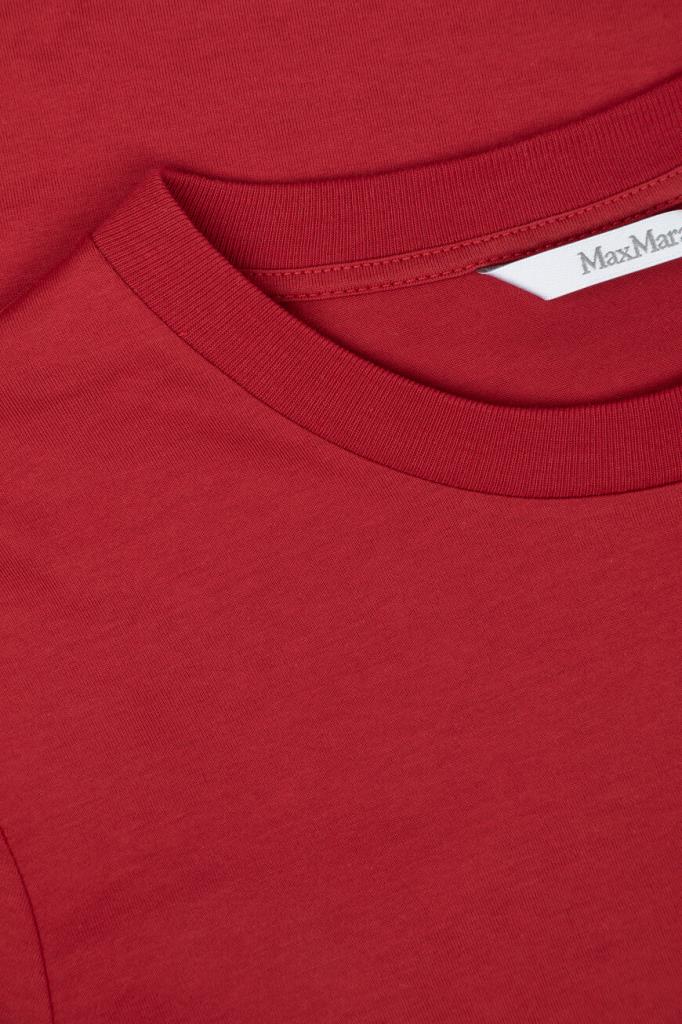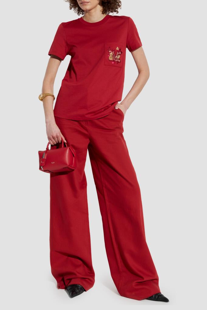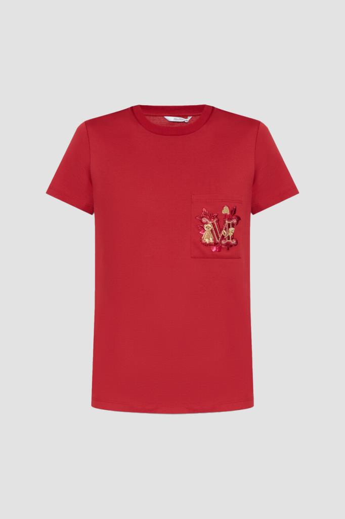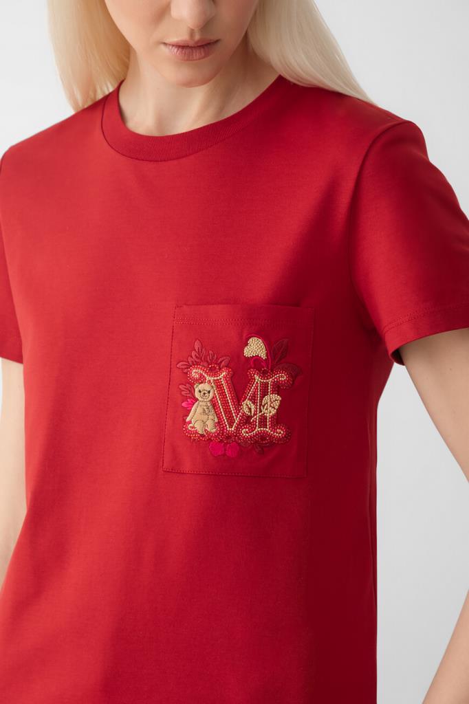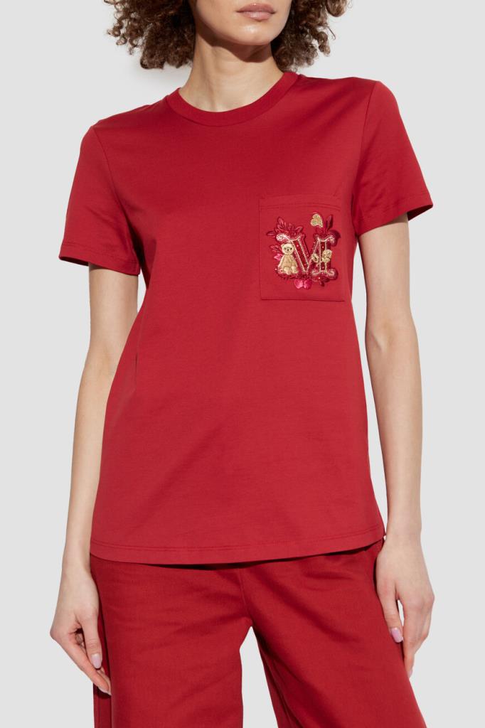 Красная футболка Max Mara из хлопкового джерси – идеальный выбор для повседневного образа. Стандартная посадка обеспечивает комфорт, а круглый вырез горловины и короткие рукава делают модель универсальной. Крупная вышитая монограмма "M" на нагрудном кармане и мелкие стразы – детали, которые добавляют изделию изысканности.