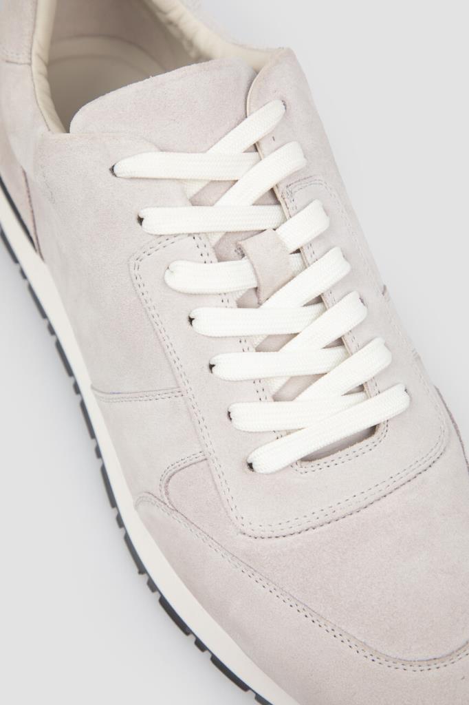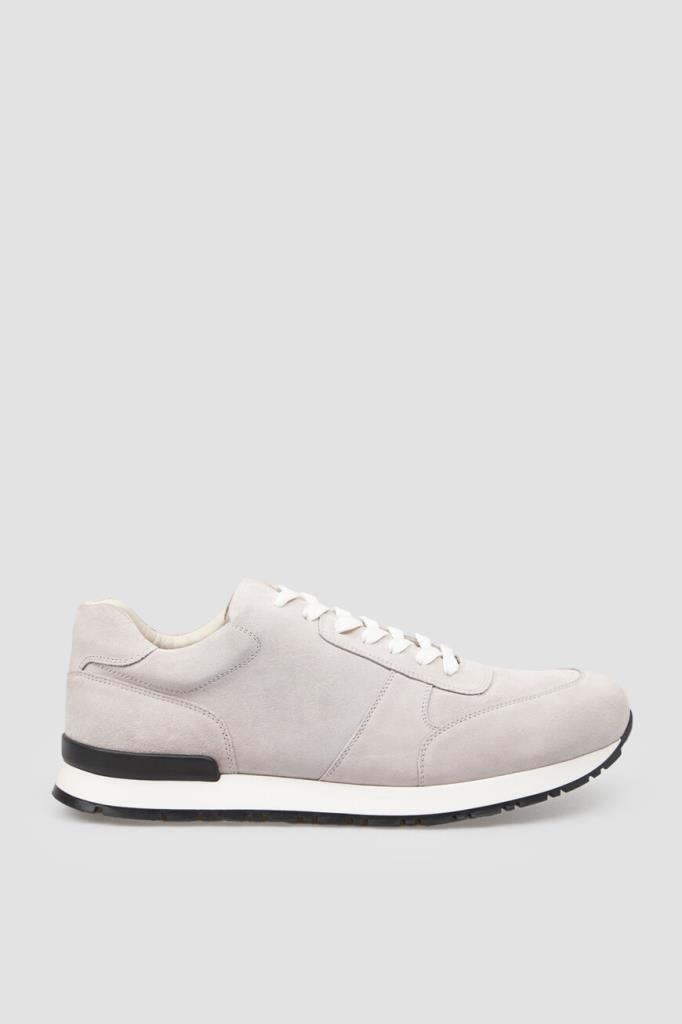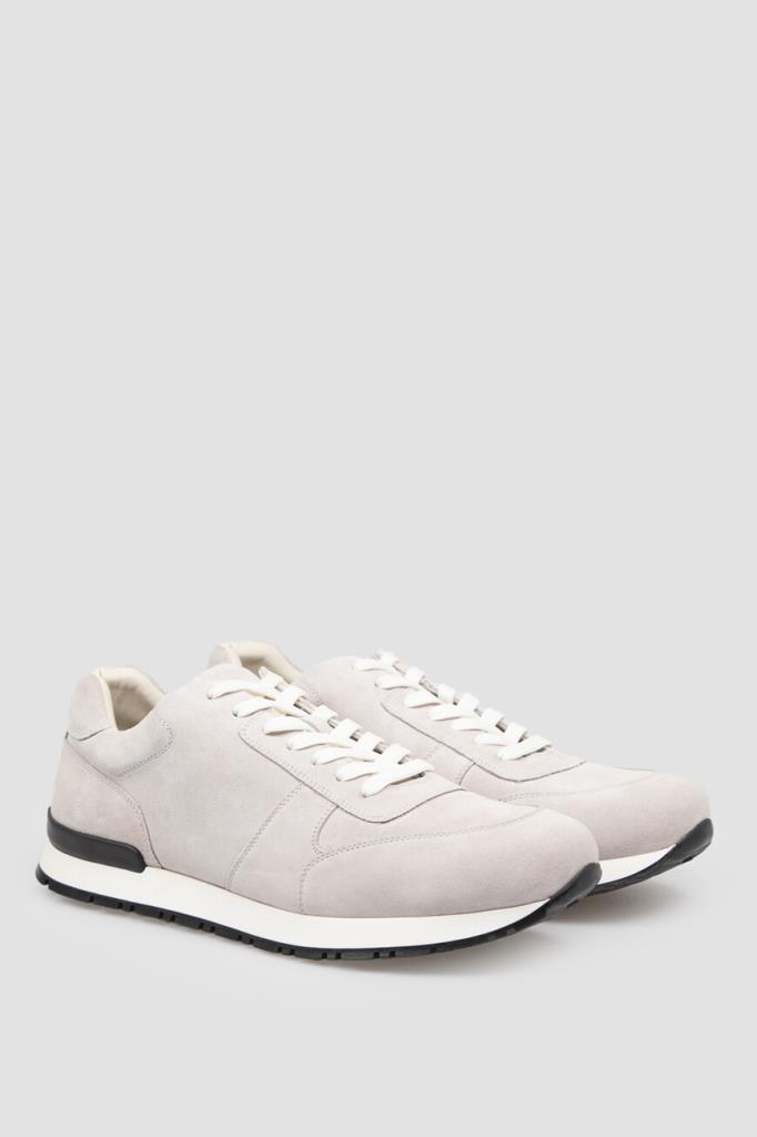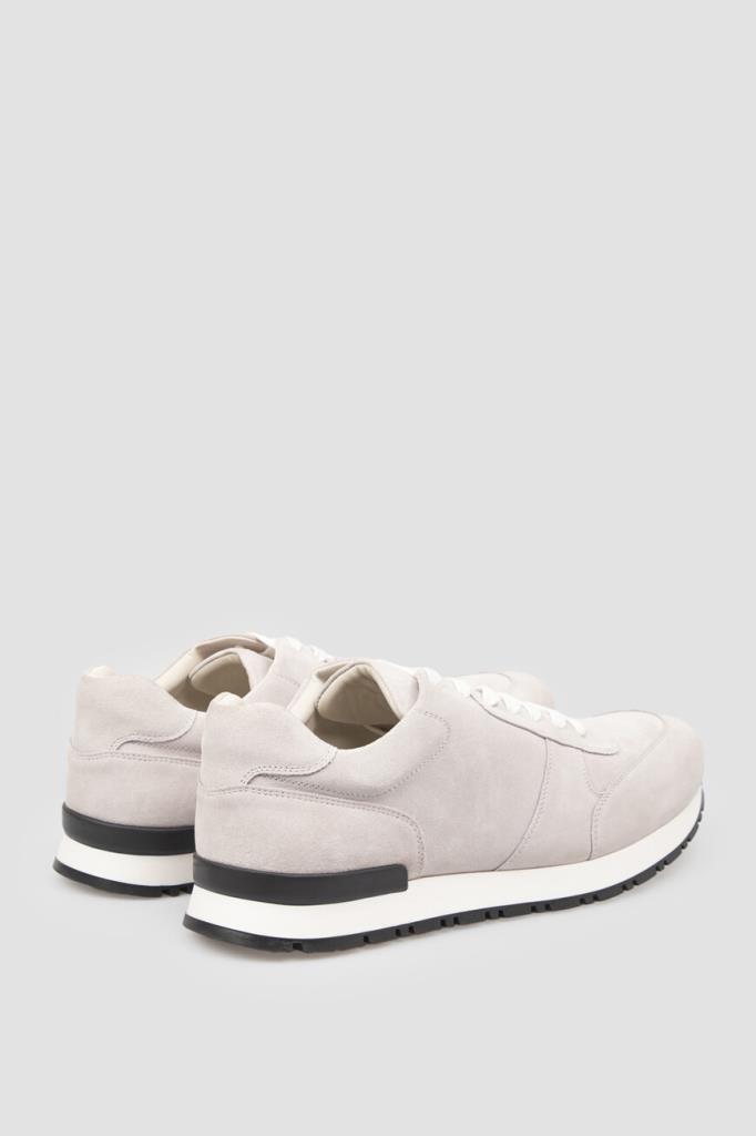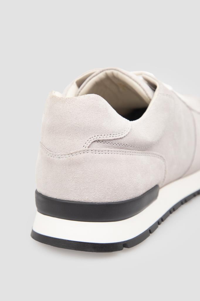Выполненные вручную кроссовки Bardini с укреплёнными носком и задником. Пара из мягкой бархатистой замши окрашена в нейтральный серый оттенок и дополнена амортизирующей резиновой подошвой в чёрно-белой гамме с протектором для надёжного сцепления с дорогой. Удобную посадку изделия на ноге обеспечивает перекрёстная многорядная шнуровка, а комфорт внутреннего пространства достигается благодаря подкладке из тонкой кожи телёнка.
