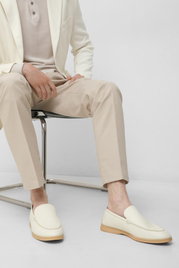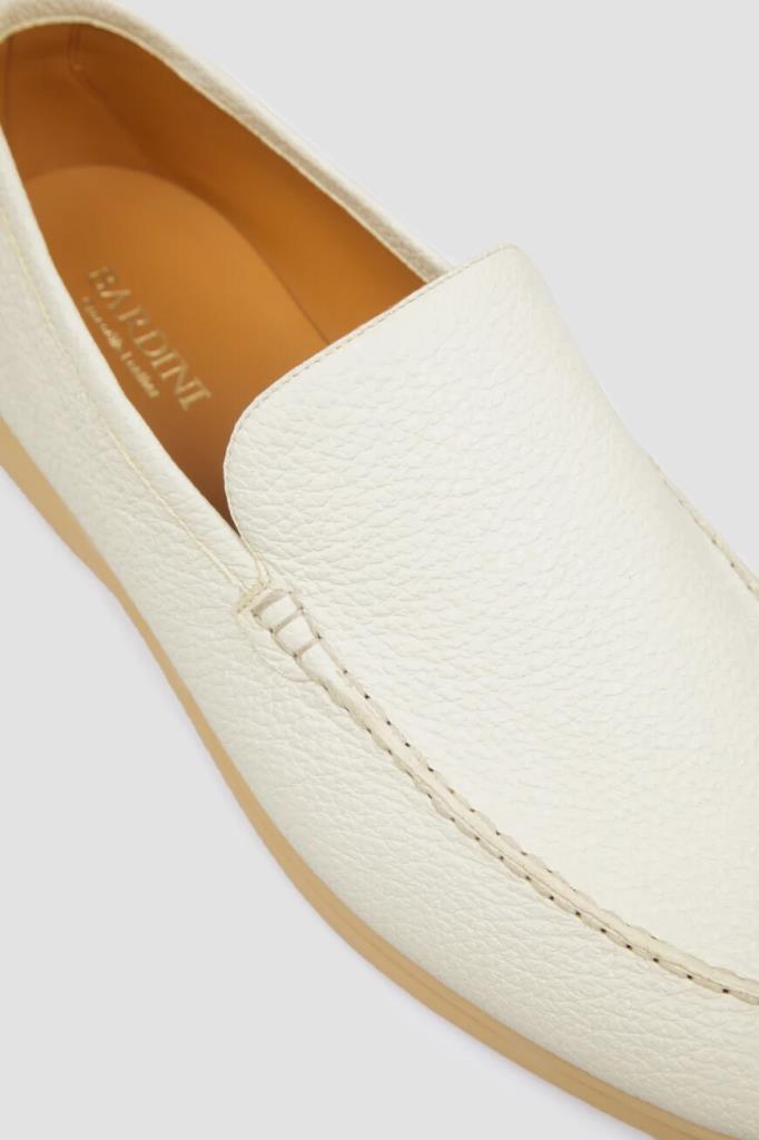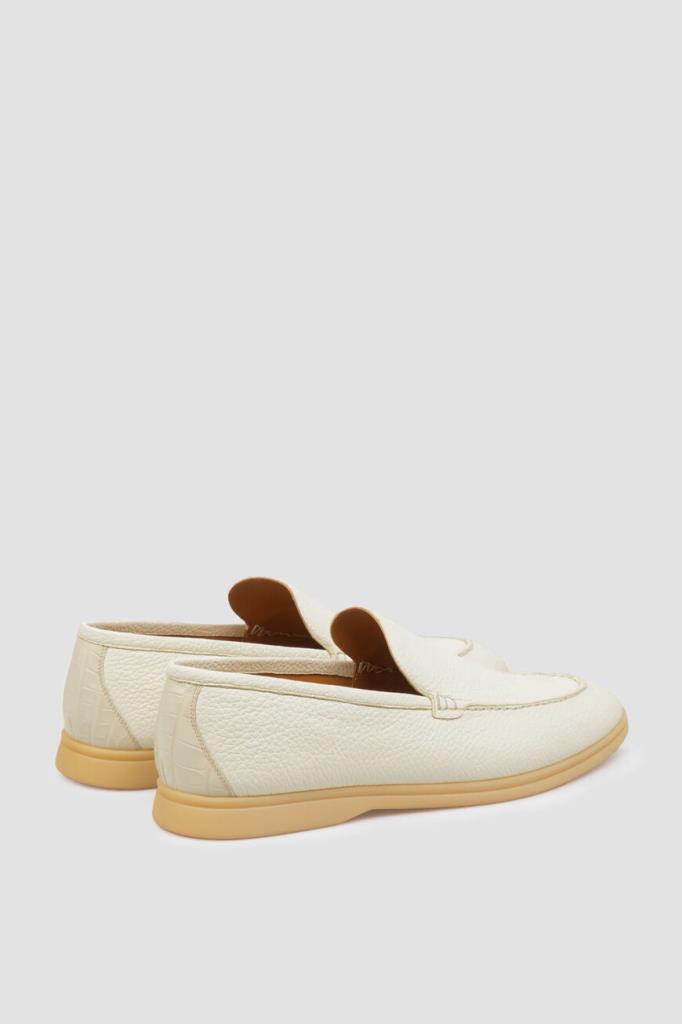 Классические лоферы ручной работы от Bardini. Изделие выполнено из мягкой зернистой кожи телёнка белого цвета и дополнено вставкой из фактурной кожи нильского крокодила на заднике в тон. Амортизирующая подошва с небольшим утолщением в области широкого каблука пришита к верхней кожаной части пары швом Гудиер, обеспечивающим максимальную долговечность этому соединению. Максимальный комфорт обеспечивается мягкой конструкцией обуви.