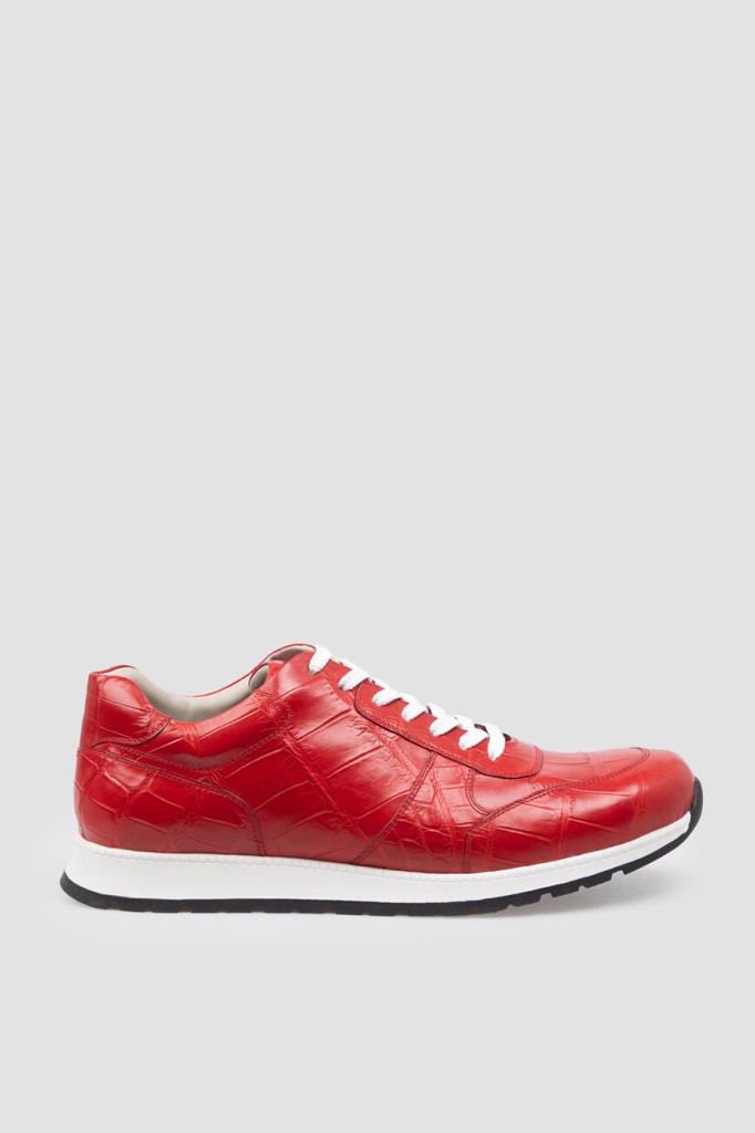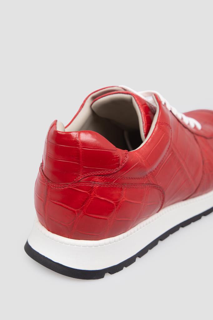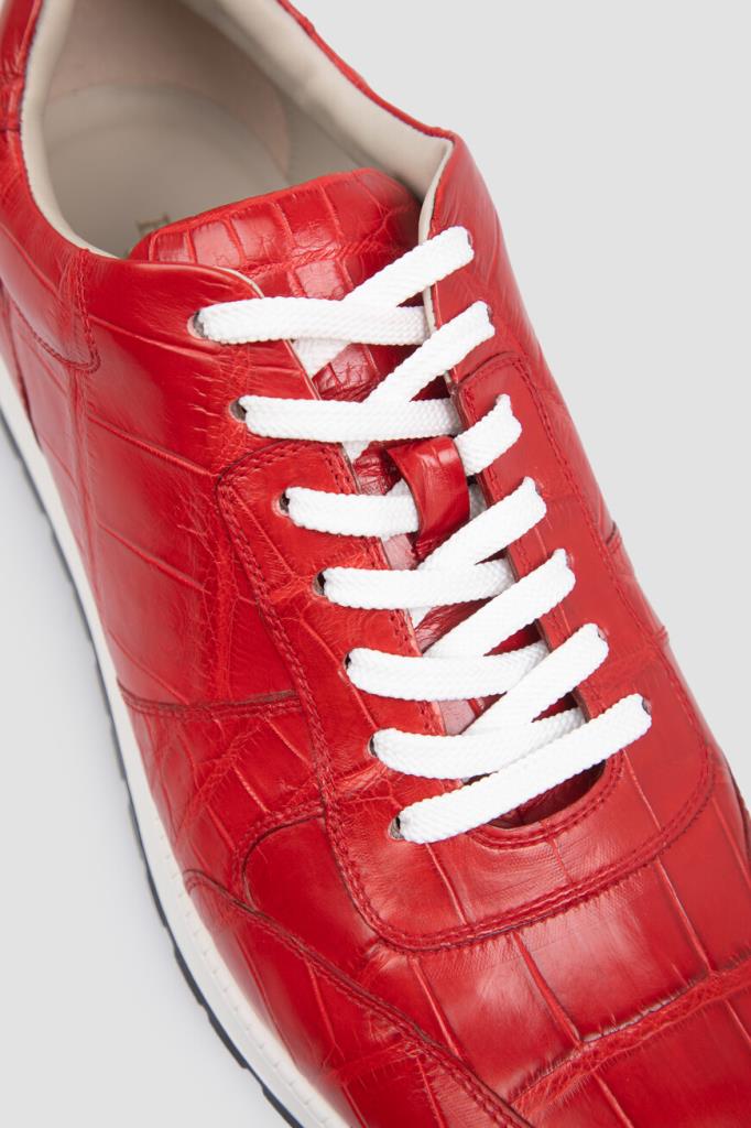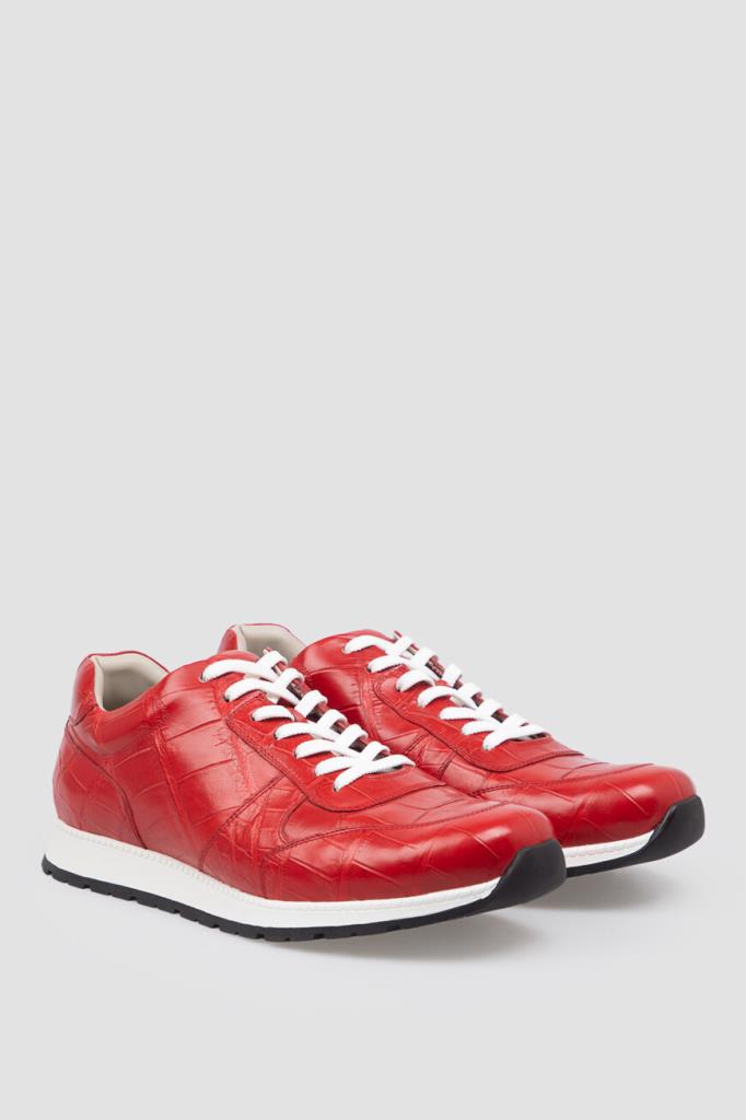 Кроссовки Bardini - это неотъемлемый атрибут спортивного стиля. Изделие выполнено из мягкой кожи нильского крокодила ярко-красного оттенка с естественным природным узором. Модель надёжно фиксируется на ноге благодаря закрытой белой шнуровке, а чёрно-белая протекторная подошва обеспечивает дополнительную устойчивость и сцепление с дорогой.