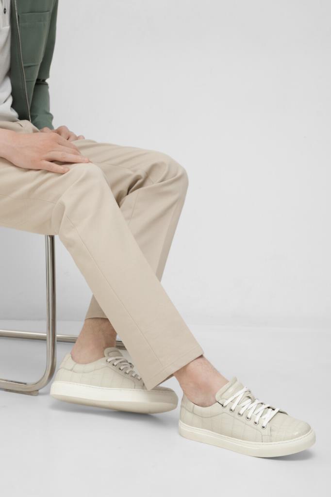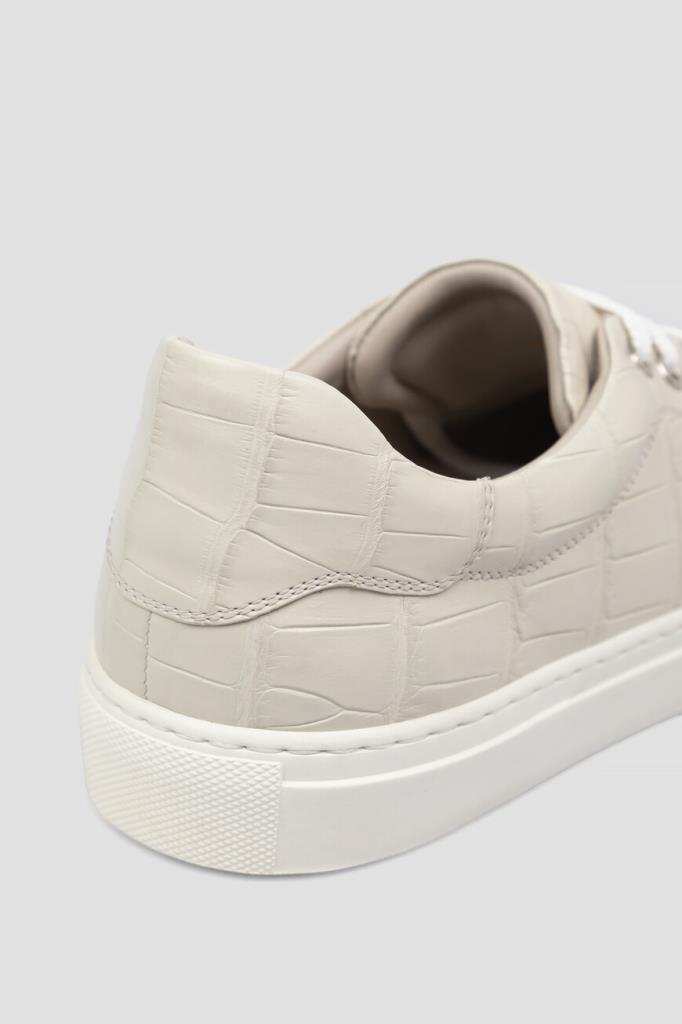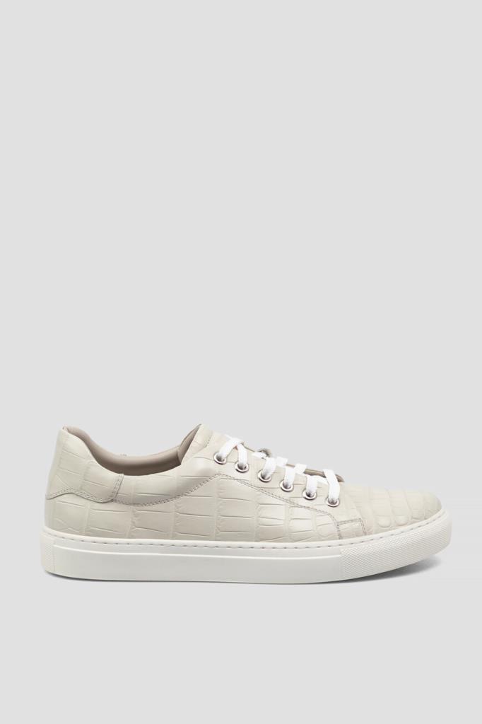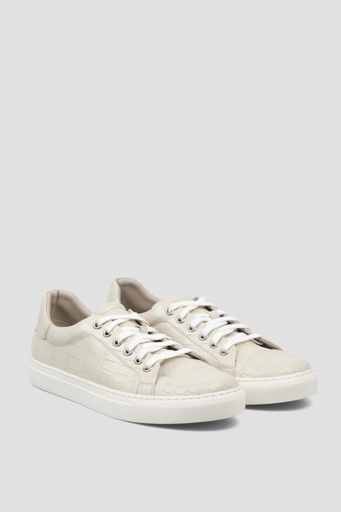 Женские кеды изготовлены вручную на собственной фабрике Bardini. Для создания изделия белого цвета используется мягкая кожа крокодила с характерным чешуйчатым узором. Пара декорирована крупными тиснёными лого Дома на кожаных стельках и установлена на плоскую амортизирующую подошву из натуральной резины на несколько тонов светлее основы.