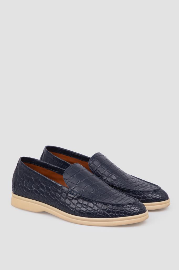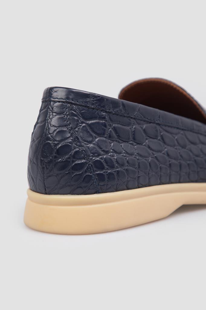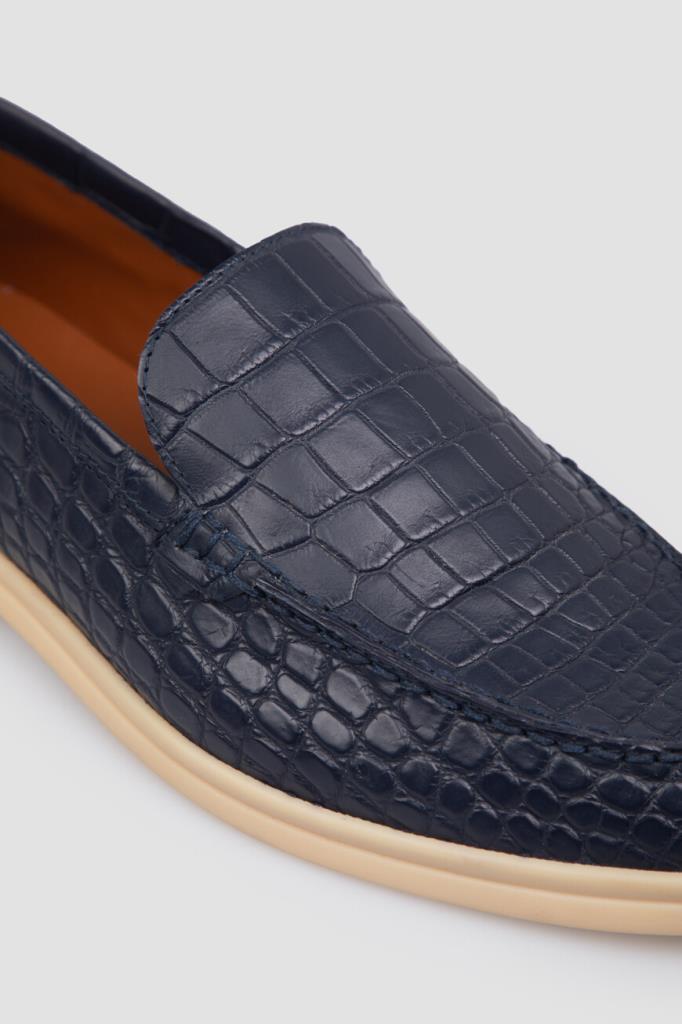 Лоферы Bardini выполнены вручную из мягкой кожи нильского крокодила. Модель, окрашенная в тёмно-синий оттенок, отличается естественным природным узором. Пара установлена на амортизирующую подошву из прочного полиуретана и выделана изнутри тонкой телячьей кожей цвета бисквит. Обувь с рельефным декоративным швом на союзке станет универсальным дополнением Ваших casual-комплектов.