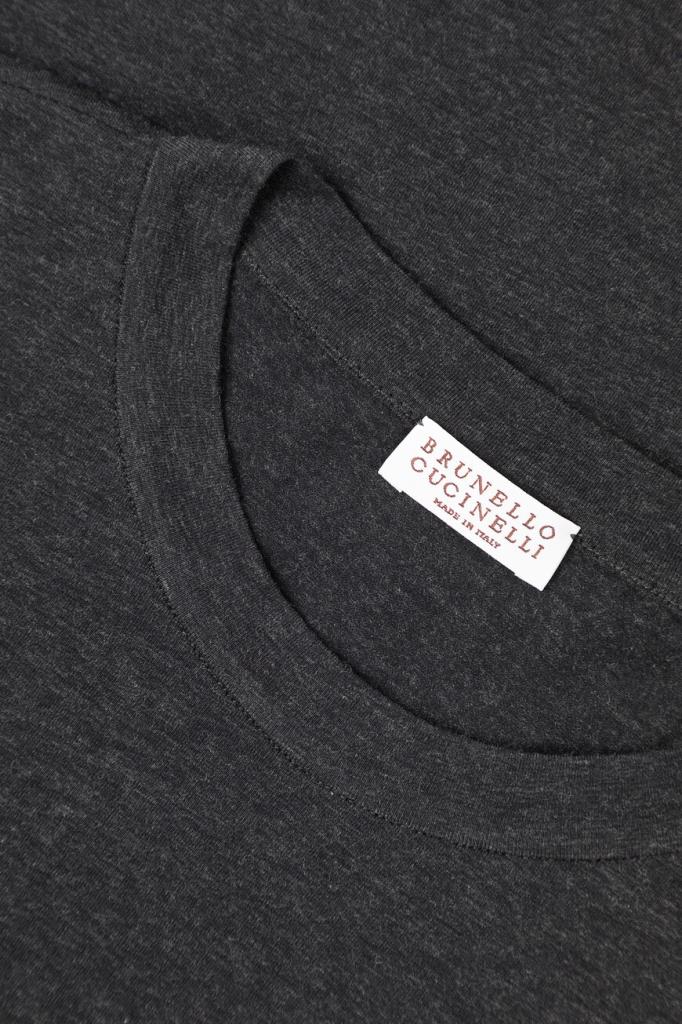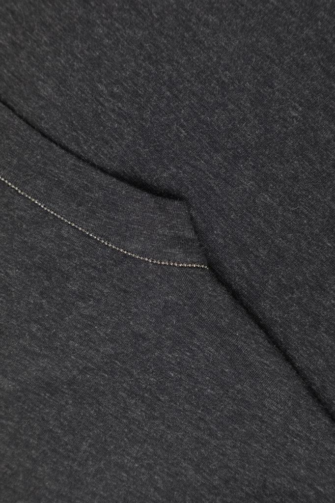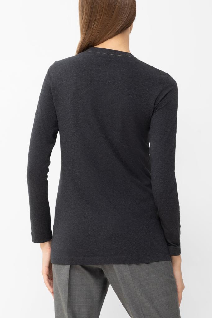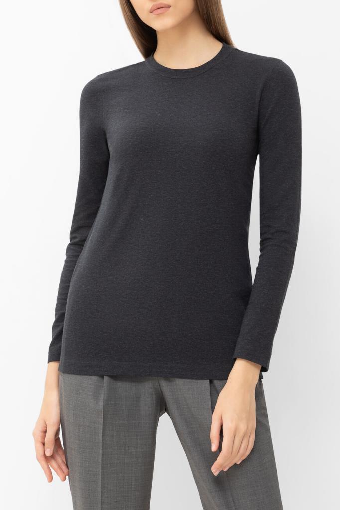 Лёгкий хлопковый лонгслив графитового цвета от BRUNELLO CUCINELLI. Насыщенный оттенок сделал лаконичную модель практичной опцией для комплектов любой цветовой гаммы. Добавление небольшого количества эластичных волокон в состав материала обеспечивает комфортную посадку изделия по фигуре. Отличительной деталью стала узкая знаковая цепочка Мониль, подчёркивающая заднюю часть круглого выреза горловины.