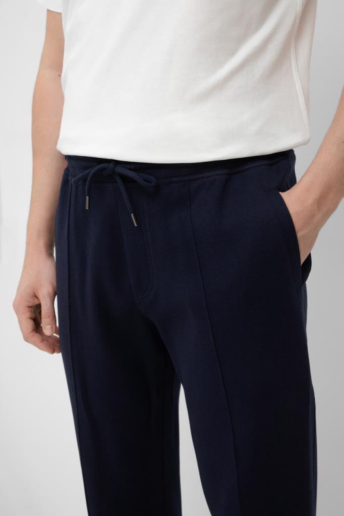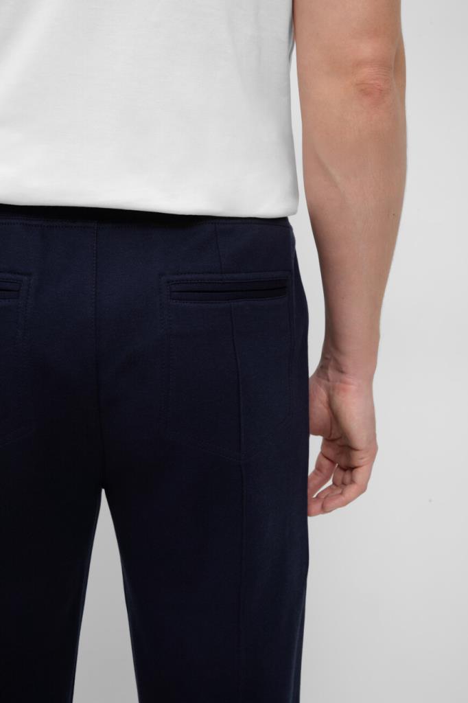 Спортивные брюки BRUNELLO CUCINELLI с очерченными стрелками. Изделие линии Travelwear выполнено из двухслойной ткани ручной отделки - футера на основе хлопка, кашемира, прочного нейлона и гладкого шёлка, обеспечивающих тепло, мягкость и комфорт при носке. Оптимальную посадку модели по линии талии обеспечивает широкий эластичный пояс-кулиска. В передних вертикальных карманах по бокам и крупных задних карманах удобно хранить мелкие предметы. Брюки сочетаются со стёганым пуховым жилетом на молнии с белой отделкой из той же линейки.