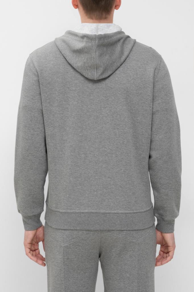 Толстовка BRUNELLO CUCINELLI с двумя крупными накладными карманами. Модель из линейки Travelwear, выполненная на основе хлопка, кашемира, прочного нейлона и гладкого шёлка серого цвета, характеризуется наличием глубокого капюшона на завязках и застёжкой на встречную молнию с двумя брендированными пуллерами. Двойной футер обеспечивает тепло, мягкость и комфорт при носке. Образ можно дополнить парными брюками с классическими стрелками из той же линейки.
