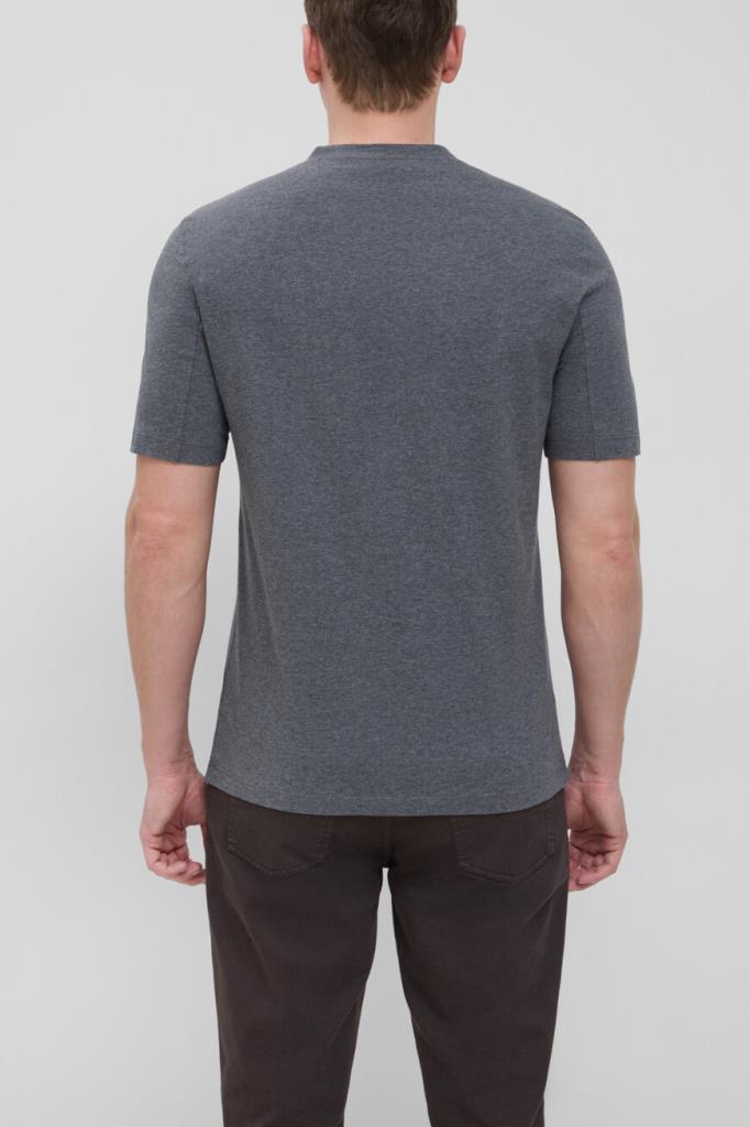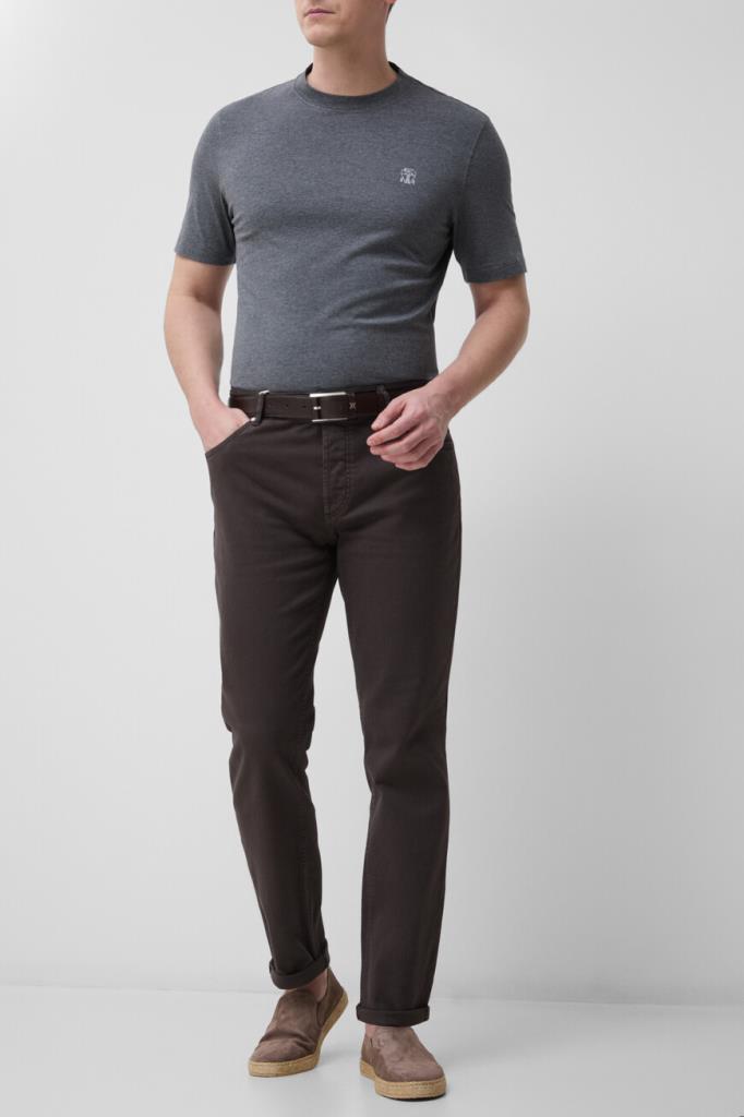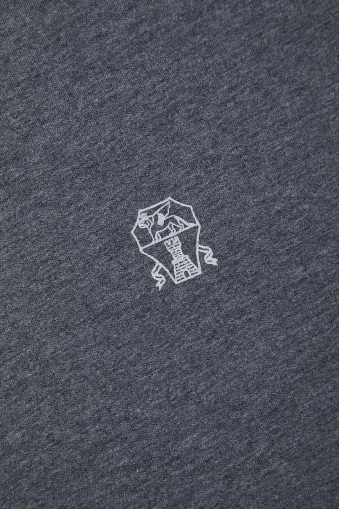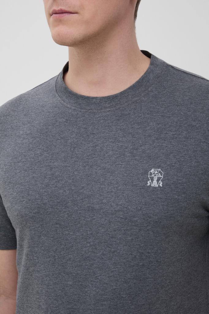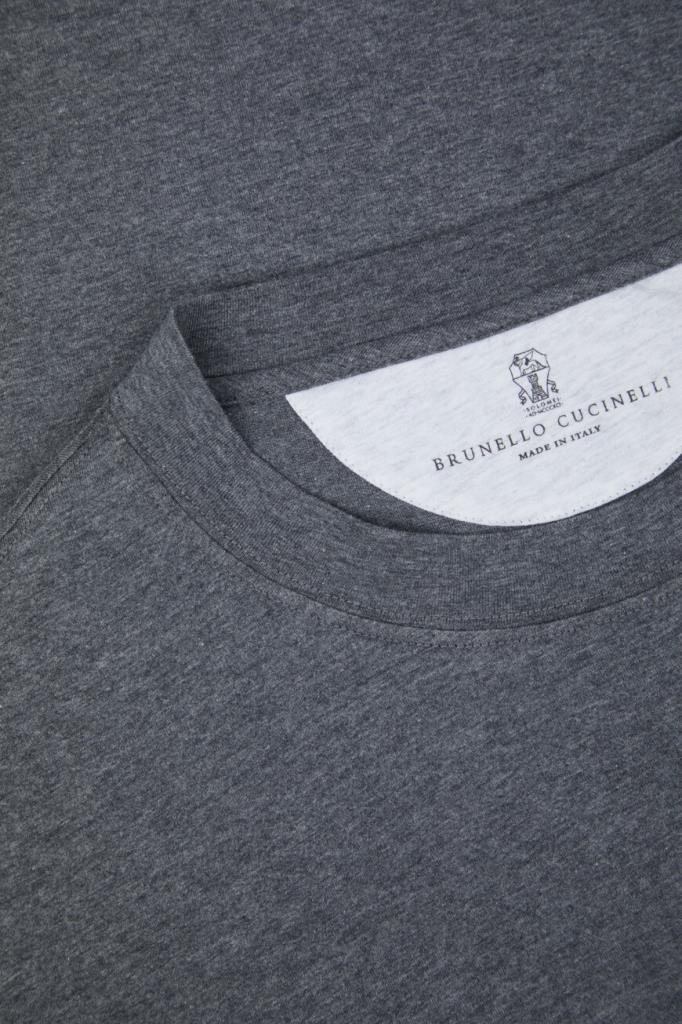 Тёмно-серая футболка BRUNELLO CUCINELLI с неглубокими боковыми разрезами. Для пошива модели прилегающего силуэта выбрано мягкое хлопковое джерси - лёгкая ткань с гладкой ровной поверхностью. Декором выступает небольшой логотип бренда слева на груди. Изделие с круглым вырезом горловины на резинке станет основой Ваших повседневных образов.