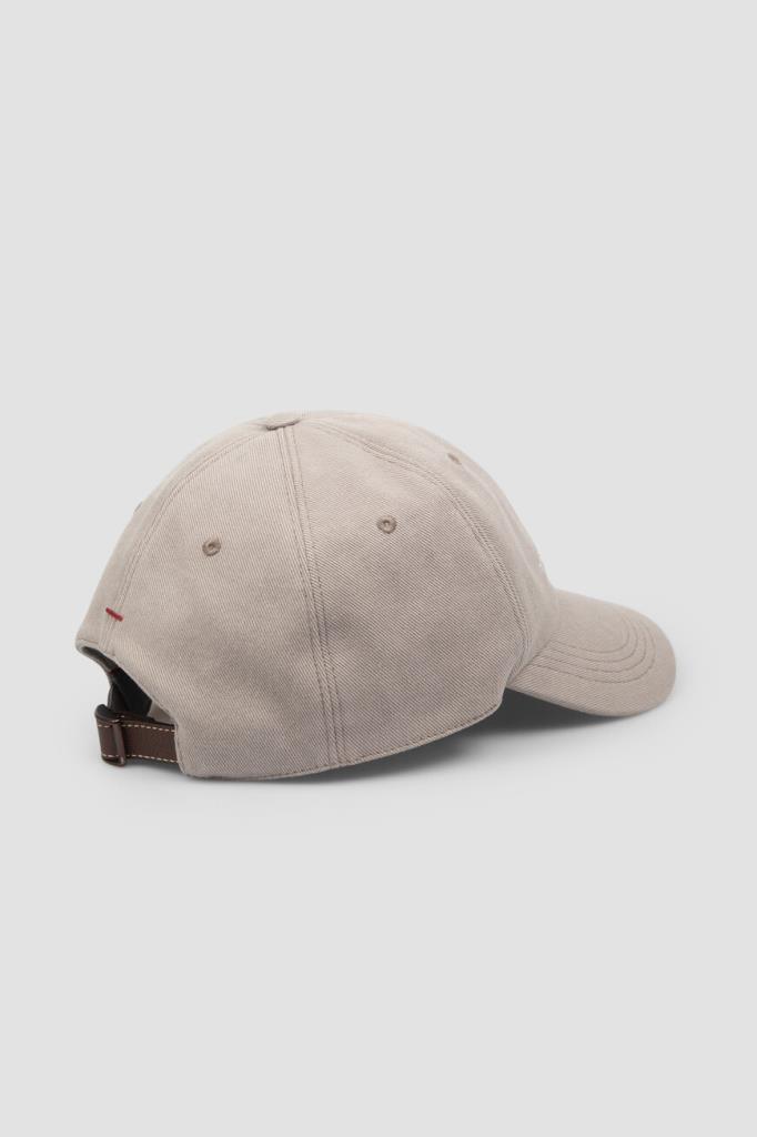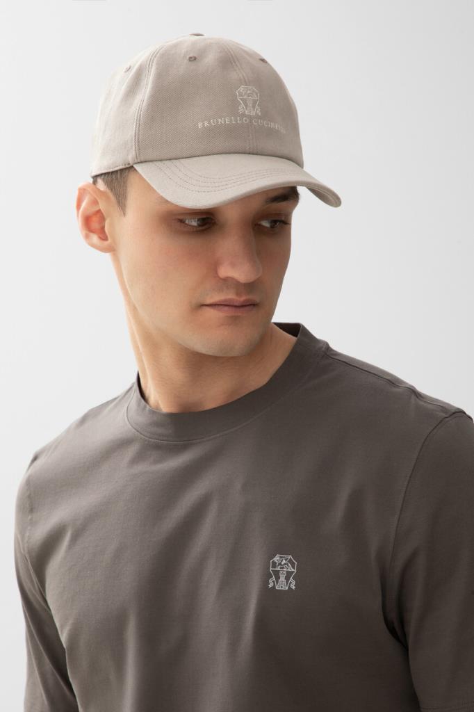 Серая бейсболка BRUNELLO CUCINELLI окрашена в готовом виде. В процессе такой окраски аксессуара вдоль краёв и строчек появляется небольшая расплывчатость оттенков цвета. Для создания традиционной шестиклинки выбран эластичный хлопковый деним. Атрибутами Дома являются крупные вышитые герб и надпись-логотип спереди по центру.