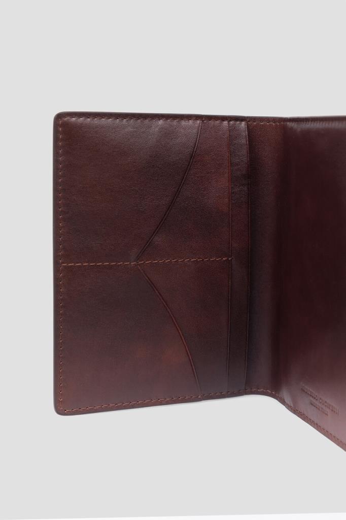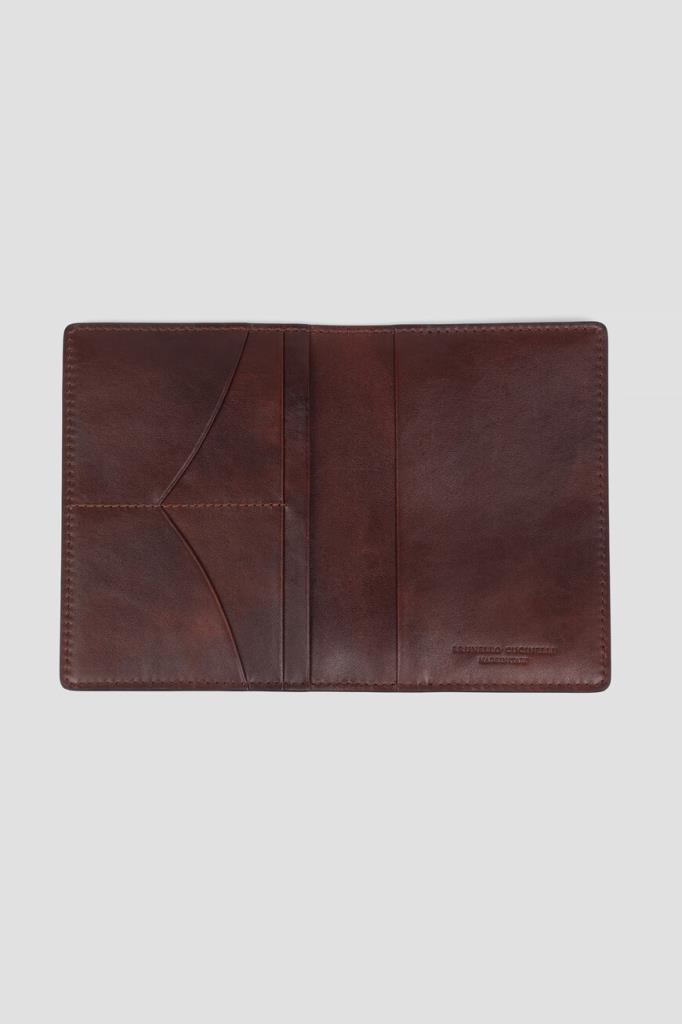 Обложка для паспорта BRUNELLO CUCINELLI из мягкой плотной кожи. Аксессуар выполнен в тёмно-коричневом цвете с патиной и внутренней отделкой из кожи телёнка. Атрибутами Дома являются тиснёные надписи-лого, размещённые на передней панели и справа во внутренней части модели. Для удобства в изделии предусмотрены четыре слота для пластиковых карт.
