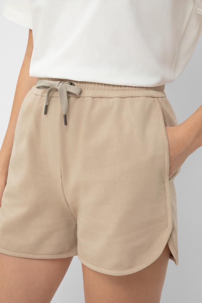 Лёгкие хлопковые шорты BRUNELLO CUCINELLI с тремя прорезными карманами. Для оптимальной посадки по фигуре в изделии светло-коричневого оттенка предусмотрен широкий эластичный пояс-кулиска. Дополнительный комфорт обеспечивают изящные закруглённые разрезы снизу. Модель без знакового декора станет неотъемлемой частью Ваших повседневных комплектов.
