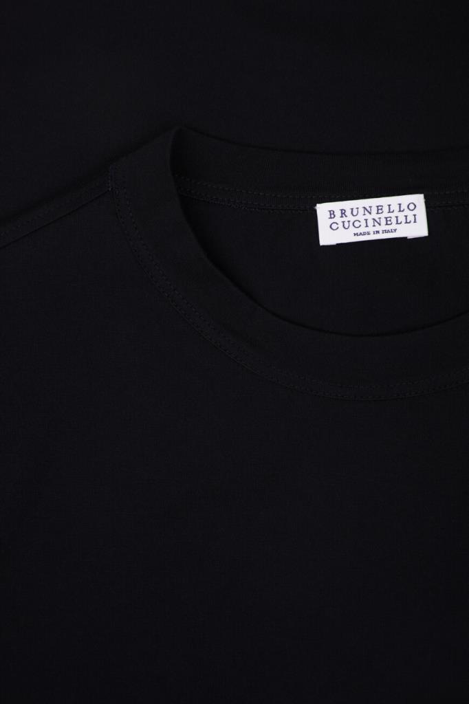 Базовая футболка BRUNELLO CUCINELLI с отглаженной кромкой снизу. Для создания прямой модели используется мягкое хлопковое джерси. Изделие из такого приятного на ощупь материала комфортно садится по фигуре и не ограничивает свободу движений. Принадлежность футболки для любого сезона Дому деликатно обозначена рядом серебристой цепочки Мониль сзади вдоль нижнего края воротника.