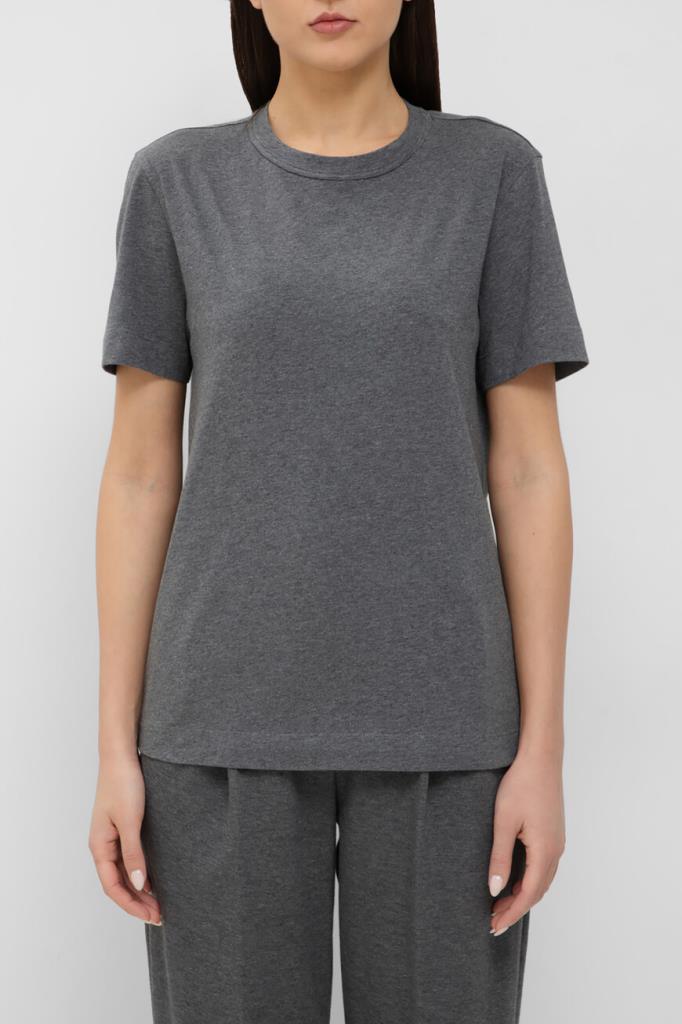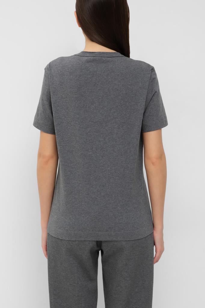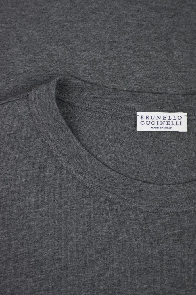 Хлопковая футболка прямого силуэта от BRUNELLO CUCINELLI. Однотонная модель из такого приятного на ощупь джерси комфортно садится по фигуре и не ограничивает свободу движений. Декором выступает ряд блестящей серебристой цепочки Мониль сзади вдоль нижнего края воротника, оформленного резинкой.
