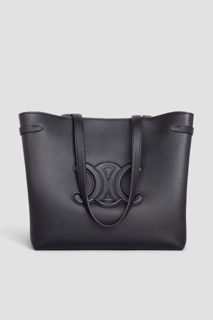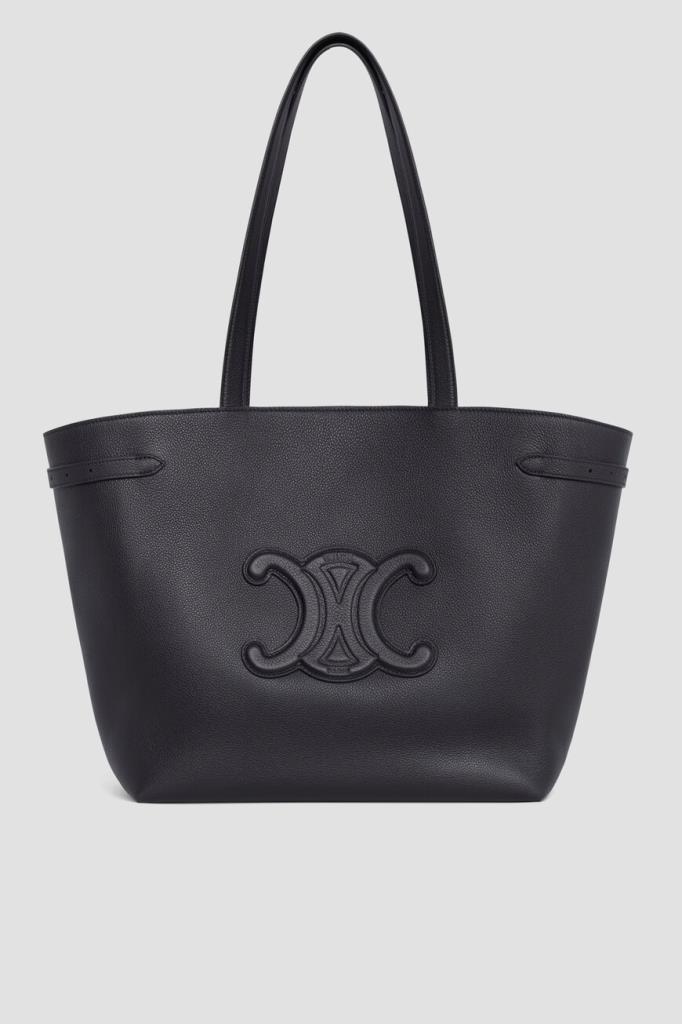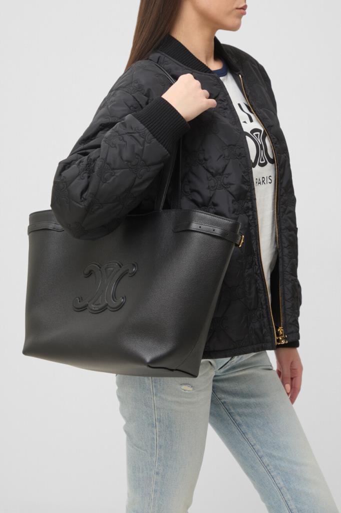 Кожаная сумка-тоут Cabas Anaïs Cuir среднего формата от Celine. Практичная модель чёрного базового цвета - это идеальное сочетание классического стиля и современной функциональности. Просторное внутреннее отделение на потайной застёжке-клёпке позволяет удобно разместить всё необходимое, а продуманная конструкция с боковинами «гармошкой» на регулирующих ремешках обеспечивает комфорт и практичность. Декором выступает крупный рельефный символ Triumph с тиснёным логотипом Дома, расположенный на лицевой стенке.