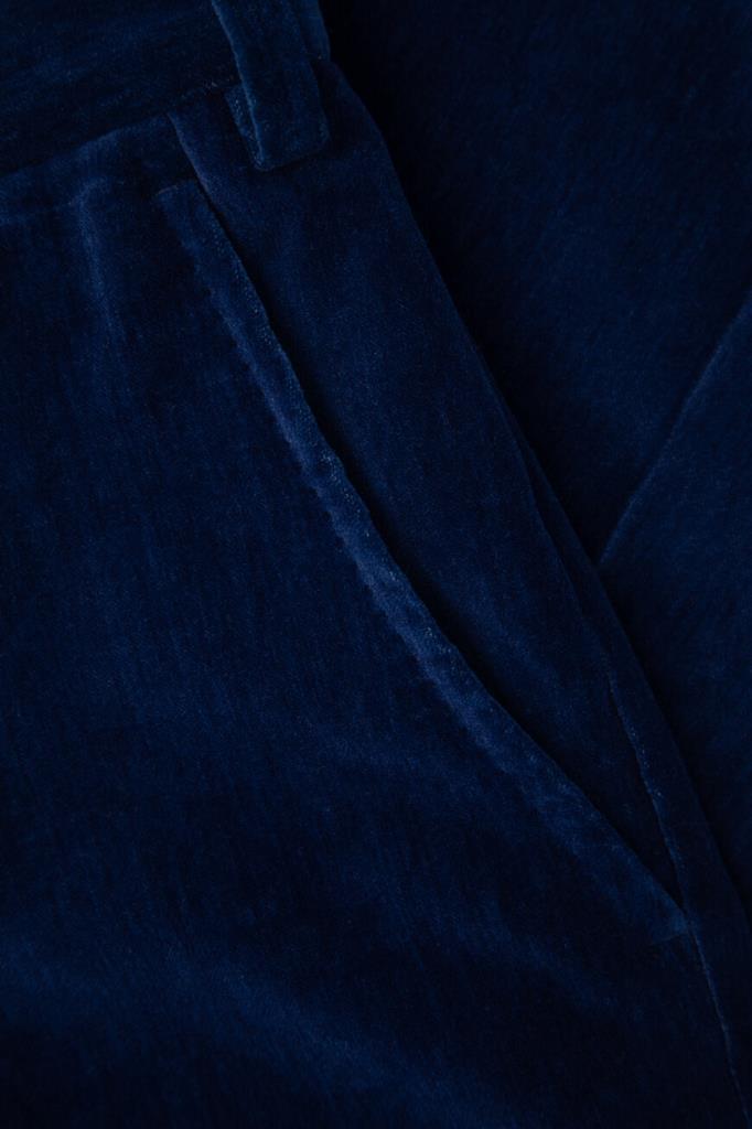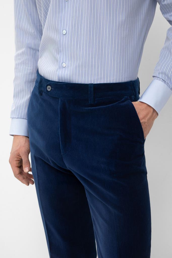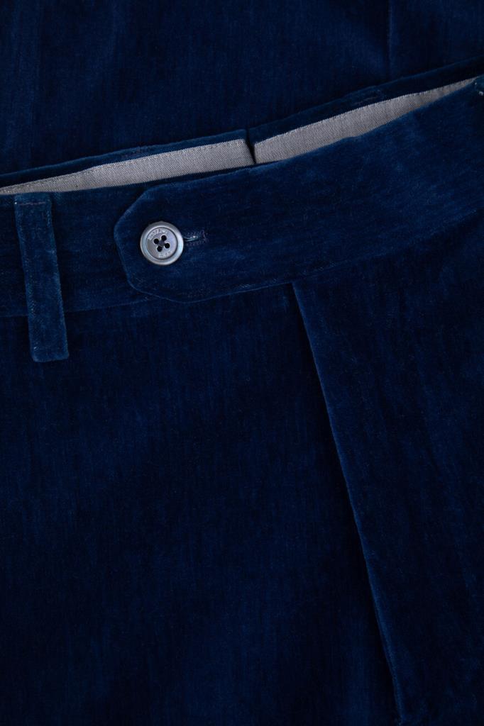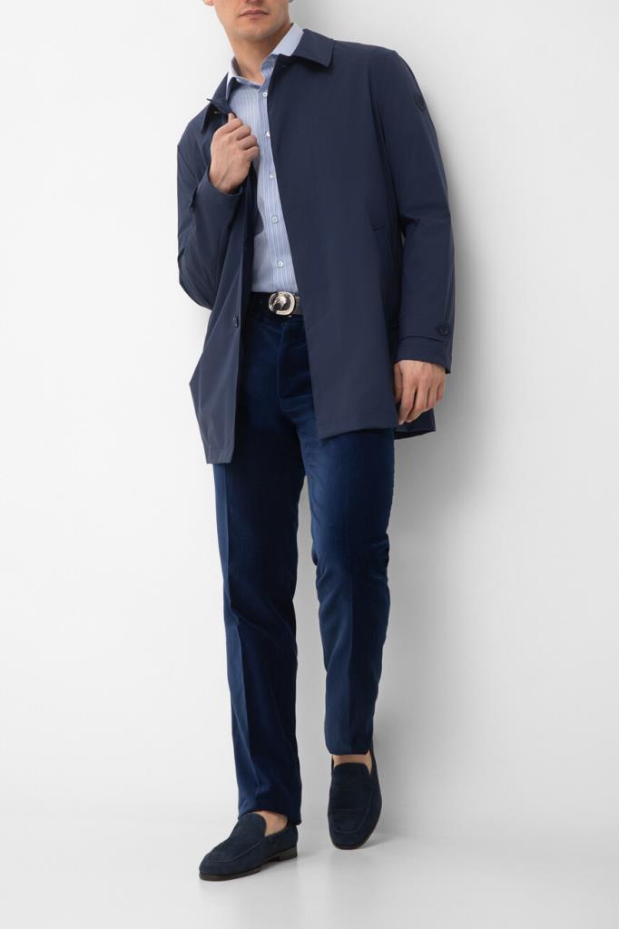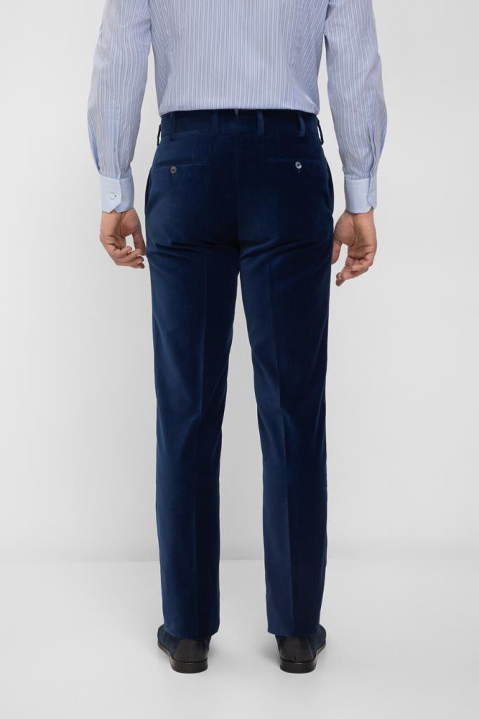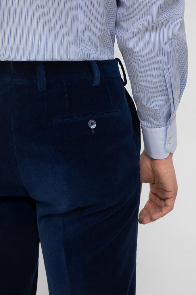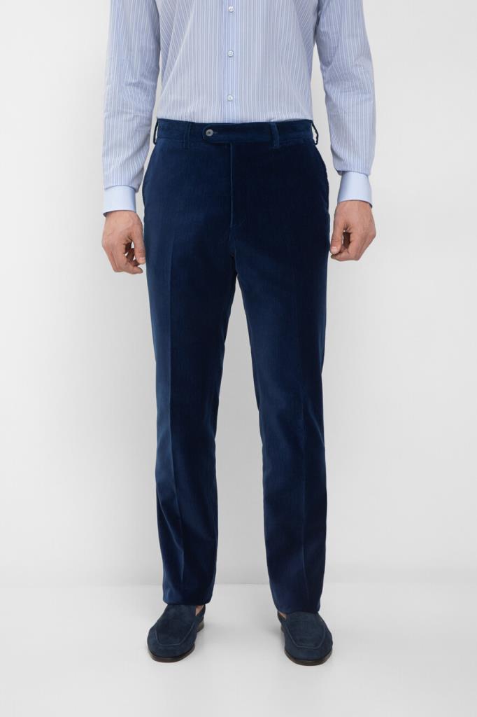 Хлопковые брюки Stefano Ricci с четырьмя прорезными карманами. Модель окрашена в насыщенный тёмно-синий оттенок и дополнена классическими стрелками. Конструкция изделия характеризуется наличием плотного пояса со шлевками под ремень и застёжкой на потайную молнию, покрытую планкой, и роговую пуговицу. Брюки прямого силуэта станут удачной основой образа с полосатой рубашкой и тренчем с центральной шлицей из той же коллекции.