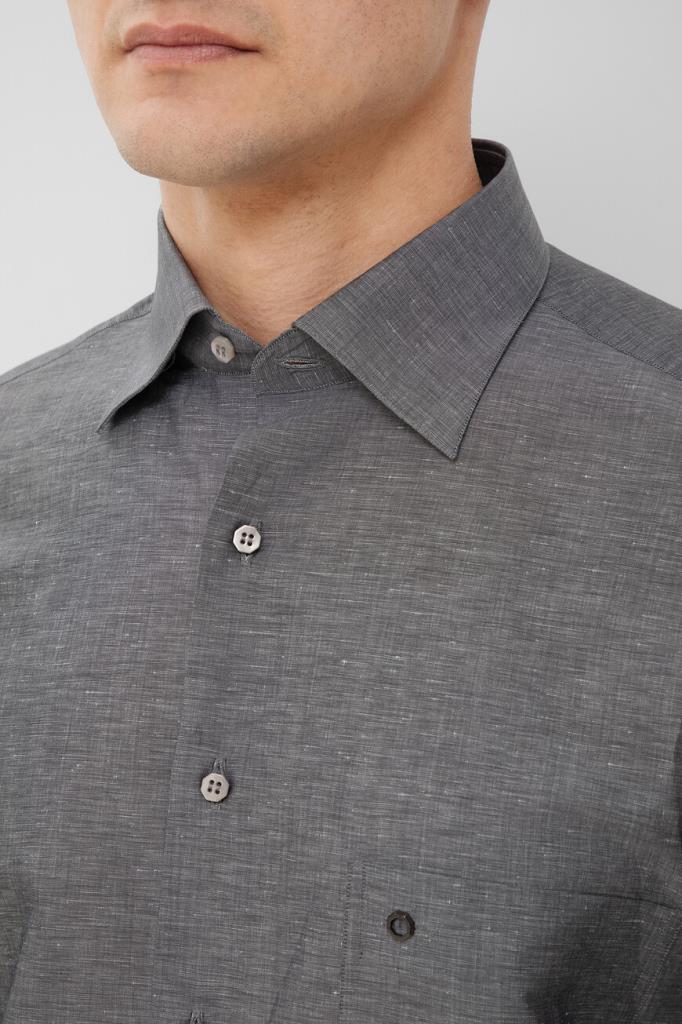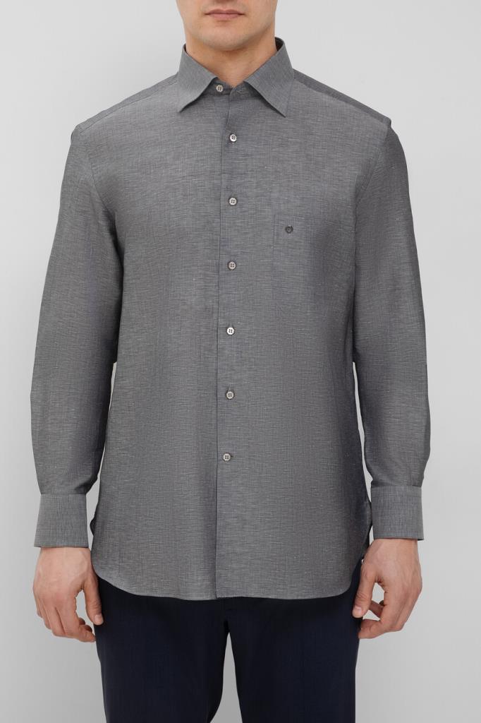 Серая рубашка Stefano Ricci на перламутровых пуговицах. Конструкция изделия прилегающего силуэта, выполненного из мягкого трикотажа на основе хлопка и льна, предполагает наличие длинных рукавов и нагрудного накладного кармана слева. Атрибутом Дома выступает минималистичная знаковая деталь - восьмигранник из металла серебристого оттенка на кармане.
