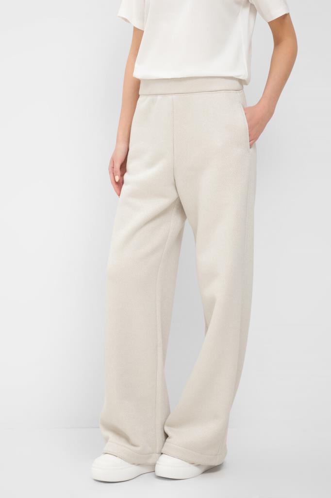 Брюки-палаццо Max Mara из смесового хлопка в нежном кремово-бежевом оттенке. Силуэт изделия предполагает плотный широкий пояс и прорезные боковые карманы. Наиболее выигрышно модель будет смотреться в комплекте с парным худи из той же коллекции бренда.
