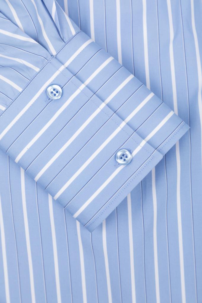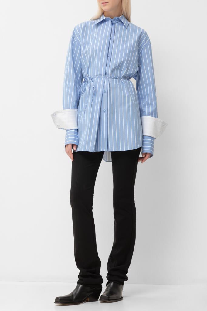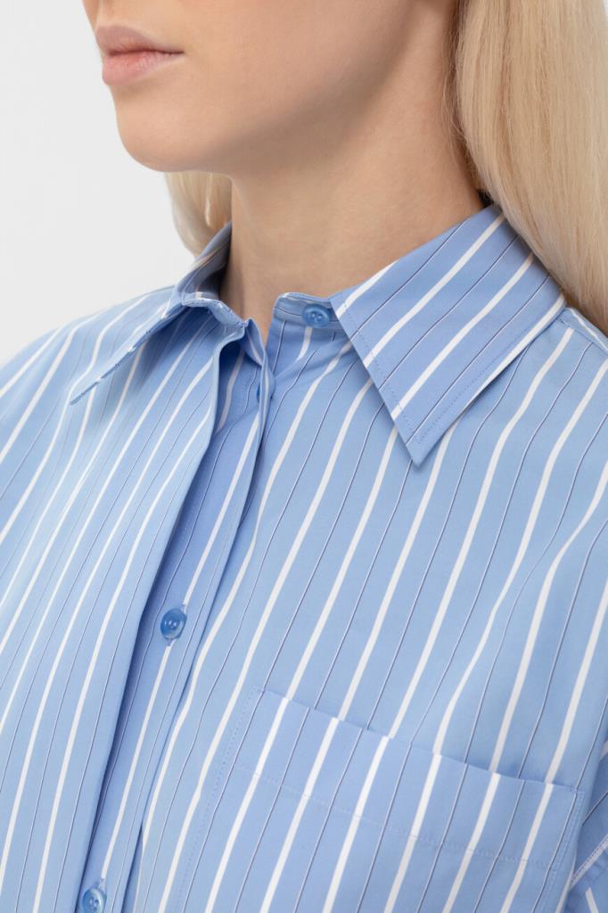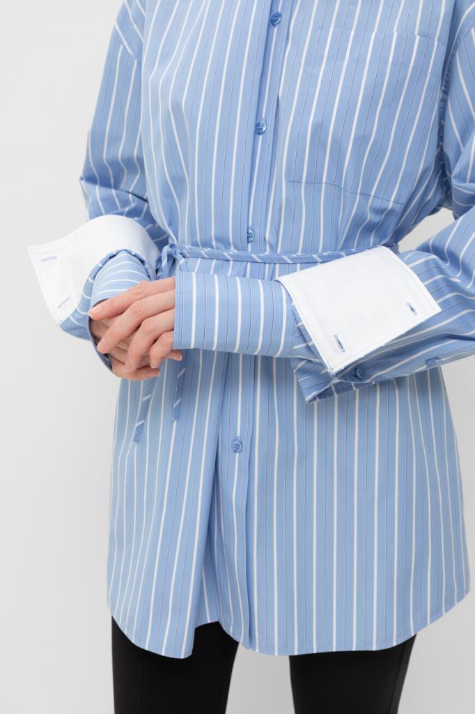 Удлиненная блузка Max Mara свободного кроя – идеальный выбор для тех, кто ценит комфорт. Изготовленная из полосатого хлопкового поплина, она обеспечивает свободу движений и легкость. Свободный крой и спущенная линия плеча создают расслабленный силуэт, а детали, такие как строчка на локте с белой внутренней манжетой и кокетка с обратной складкой, добавляют изысканности. При желании можно подчеркнуть талию с помощью текстильного пояса, входящего в комплект.