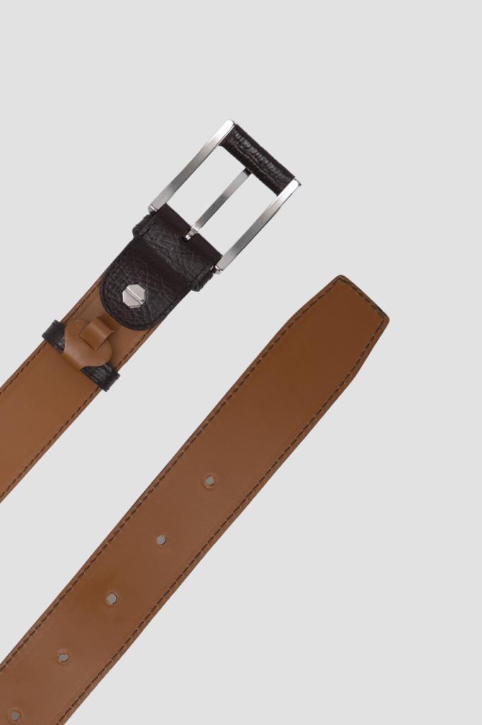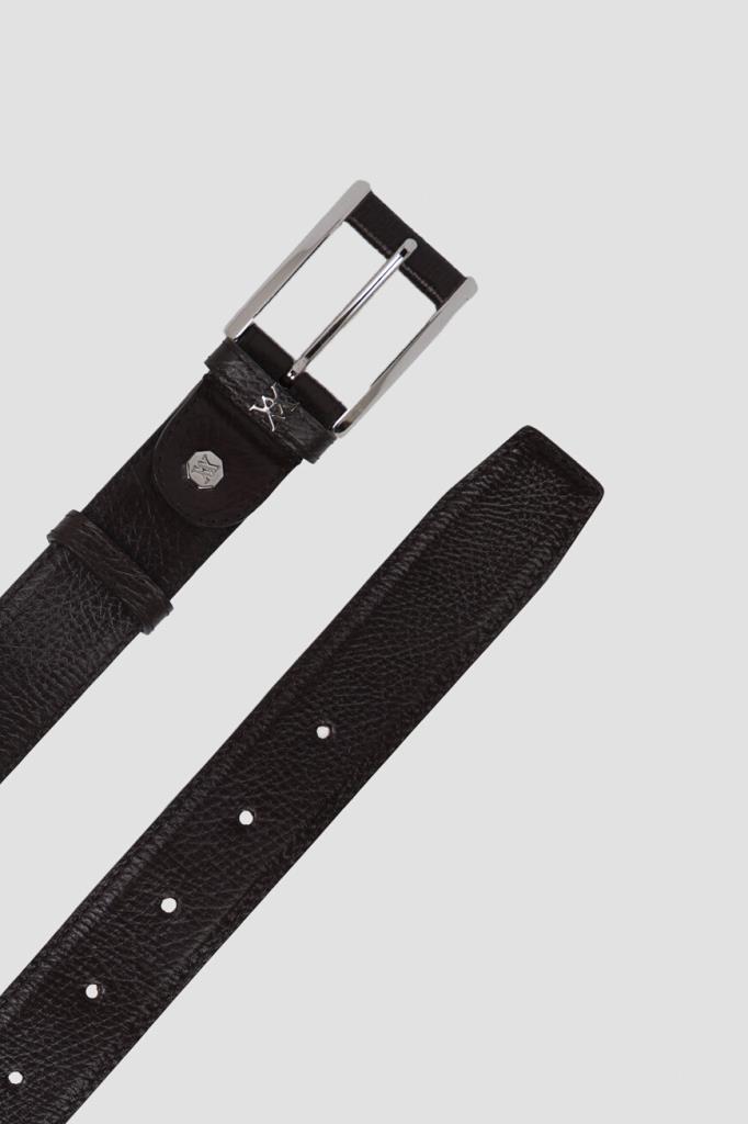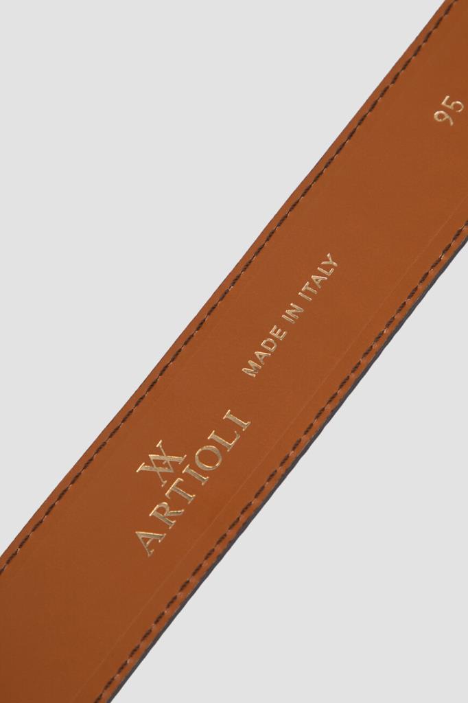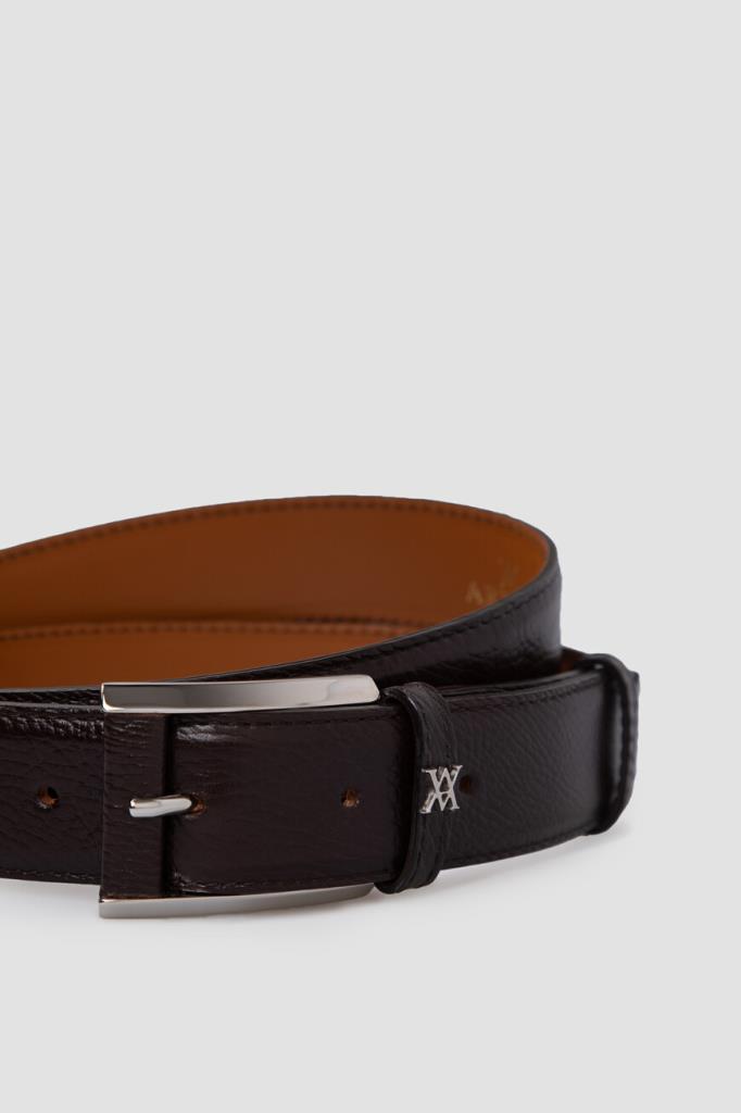 Тёмно-коричневый ремень Artioli с зернистой текстурой. Аксессуар выполнен из мягкой кожи ламы и декорирован культовыми лого-монограммами Дома на месте крепления пряжки и тренчике. Изделие фиксируется классической прямоугольной пряжкой с палладиевым покрытием, язычком и кожаной вставкой в тон.