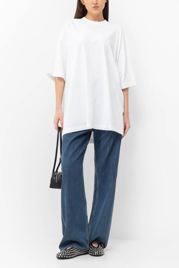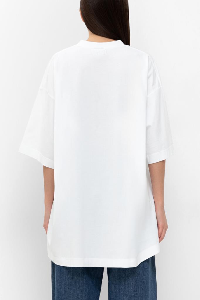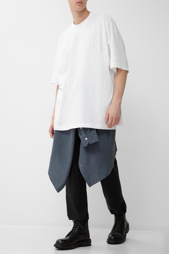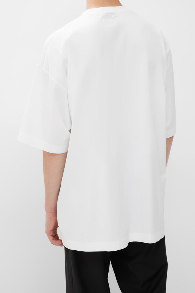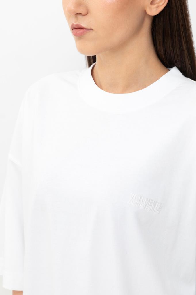 Футболка белого цвета от VETEMENTS получилась максимально лаконичной. Модель декорирована вышитыми неброскими надписями «VETEMENTS Limited Edition» в тон слева на груди и на спинке под воротником. Изделие с короткими рукавами с чуть спущенной линией плеч сшито из мягкого хлопкового джерси. Благодаря такому дышащему материалу и расслабленному силуэту в футболке будет комфортно в течение всего дня.