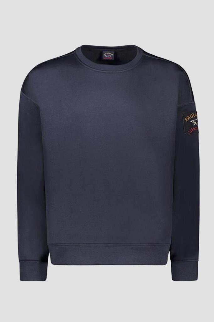 Свитшот с крупным разноцветным логотипом Paul&Shark. Модель изготовлена из мягкого тёмно-синего трикотажа на основе хлопка и полиэстера. Изделие станет отличным дополнением к образу с джоггерами из той же коллекции.