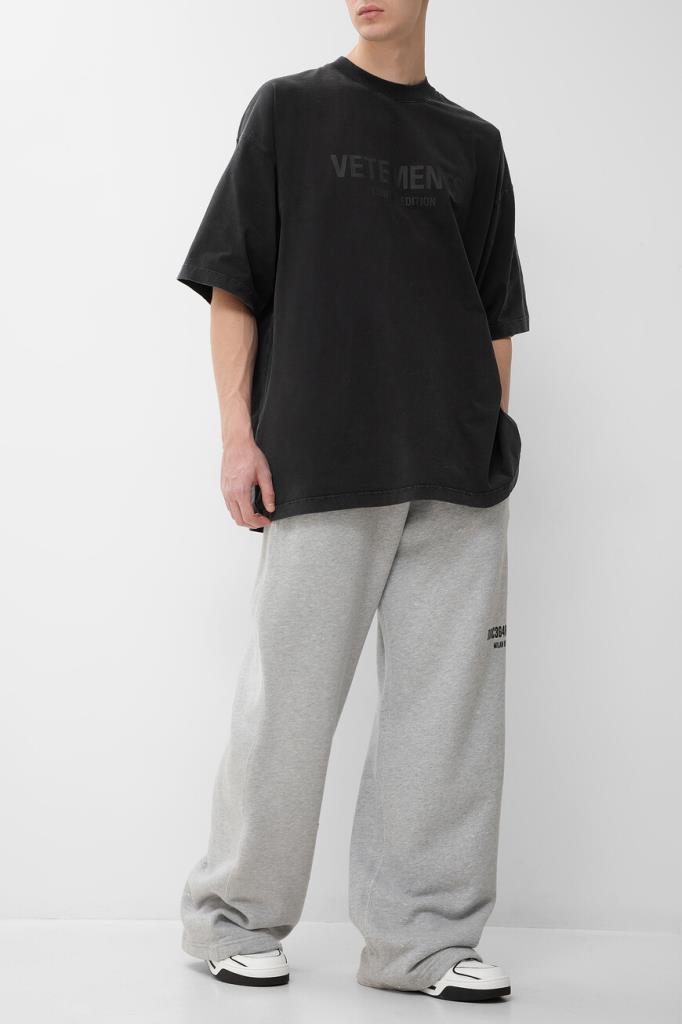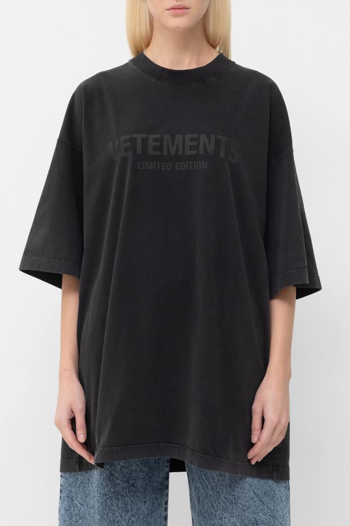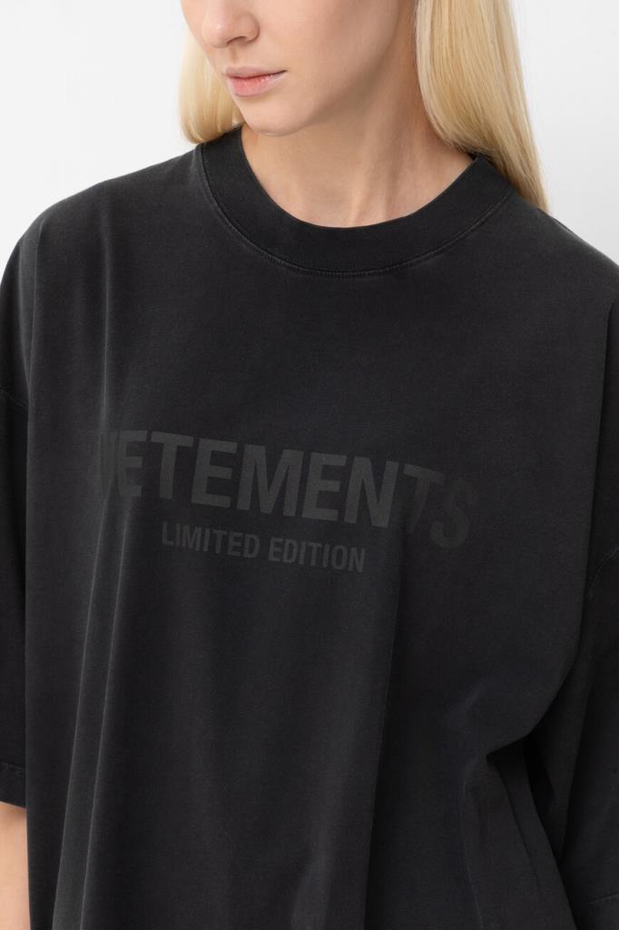 Футболка с крупной символикой бренда VETEMENTS. Для изготовления модели используется тонкое джерси из длинноволокнистого хлопка премиальных сортов, поэтому она не потеряет форму после стирки и надолго сохранит безупречный вид. Грудь украшает надпись «VETEMENTS Limited Edition», отсылающая к Дому. Силуэт оверсайз и продуманный крой с приспущенным плечом делают изделие универсальным — оно одинаково хорошо подходит и женщинам, и мужчинам.