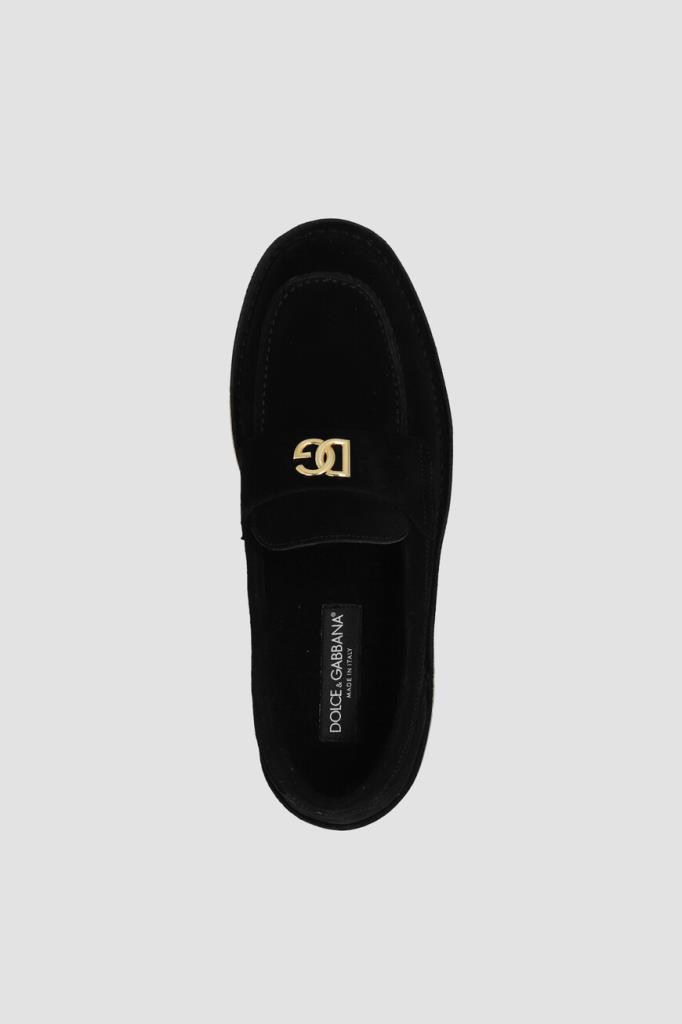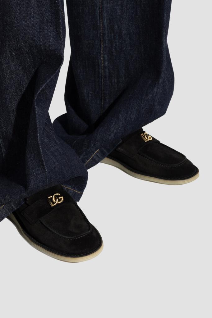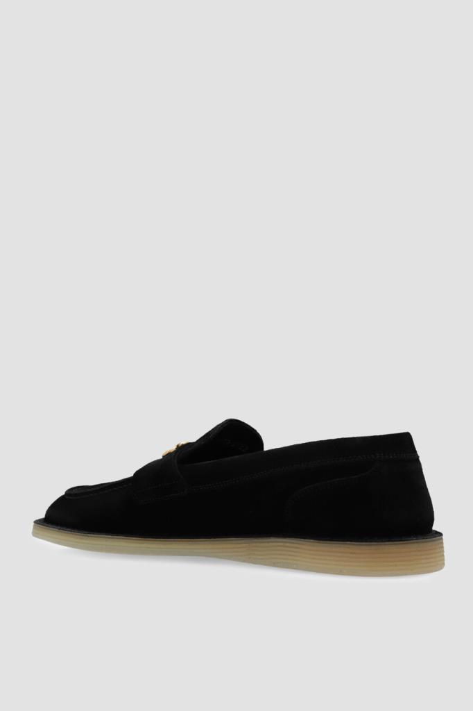 Чёрные лоферы из коллекции Mambo FW24/25 от Dolce&Gabbana. Коллекция переписывает правила итальянской элегантности, объединяя изысканный стиль 1940-х и 1950-х годов с иконографией американского пин-апа. Для изготовления удобной пары используется мягкая замша с бархатистой поверхностью. Благодаря ворсистой внутренней отделке модель идеально подходит для холодной погоды. Изделие, установленное на выступающую спереди многослойную подошву из натуральной резины станет неотъемлемой частью базового гардероба.