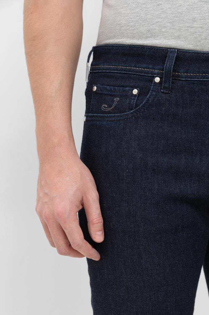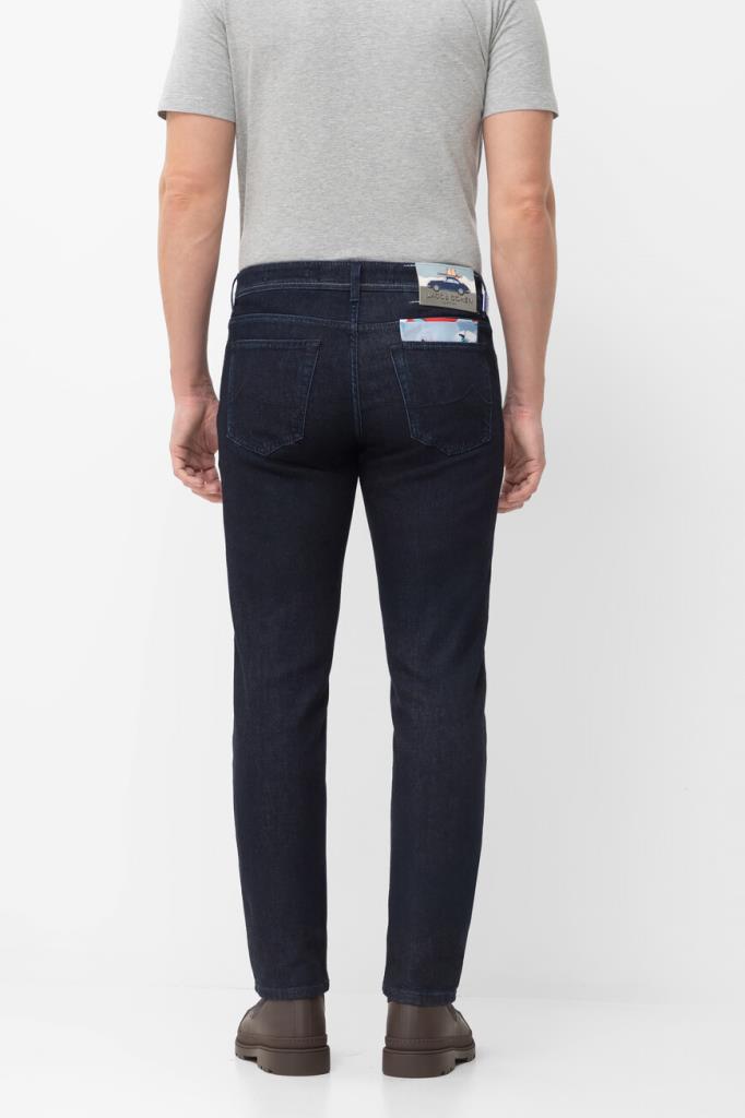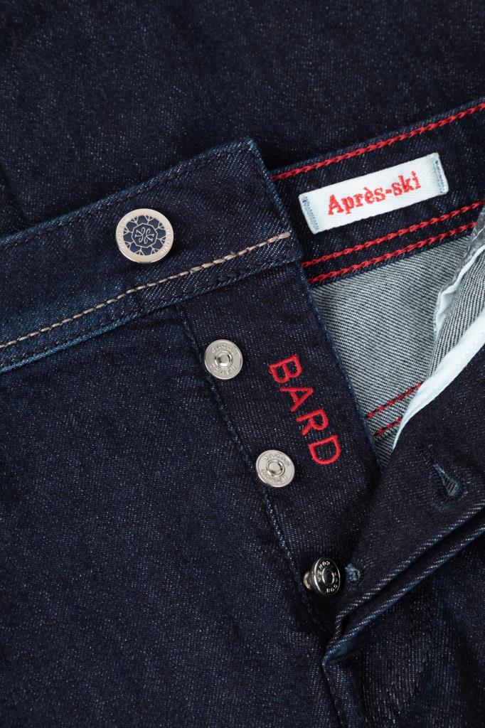 Тёмно-синие джинсы JACOB COHЁN из капсульной коллекции Après-Ski. Модель из мягкого эластичного денима на основе хлопка и кашемира идеально подходит для прогулок в холодную погоду. Ткань пропитана эксклюзивной парфюмерной композицией, аромат которой не теряет своих свойств в течение более чем 20 стирок. Изделие дополнено накладкой Porsche Après-Ski из шнуры пони и телячьей кожи на поясе сзади и декорировано ярко-красными строчкой на обратной стороне пояса и вышитыми надписью «BARD» и мотивирующим посланием на внутренней стороне застёжки.