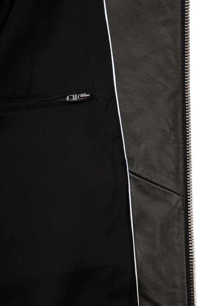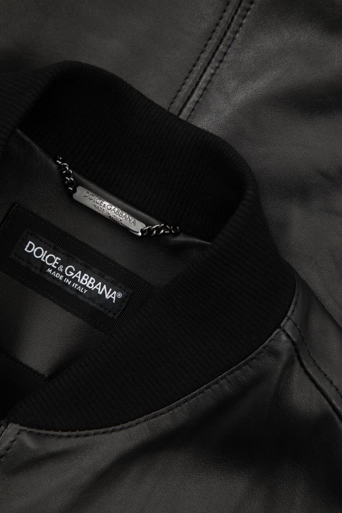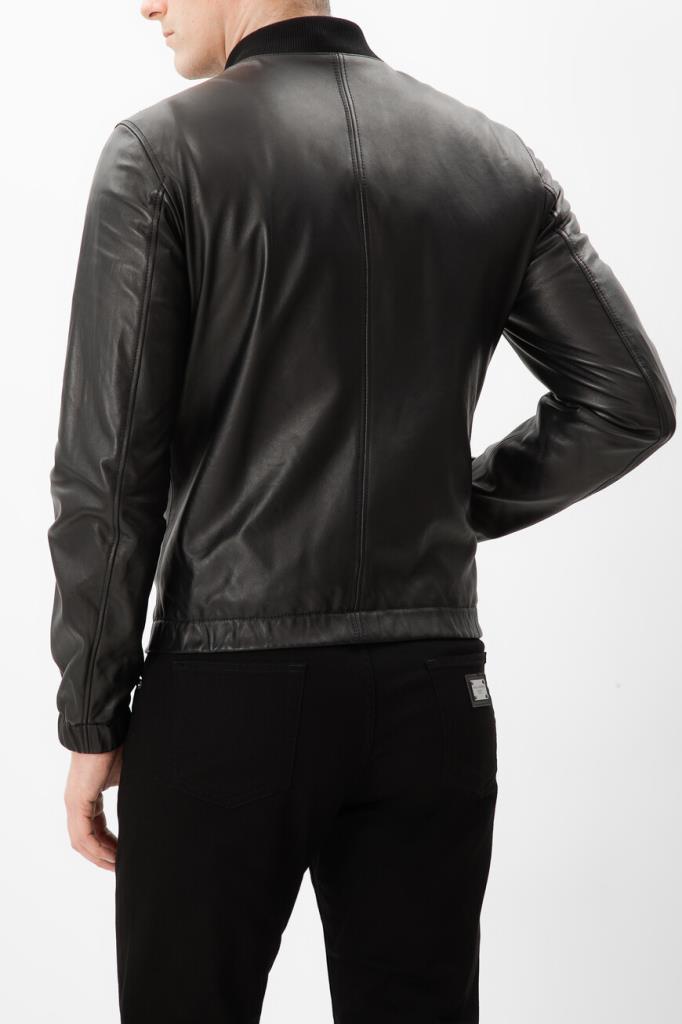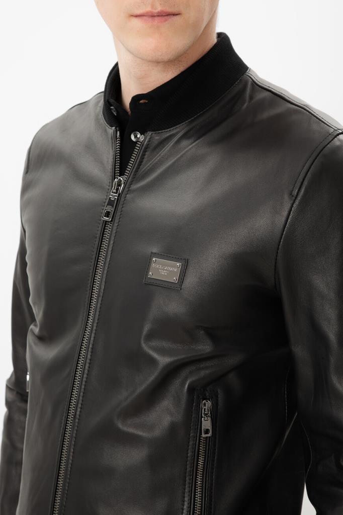 Чёрная куртка из коллекции «Essential» от Dolce & Gabbana. Коллекция «Essential» — это современный мужской гардероб, ряд вневременных, культовых изделий, разработанный брендом. Для создания изделия прямого силуэта используется мягкая кожа ягнёнка. Модель застёгивается на встречную молнию с двумя брендированными пуллерами и отличается наличием прямоугольной накладки с выгравированным логотипом Дома слева на груди. Эластичный пояс на резинке обеспечивает оптимальную посадку куртки по фигуре.